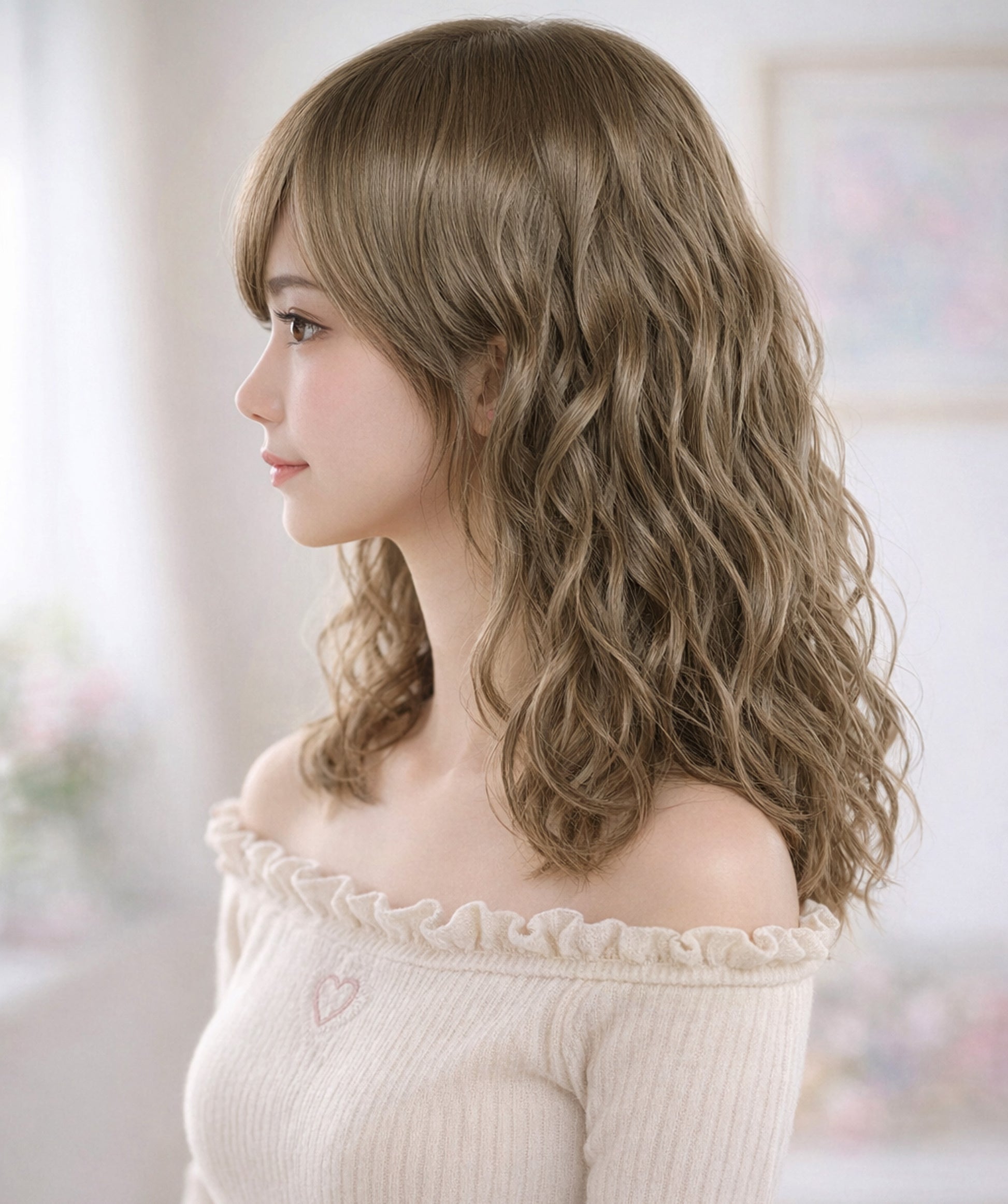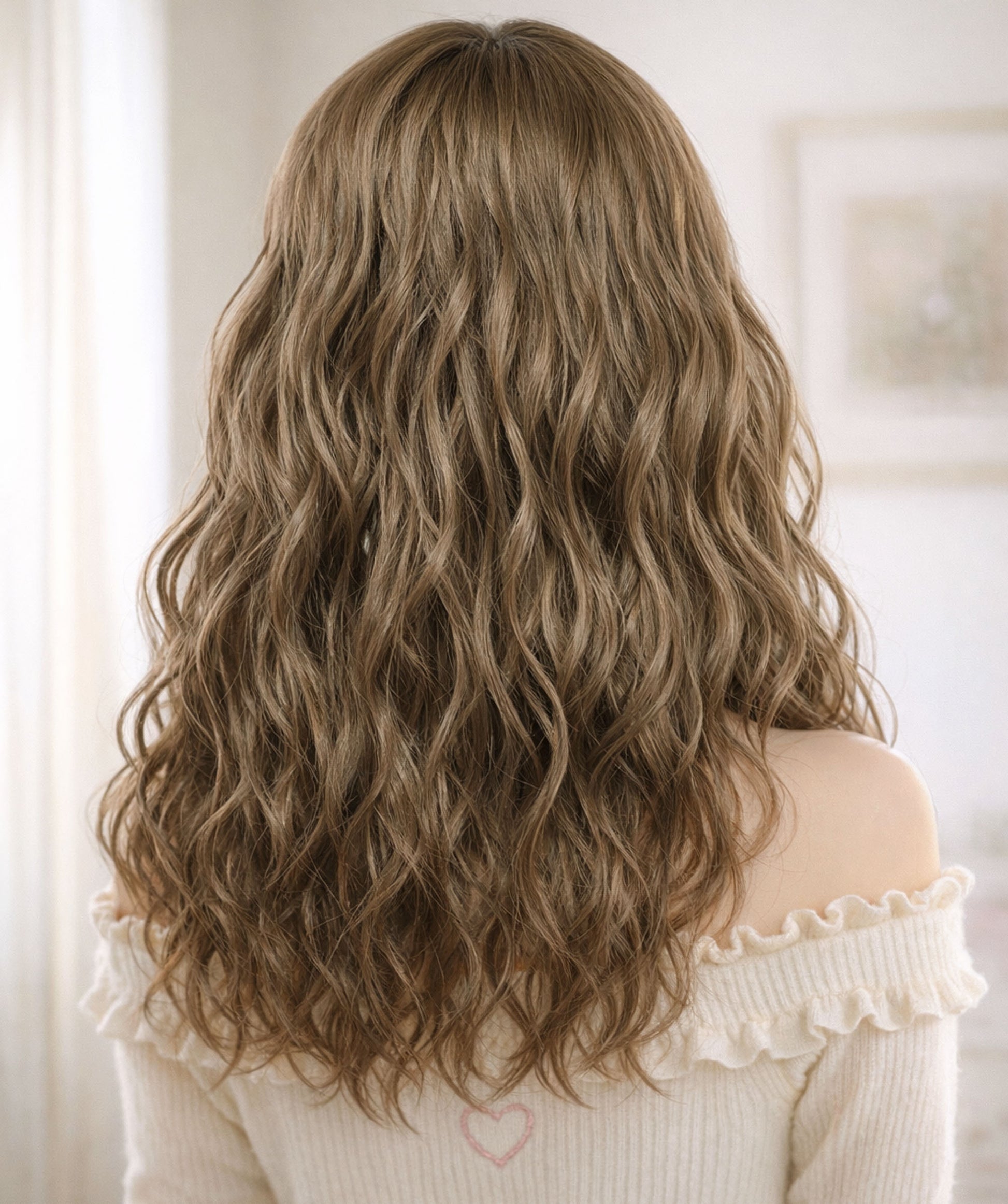 耐熱仕様のフルウィッグ。柔らかいカールをまとったミディアムスタイルで、自然に馴染む前髪付き。落ち着いたダークブラウンで明るすぎず上品な印象に仕上がります。軽量で着けやすく、普段使いにもイベントにも向いています。日本製高級ファイバー使用で扱いやすく、快適な着用感です。W-1023