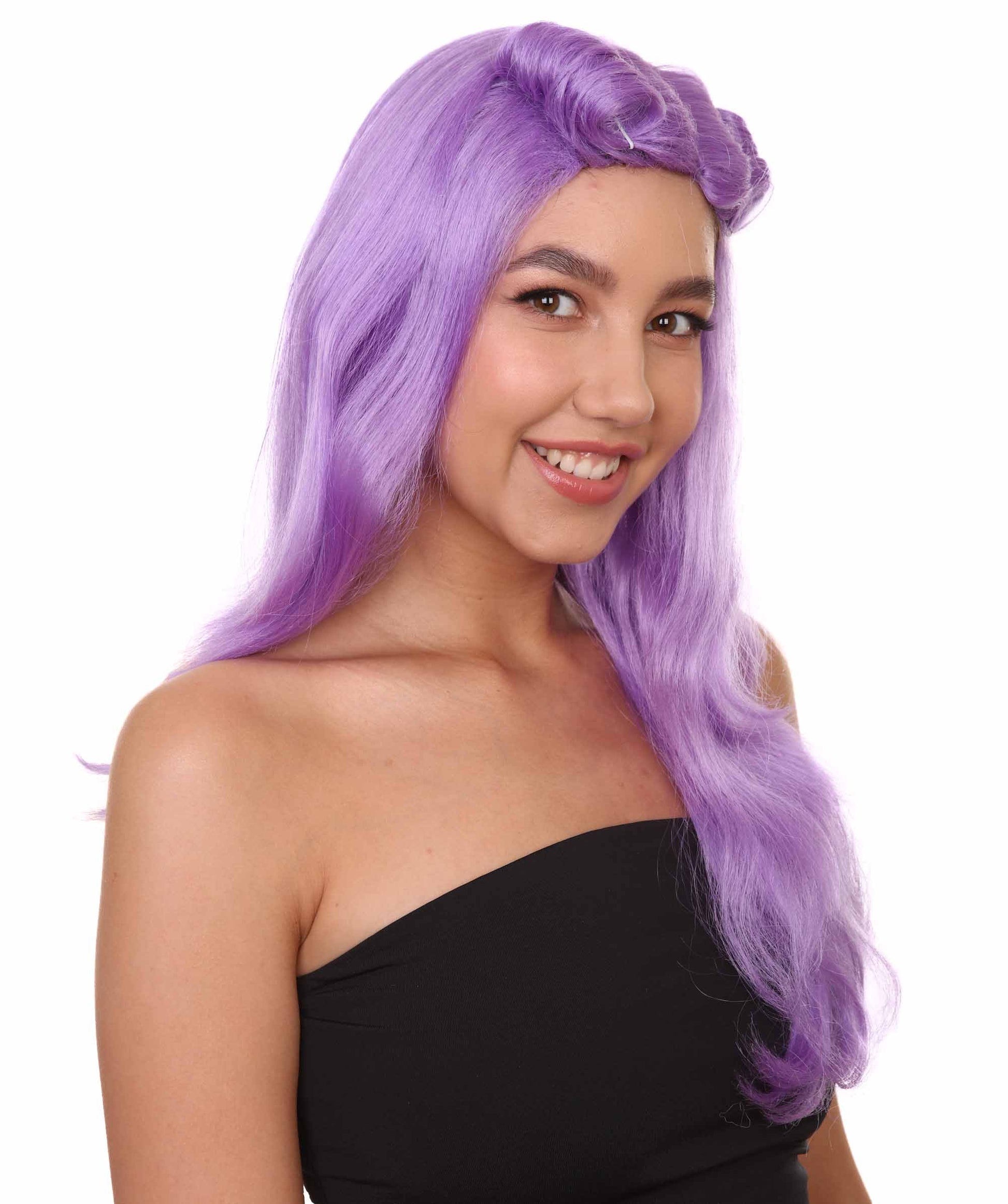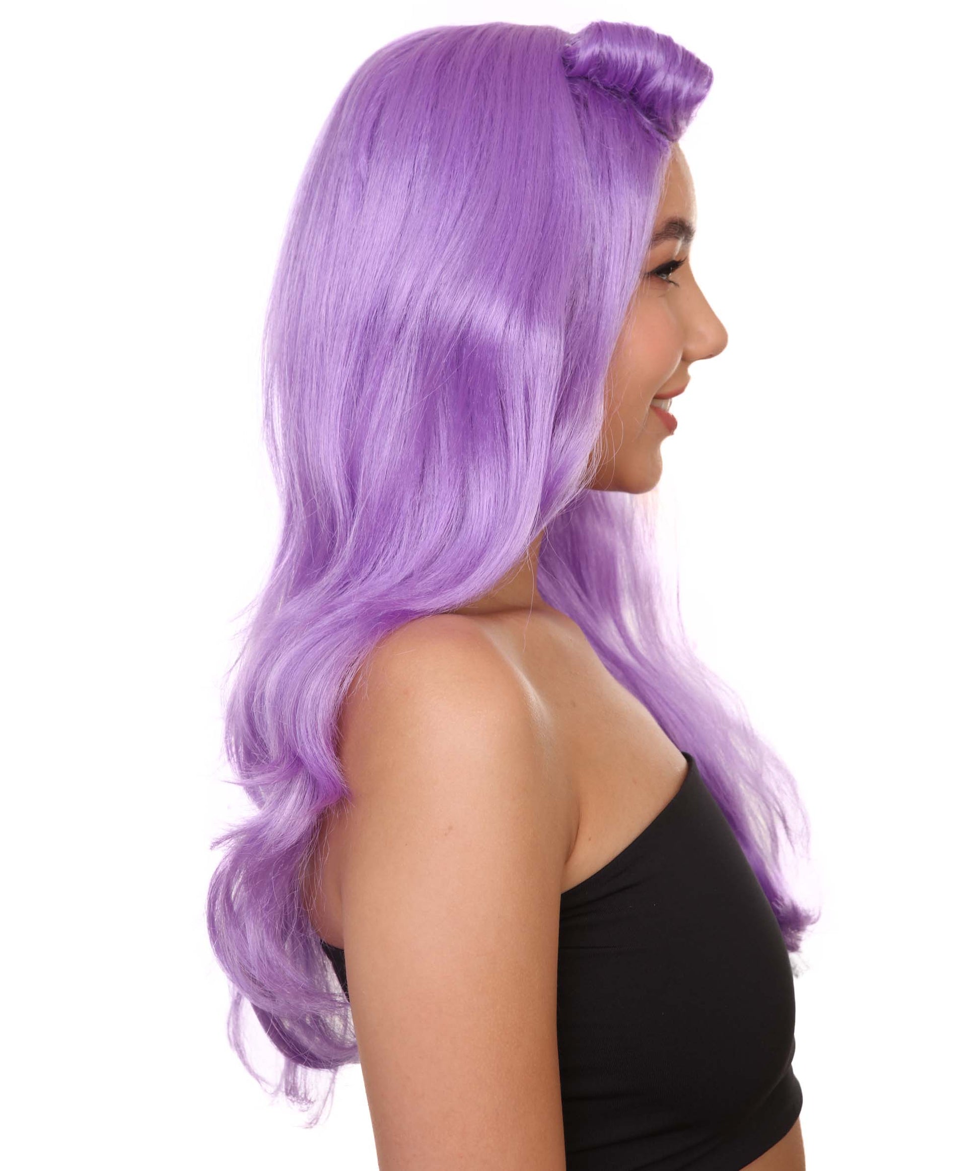 大人の女性用 H-1718 80年代ビューティーガール ライラックカールウィッグ プレミアム通気性キャップレスキャップ