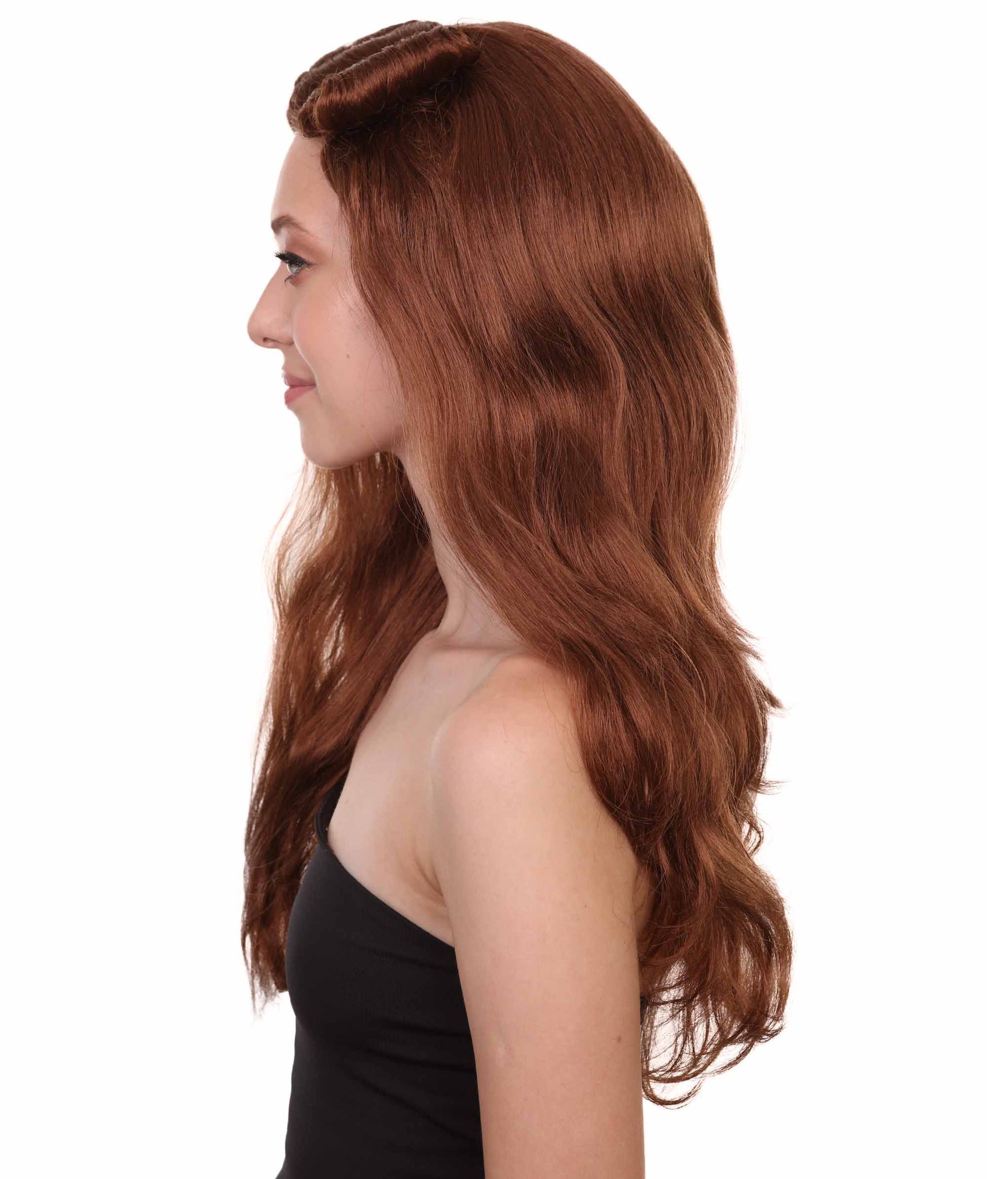 大人の女性用 H-1725 80年代ビューティーガール ブラウンカールウィッグ プレミアム通気性キャップレスキャップ