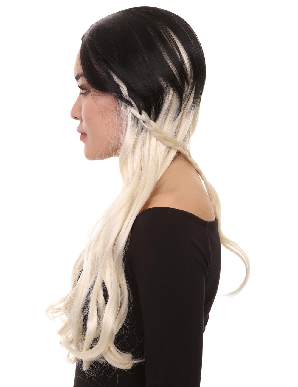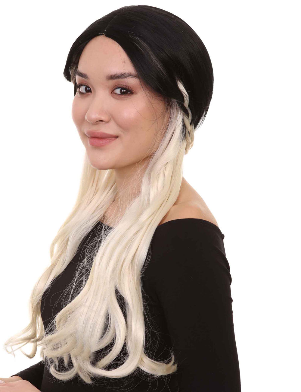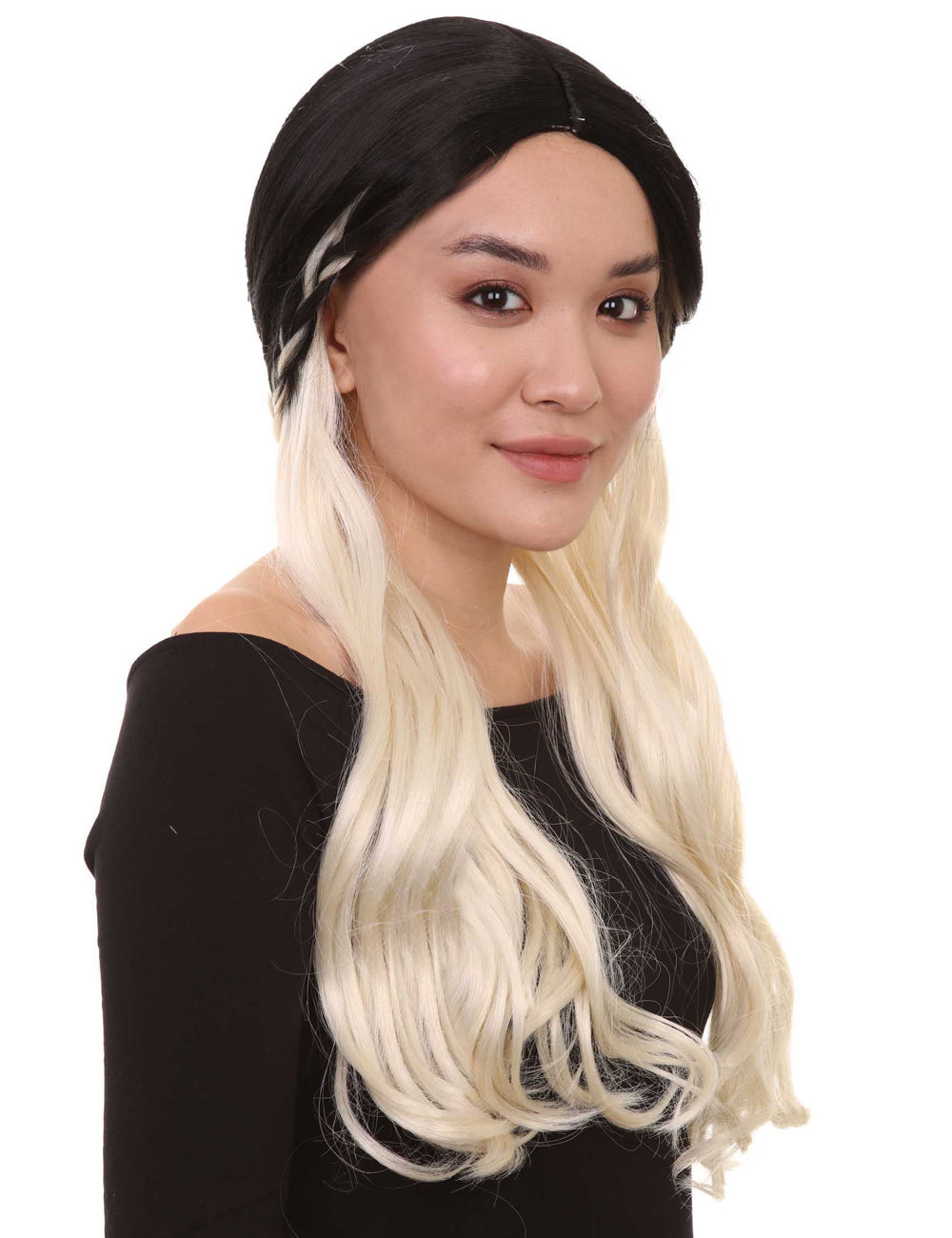 ブロンドの女子高生レディースウィッグ | ロングツートンカラーのコスプレハロウィンウィッグ | プレミアム通気性キャップレスキャップ H-411