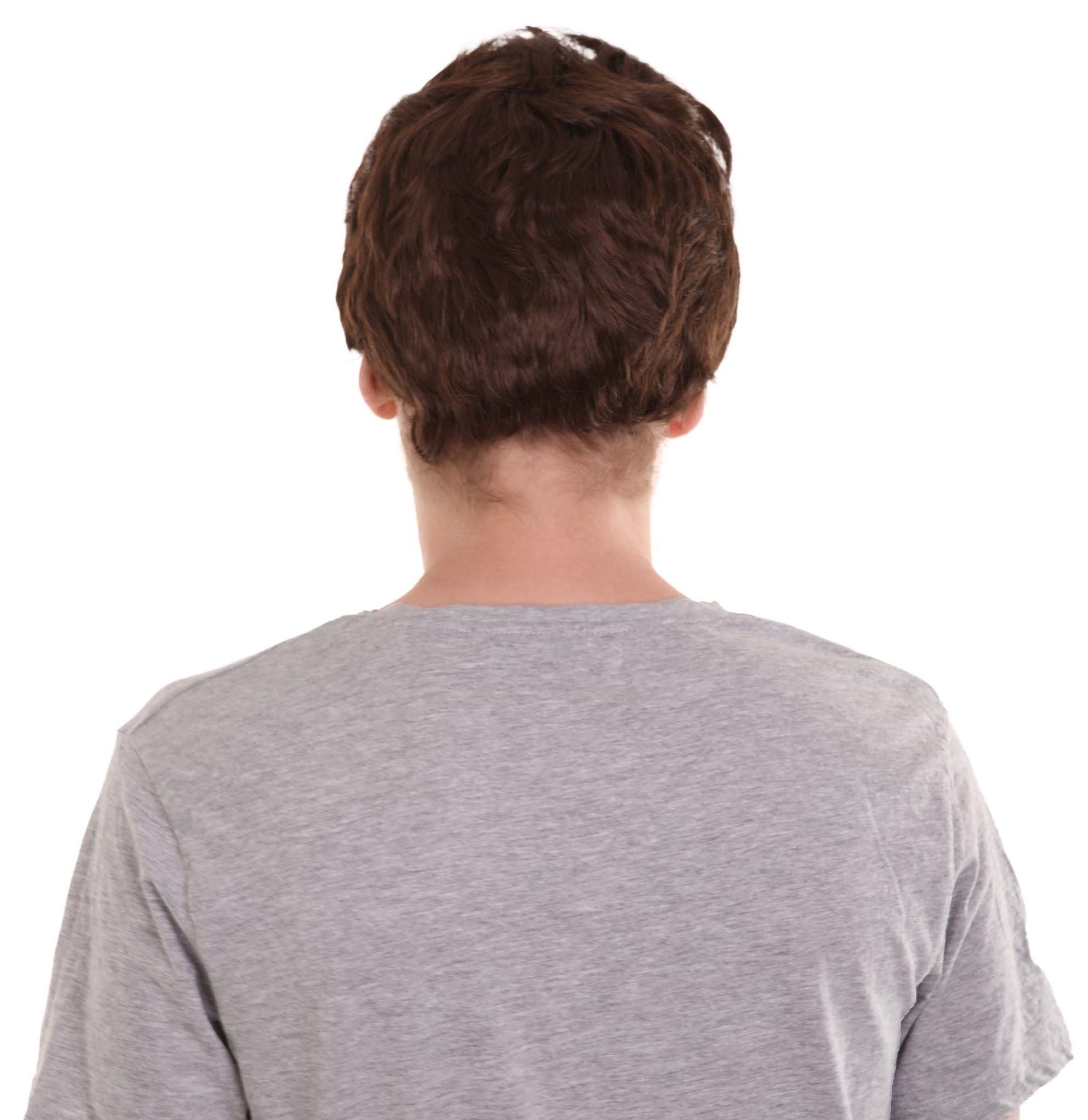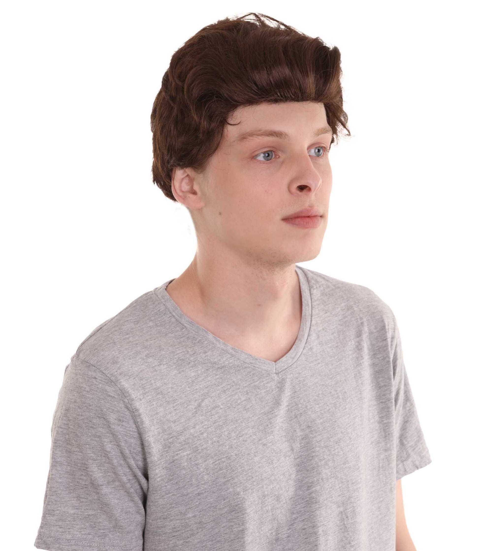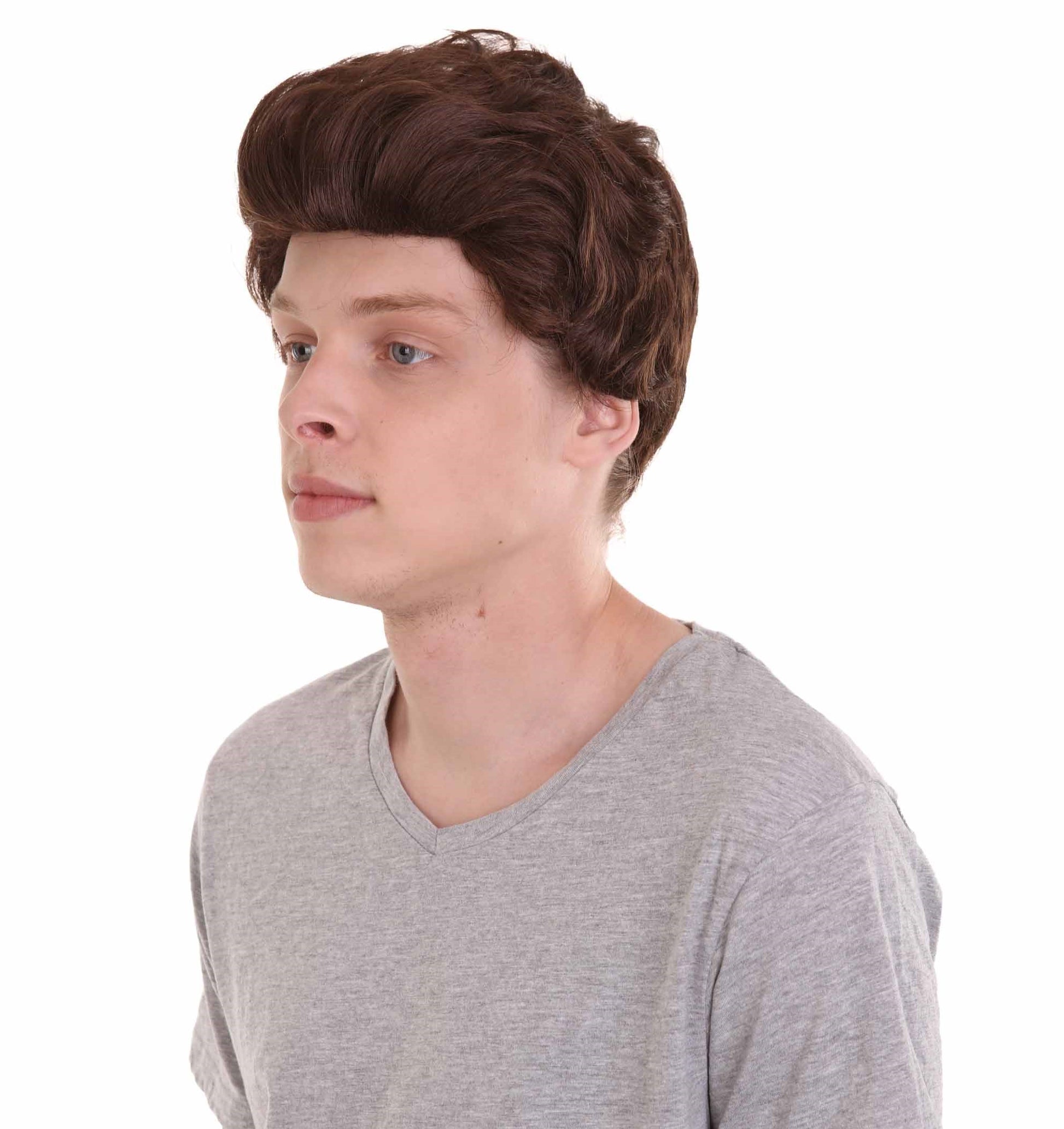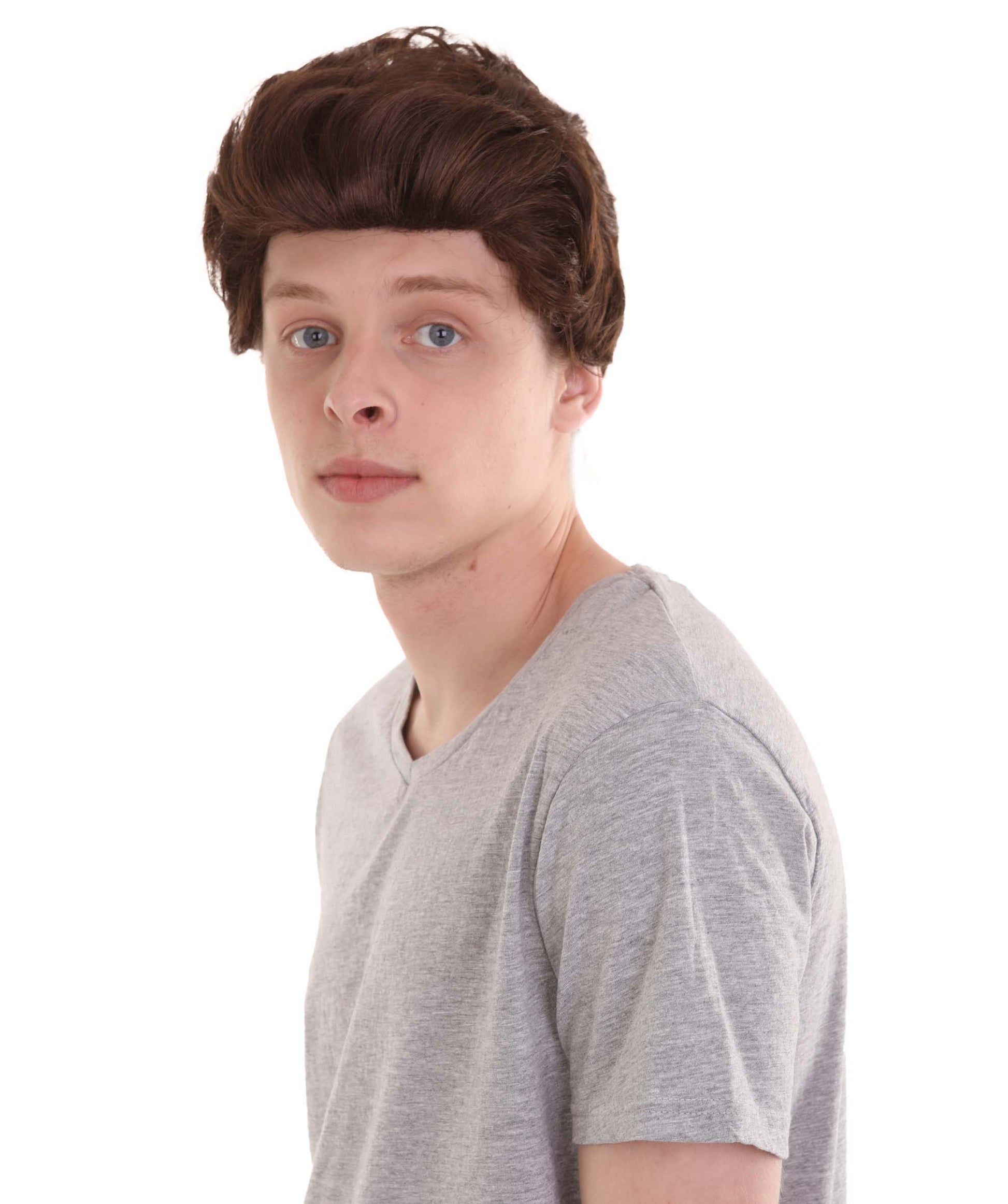 難燃性の合成繊維で作られたこのダークブラウンの吸血鬼ウィッグには、どんな頭のサイズにも合うように調節可能なストラップも付いています。