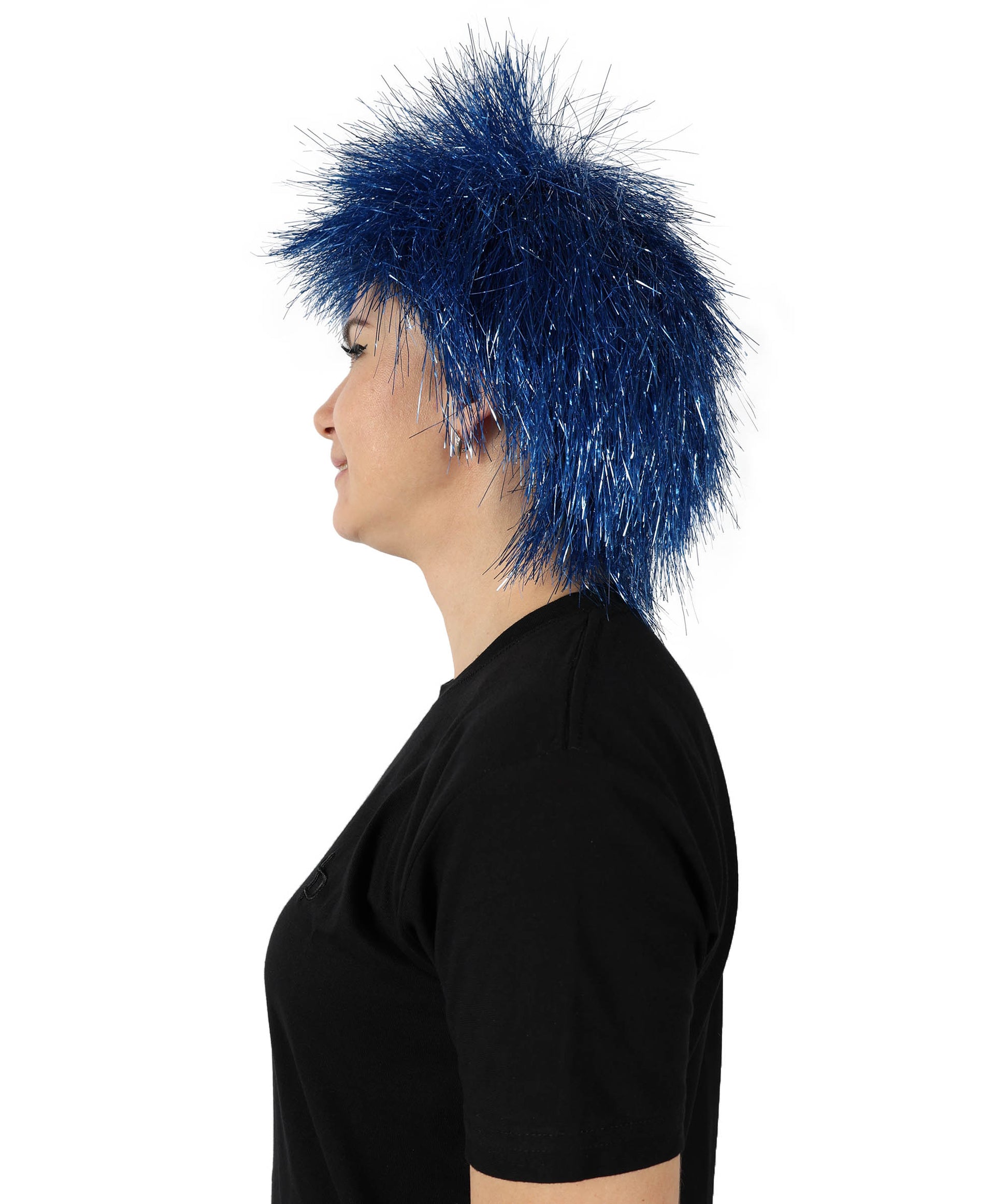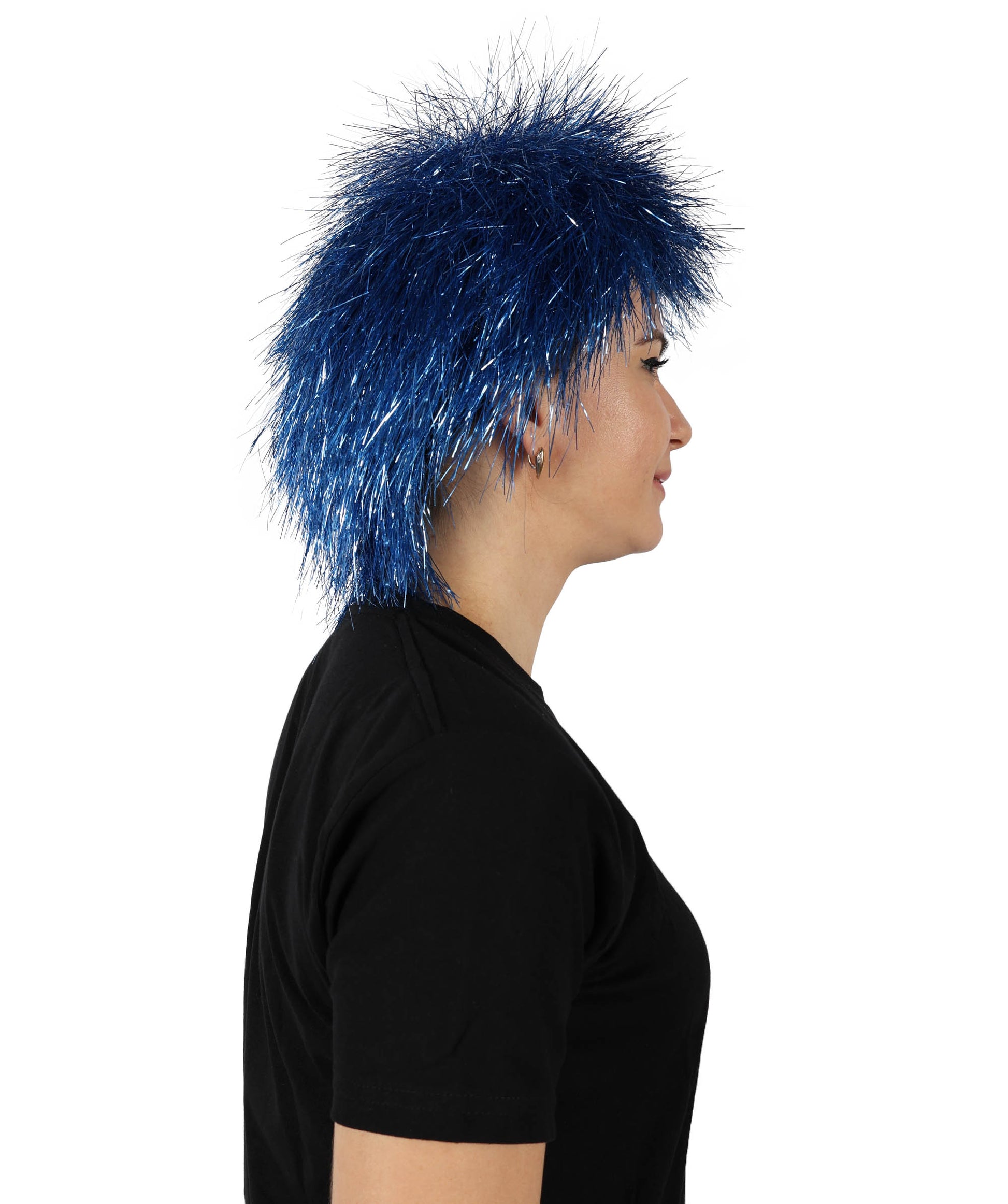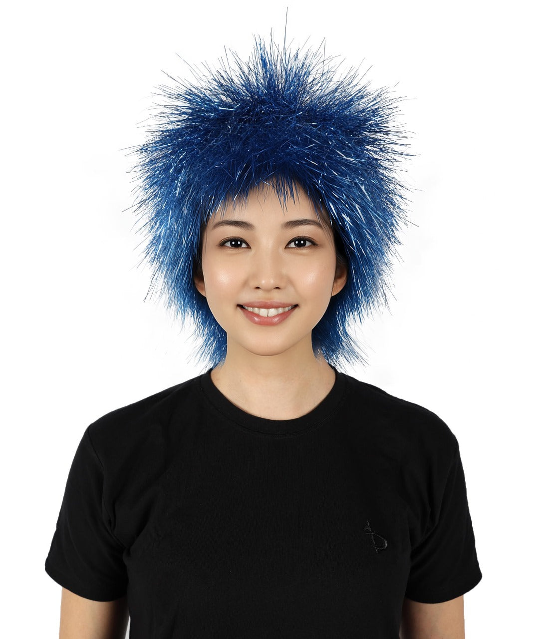 H-6864-TTN-BL 大人用ミディアムティンセルストレートブルーウィッグ(女性用)、華やかなコスチュームウィッグ、コスプレパーティーやイベントに最適