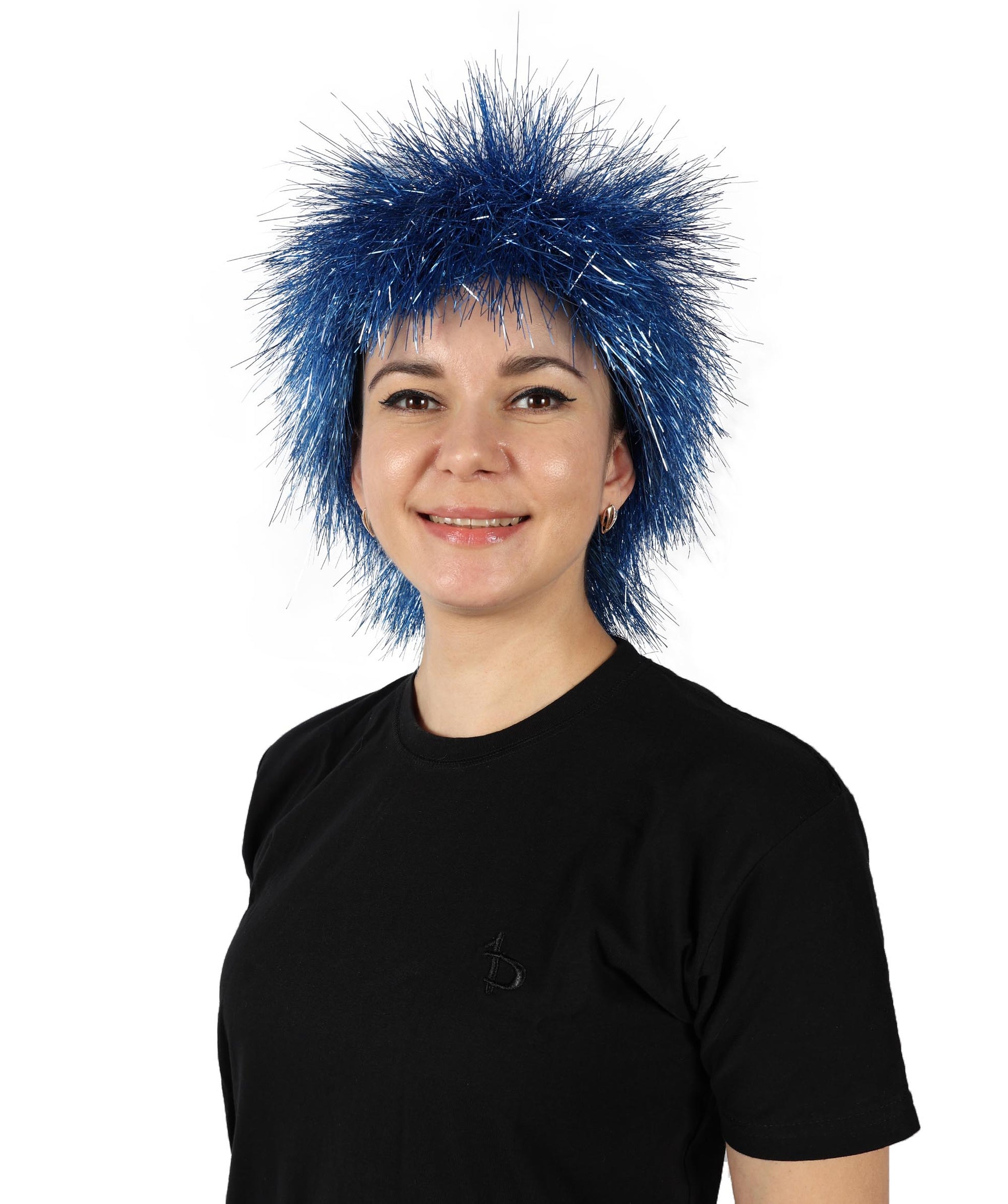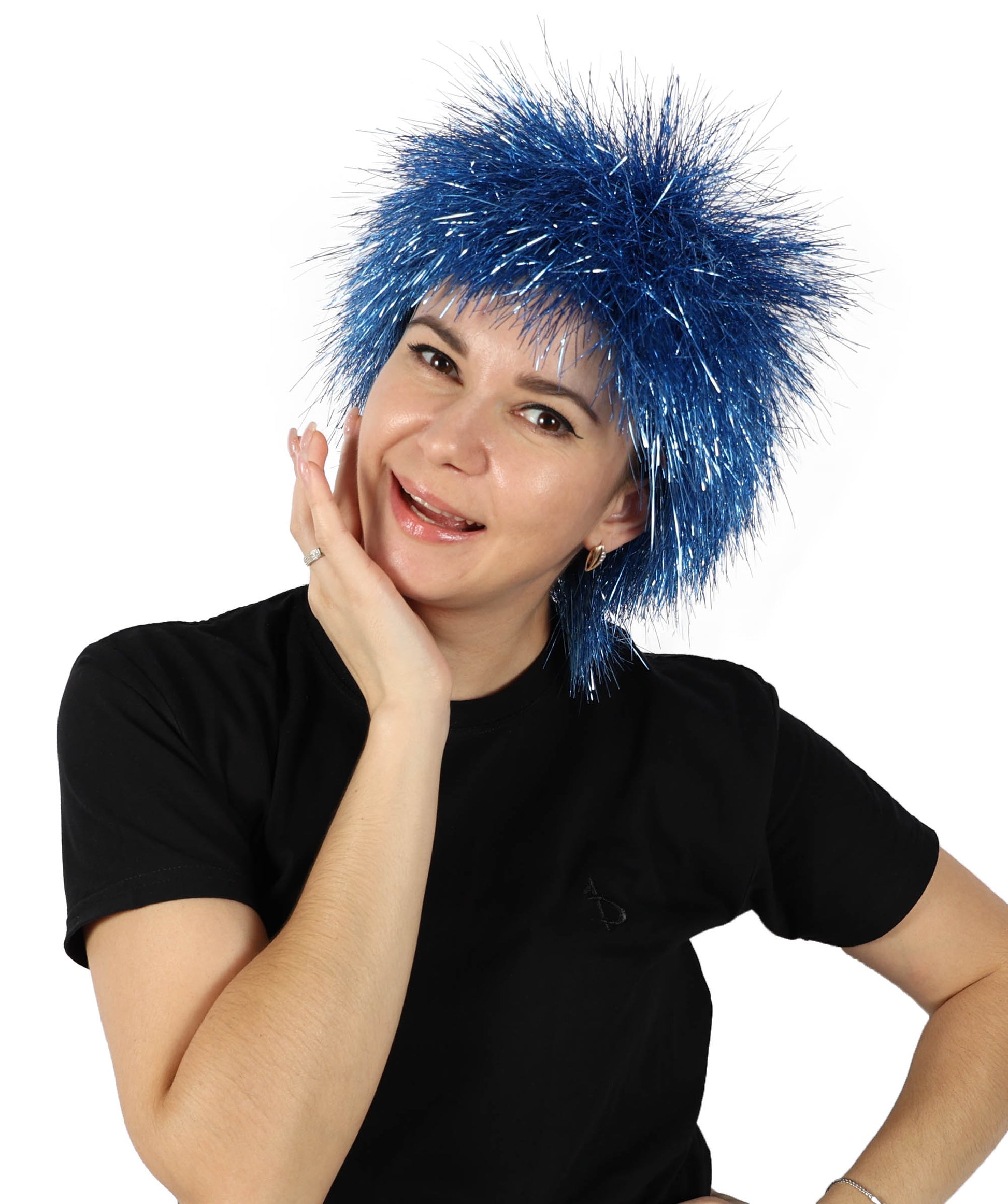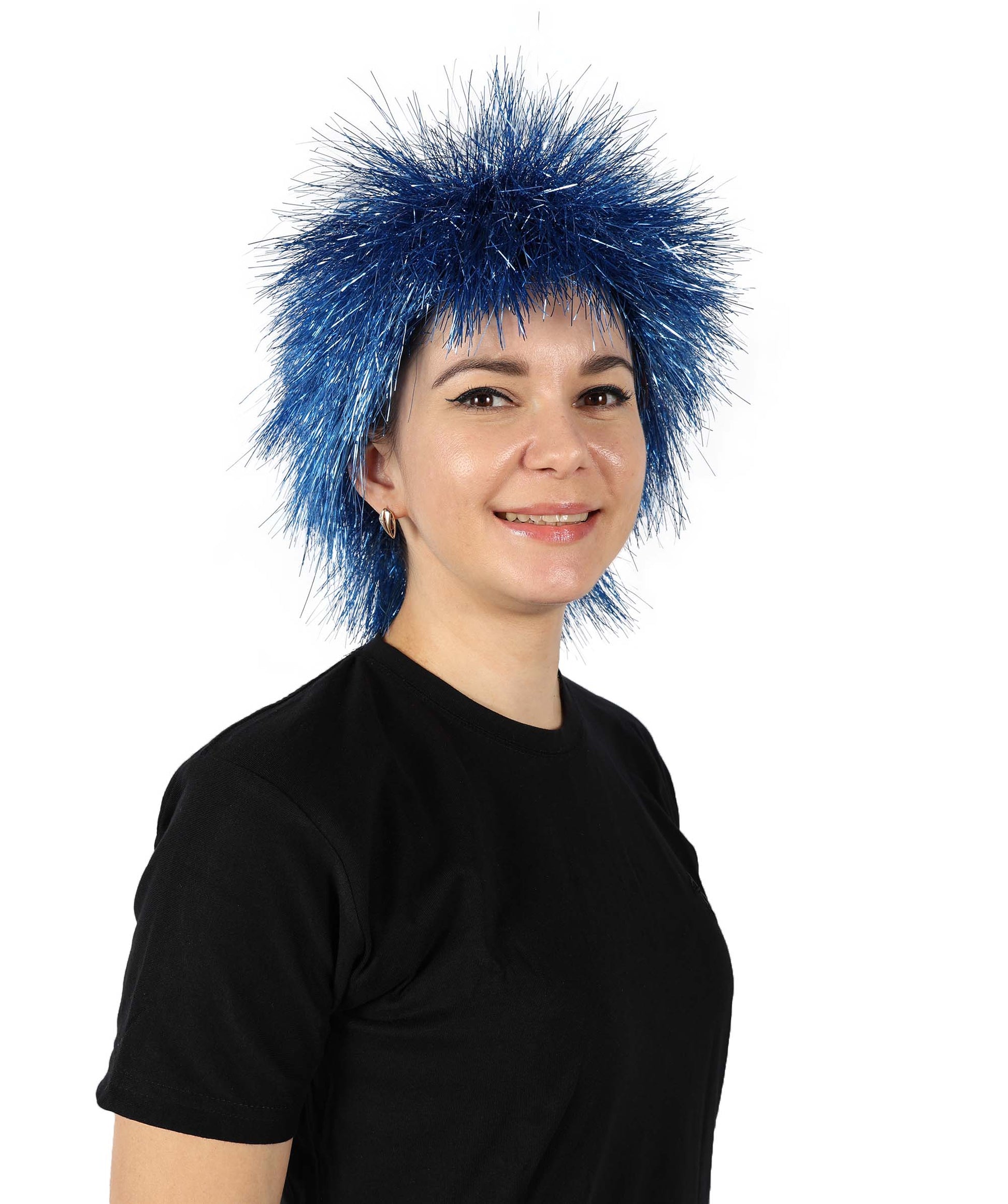 H-6864-TTN-BL 大人用ミディアムティンセルストレートブルーウィッグ(女性用)、華やかなコスチュームウィッグ、コスプレパーティーやイベントに最適