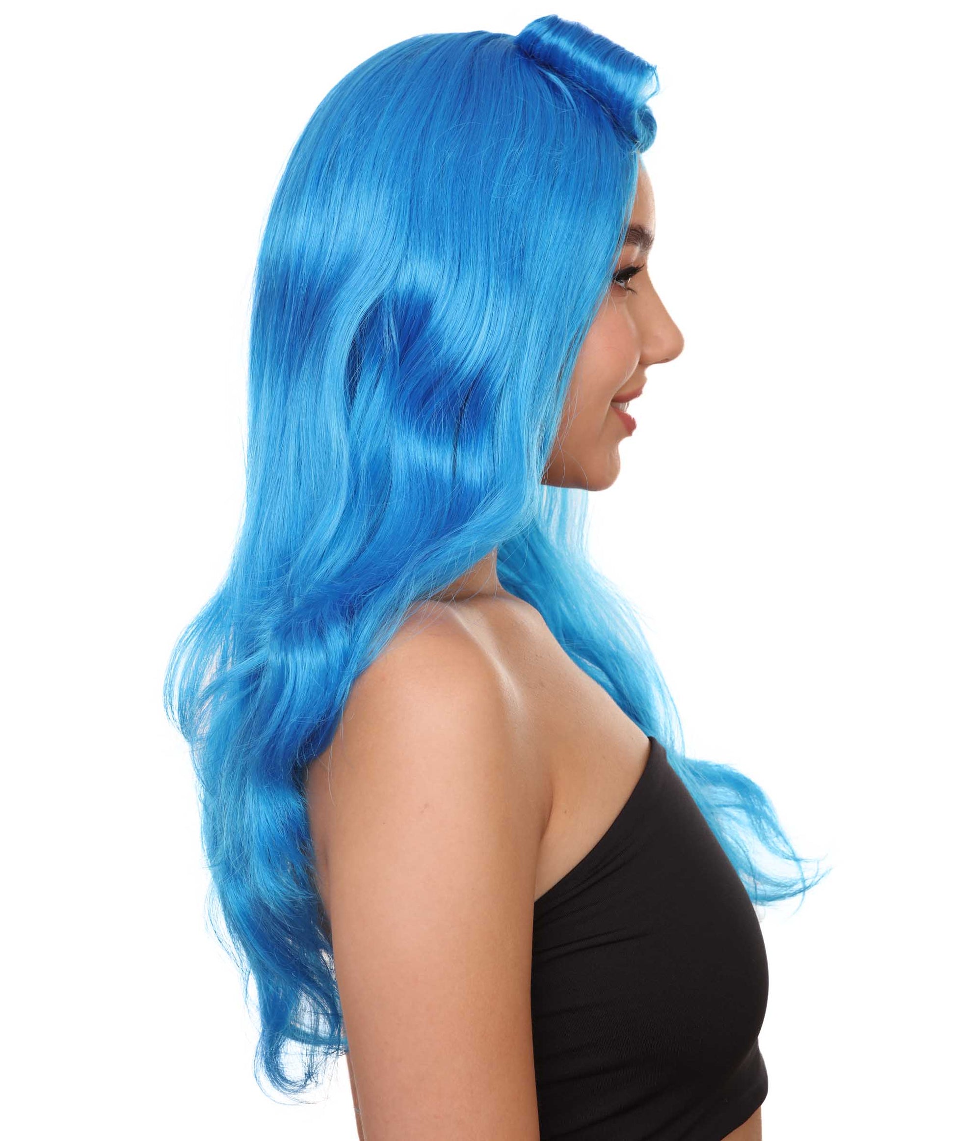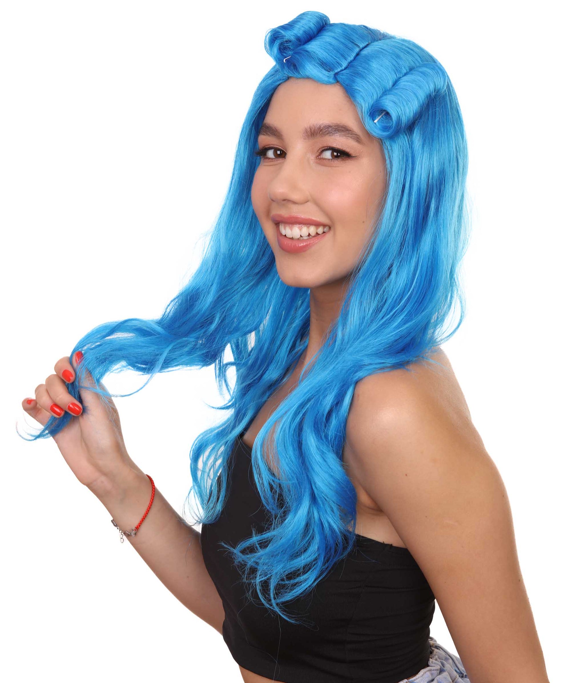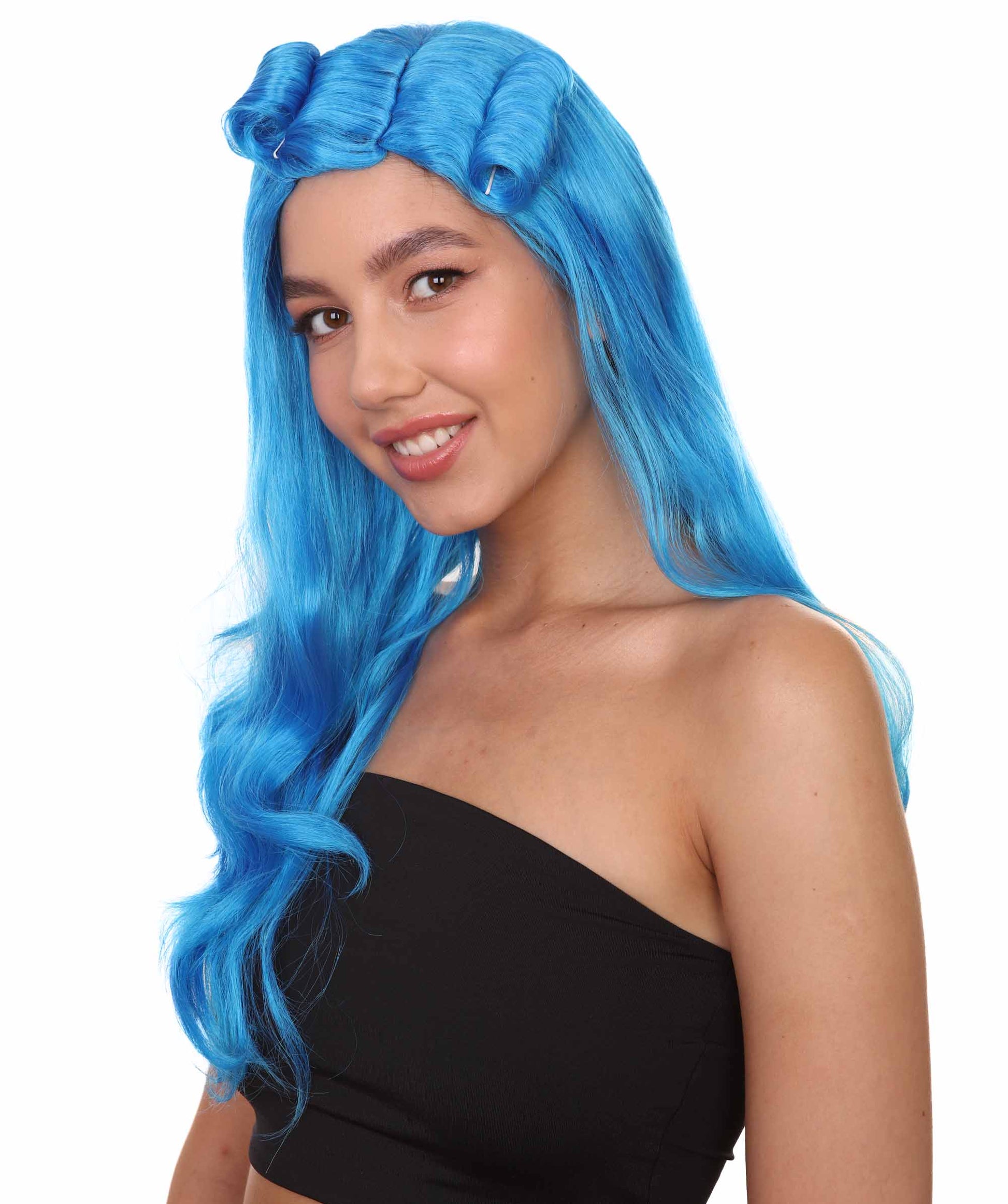 ハロウィンパーティープレミアムレディース H-1714 80年代ビューティーガール ブルーカールウィッグ プレミアム通気性キャップレスキャップ