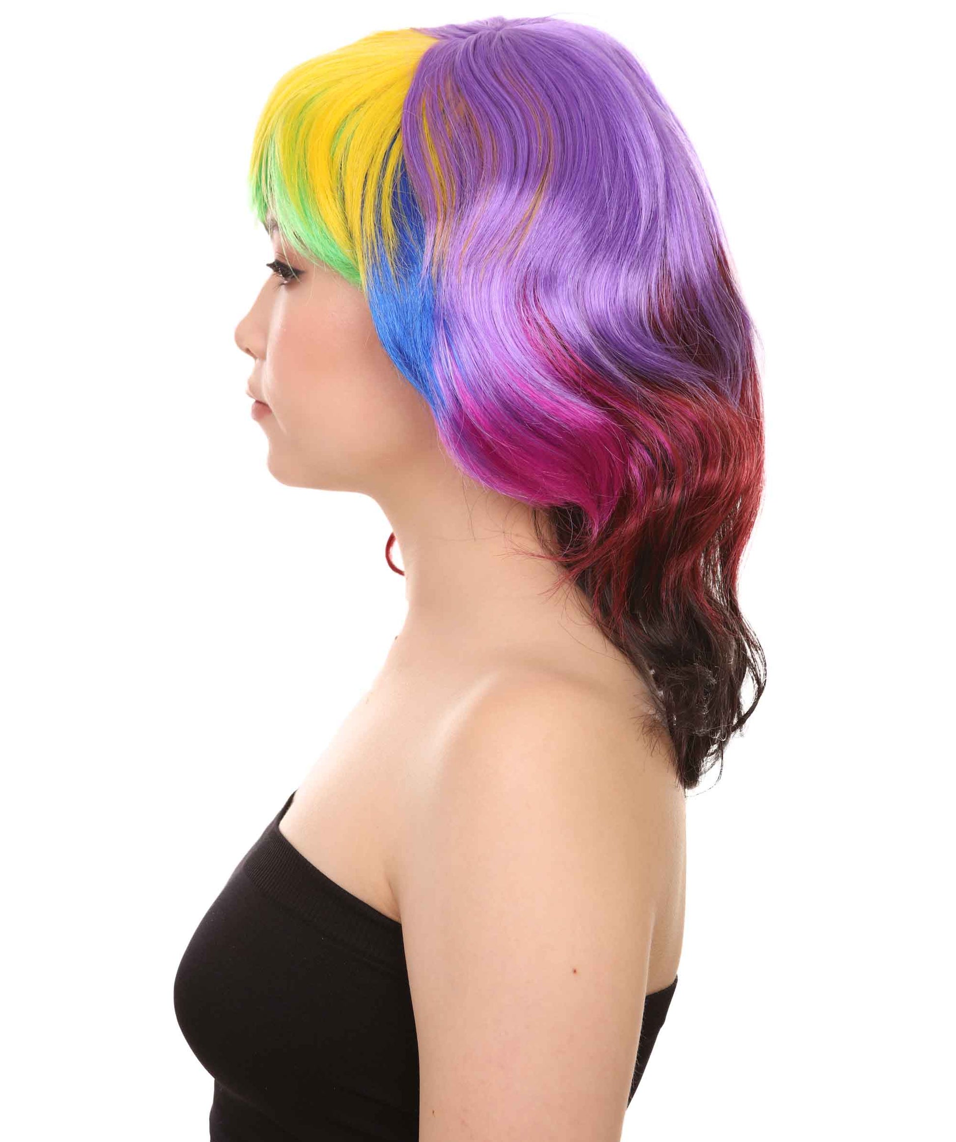 ハロウィンパーティープレミアムレディースH-2563 スイートキャンディウィッグ マルチカラー セクシーコスプレパーティーウィッグ プレミアム通気性のキャップレスキャップ