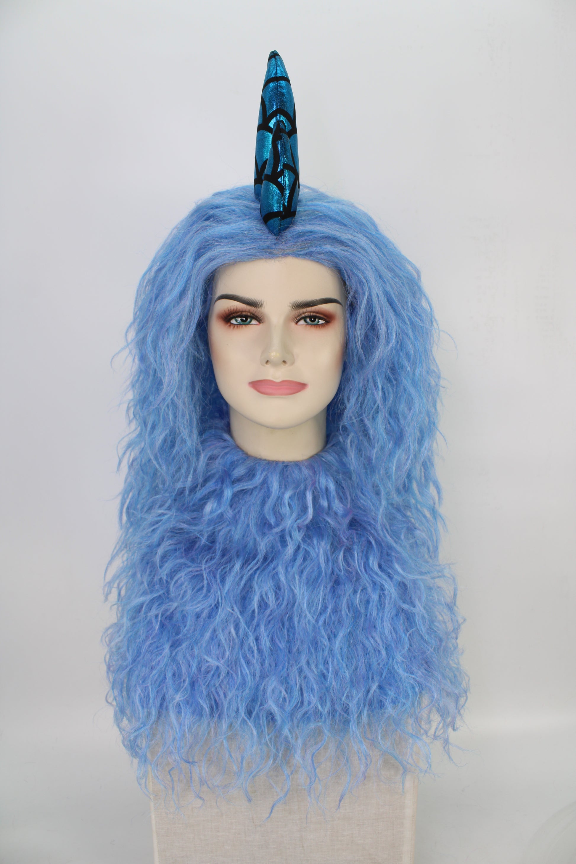 ハロウィンロングファーブルードラゴンウィッグは、異世界の美しさの雰囲気を作り出します。