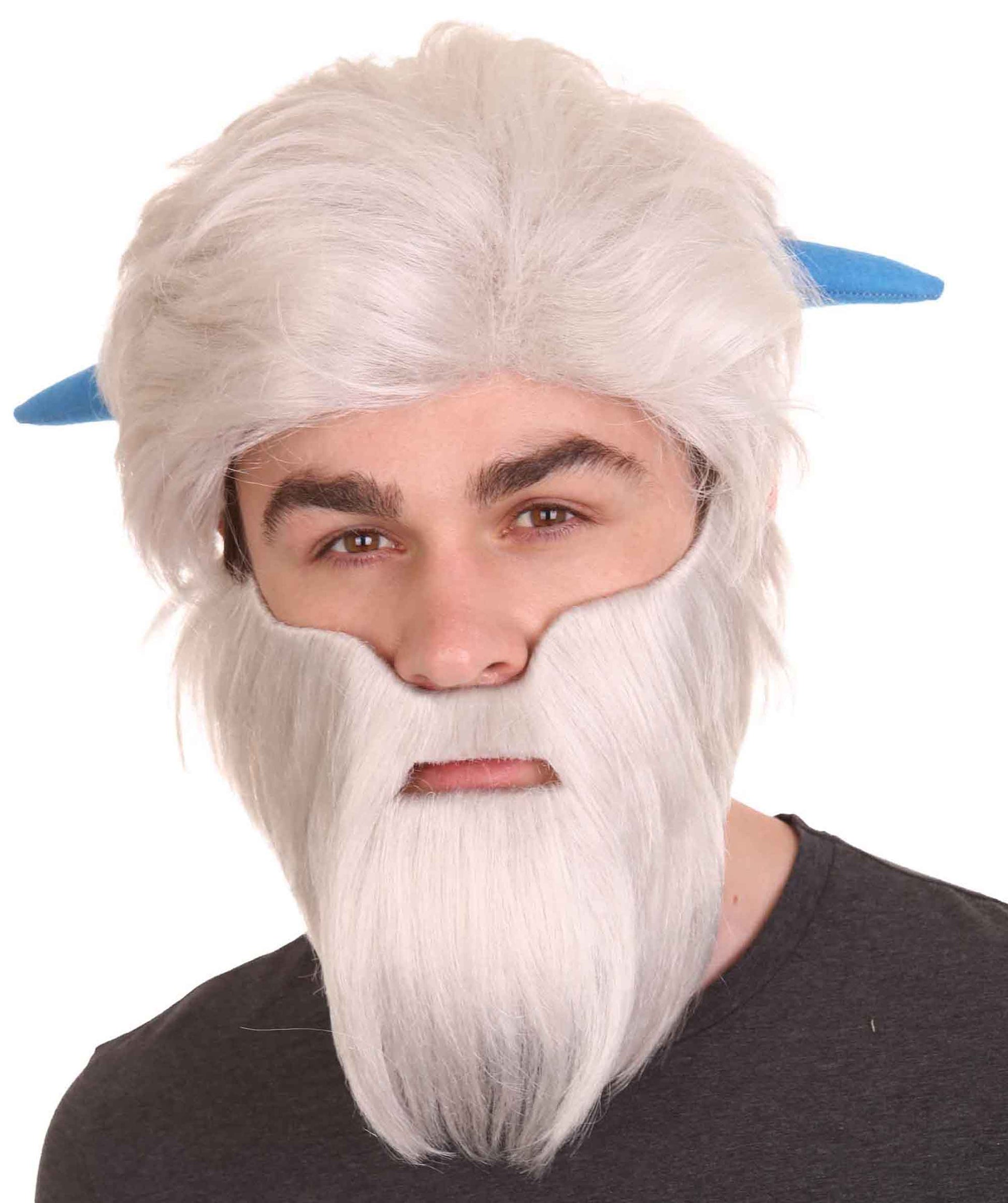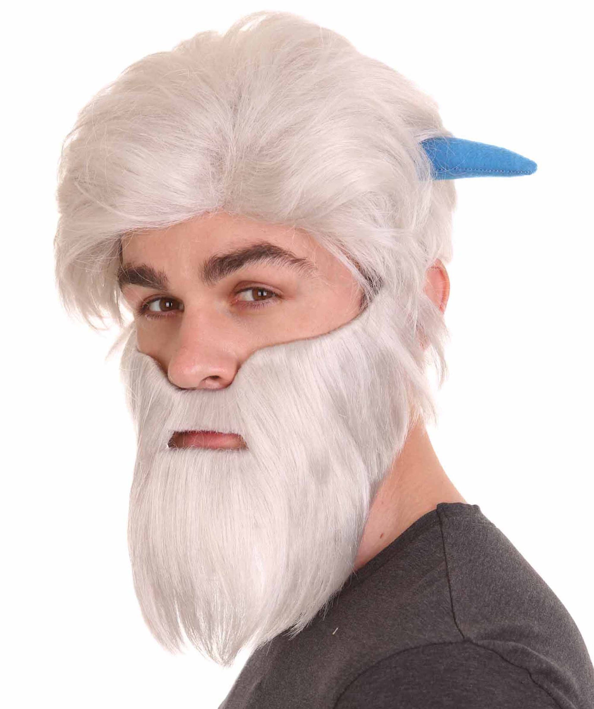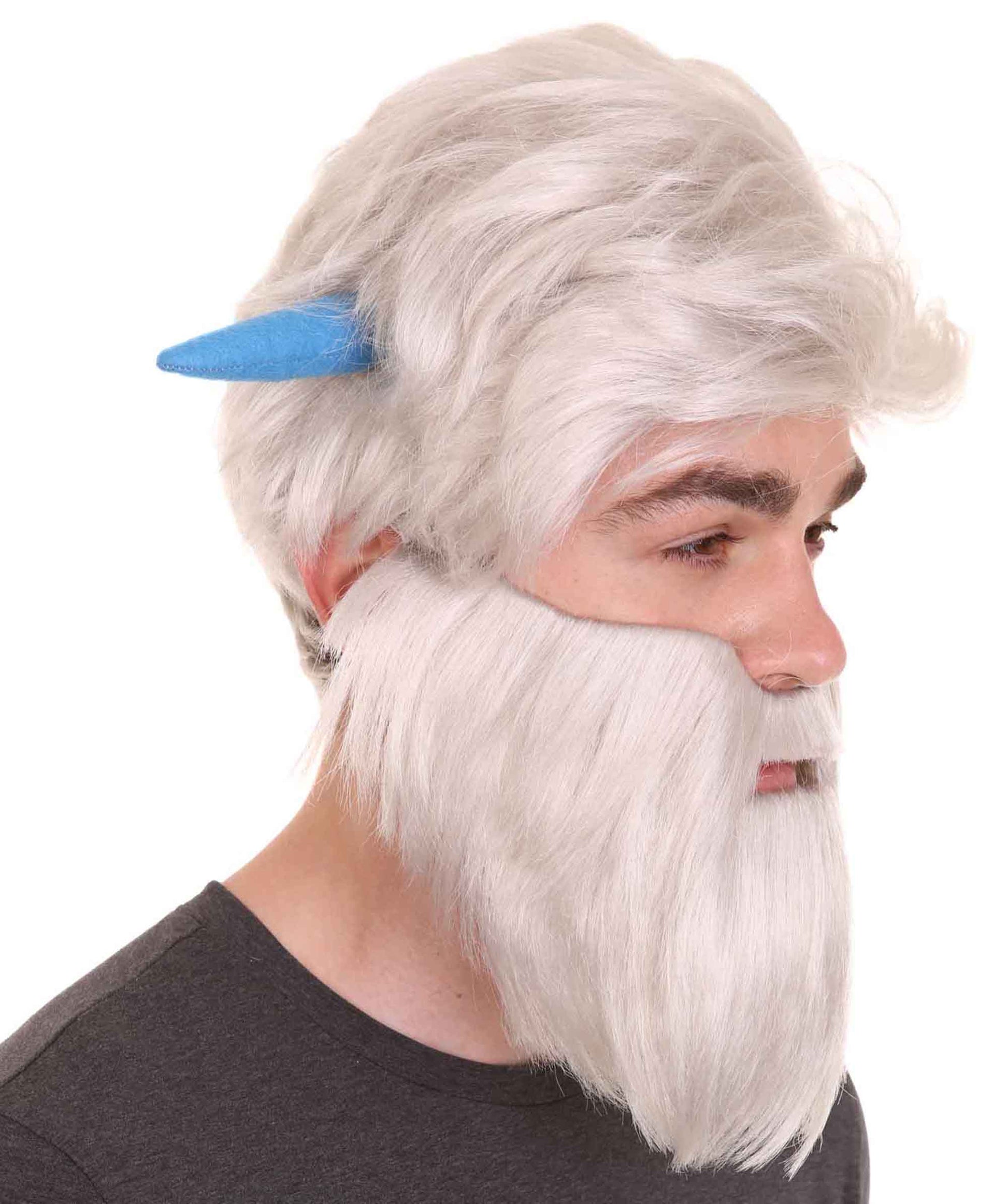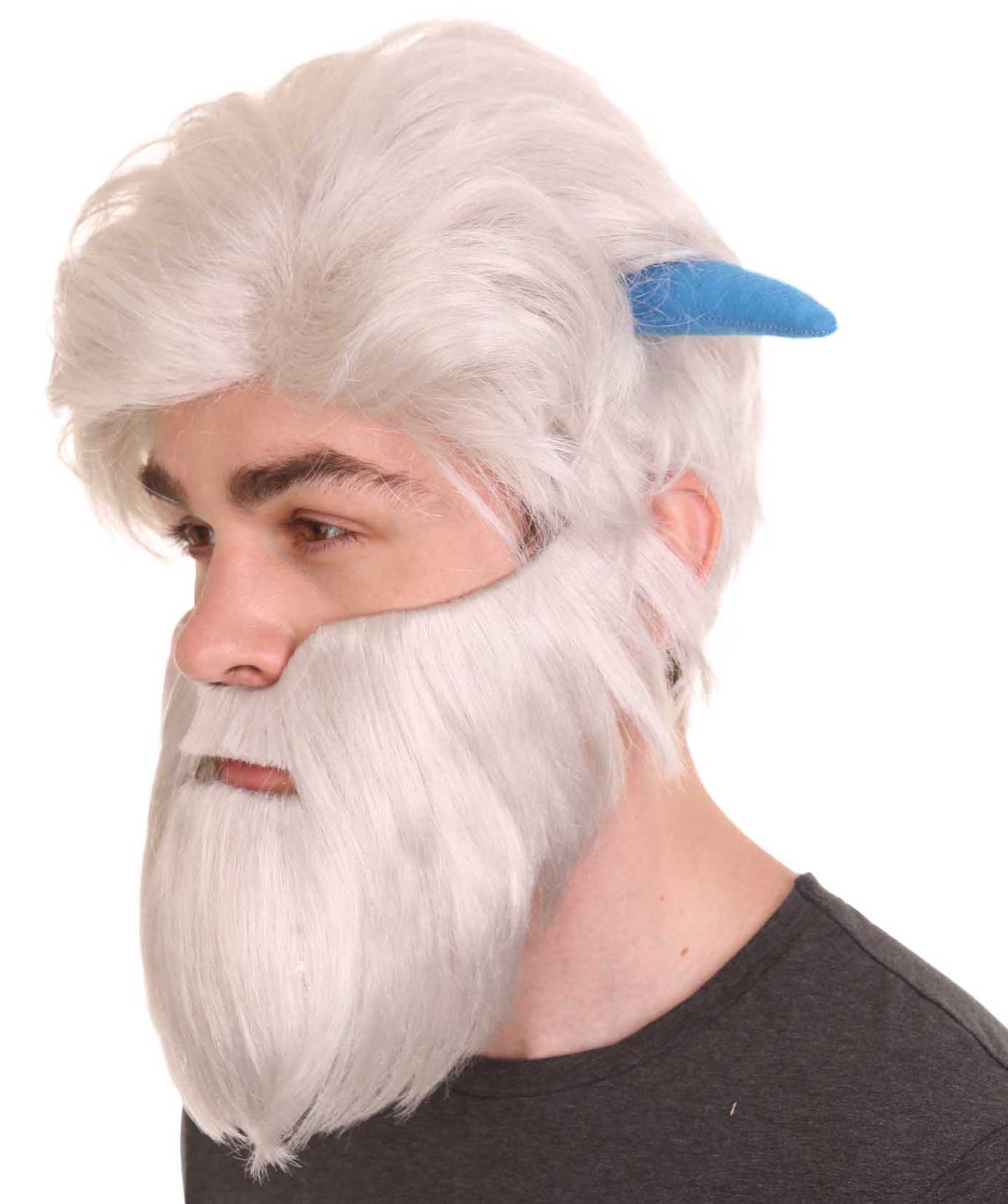 ハロウィンパーティープレミアムメンズ H-4800 スモールフットミゴホワイトウィッグ(フルひげと角付き)
