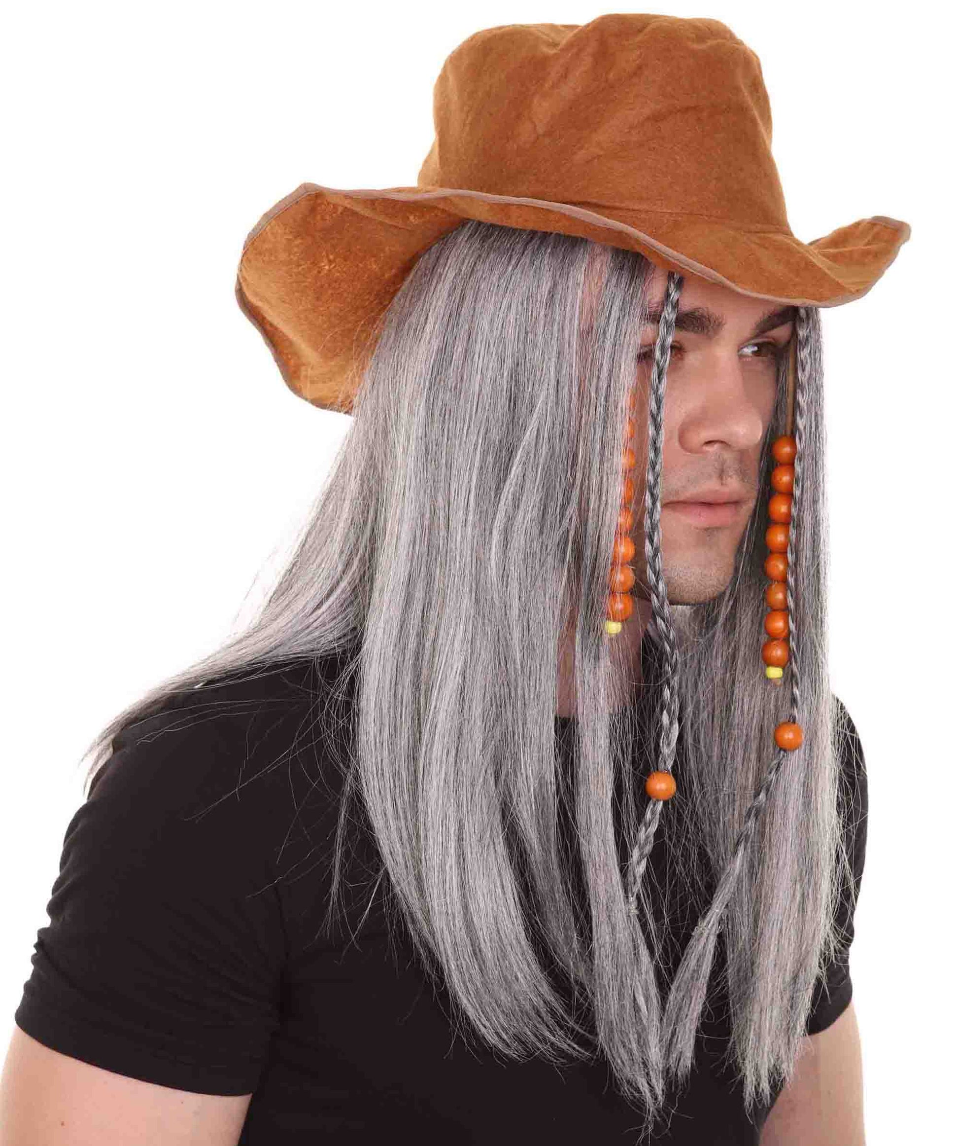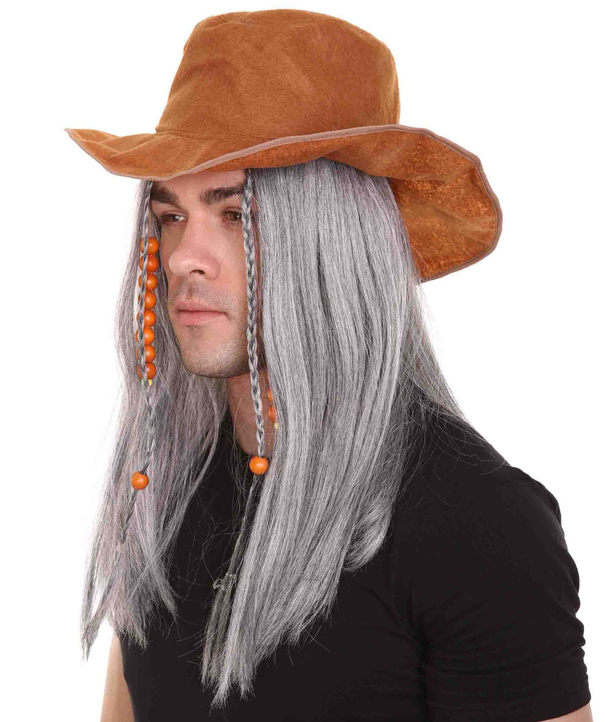 ハロウィンパーティープレミアムメンズ H-4802 ゴーストパイレートグレーウィッグ、ハットセット付き