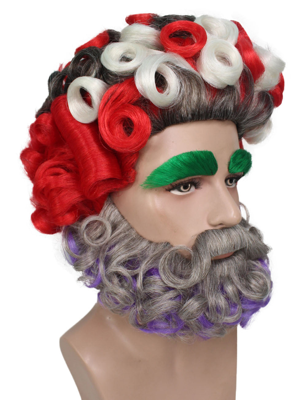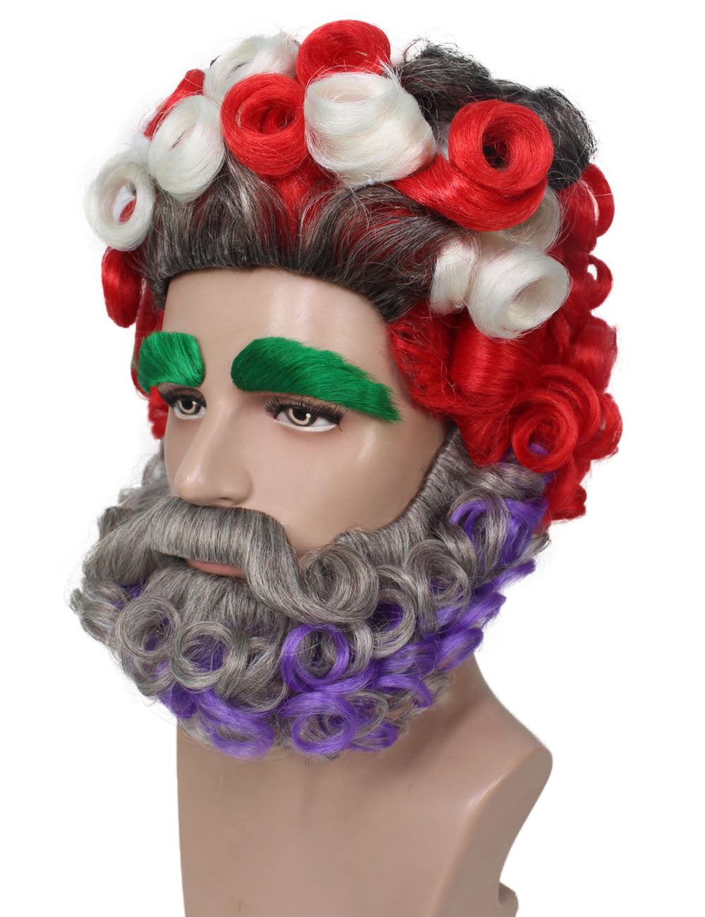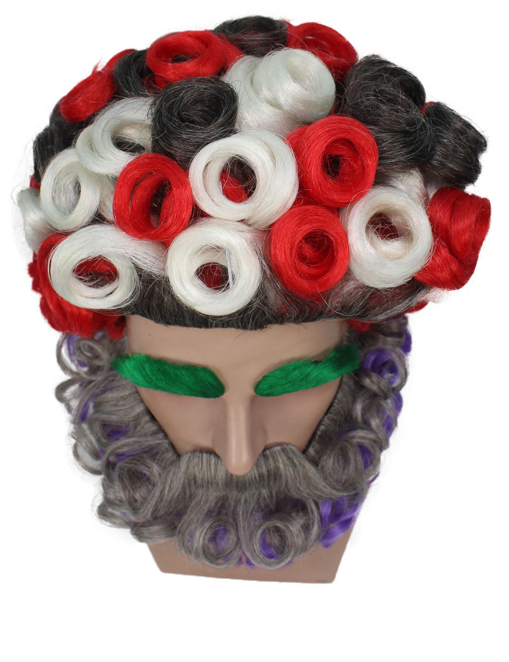 ハロウィンパーティ プレミアムメンズ H-5521 フラワーメン マルチカラーウィッグ ビアード1付き 合成繊維の髪