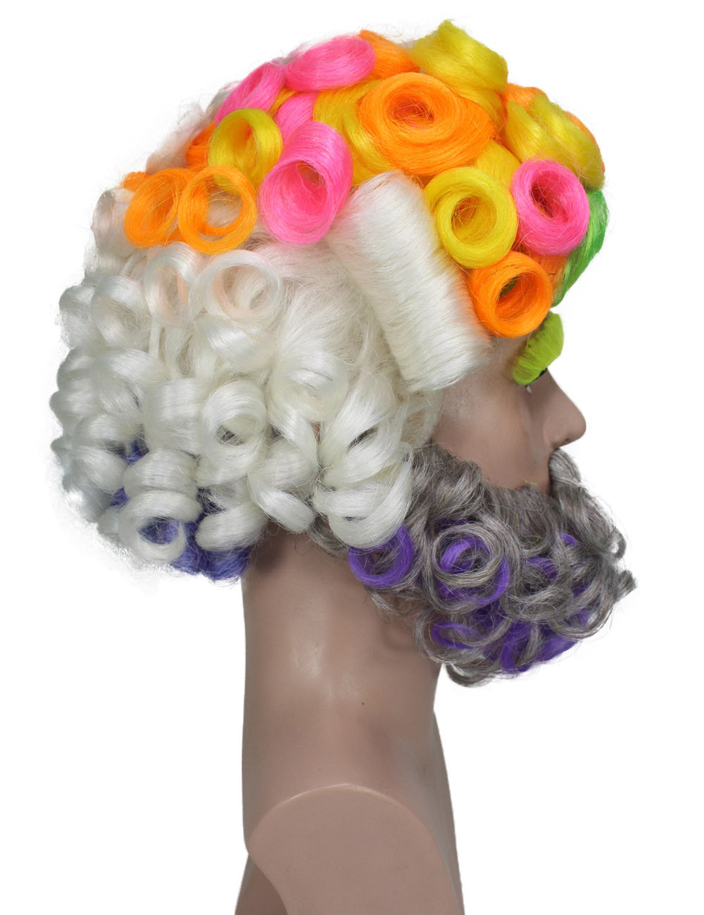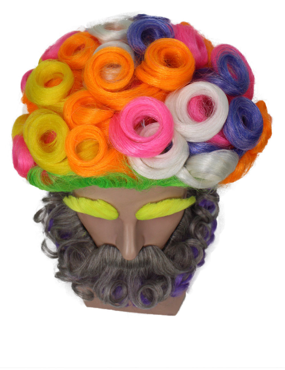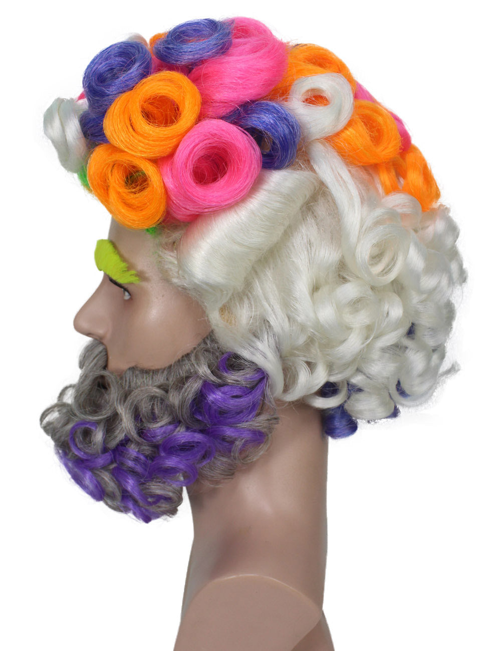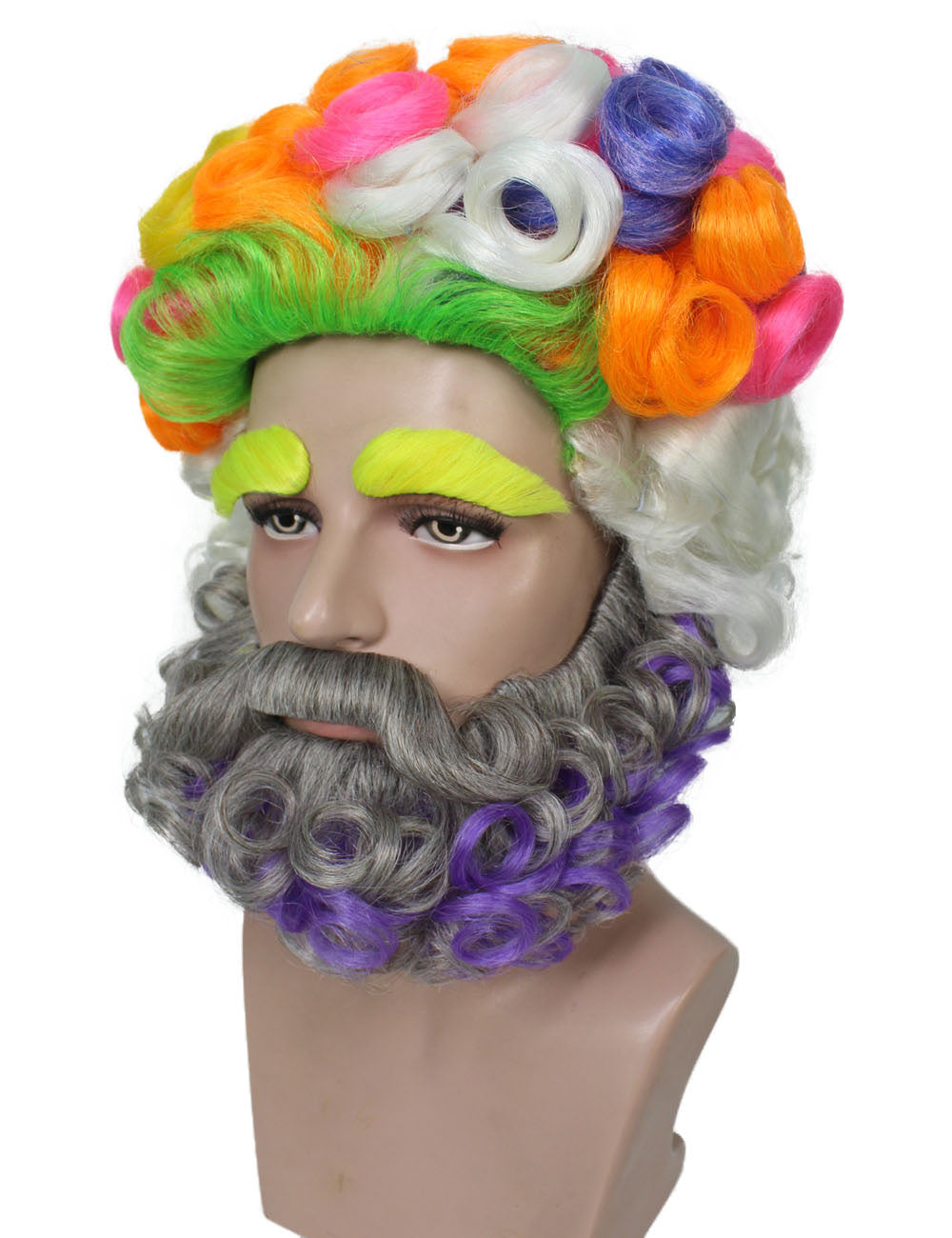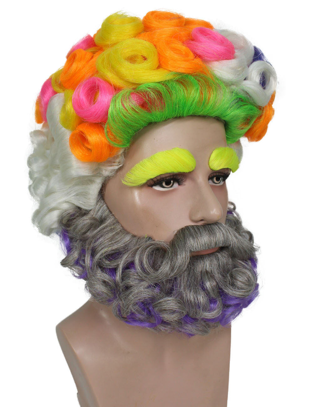 ハロウィンパーティ プレミアムメンズ H-5522 フラワーメン マルチカラーウィッグ ビアード2付き 合成繊維の髪