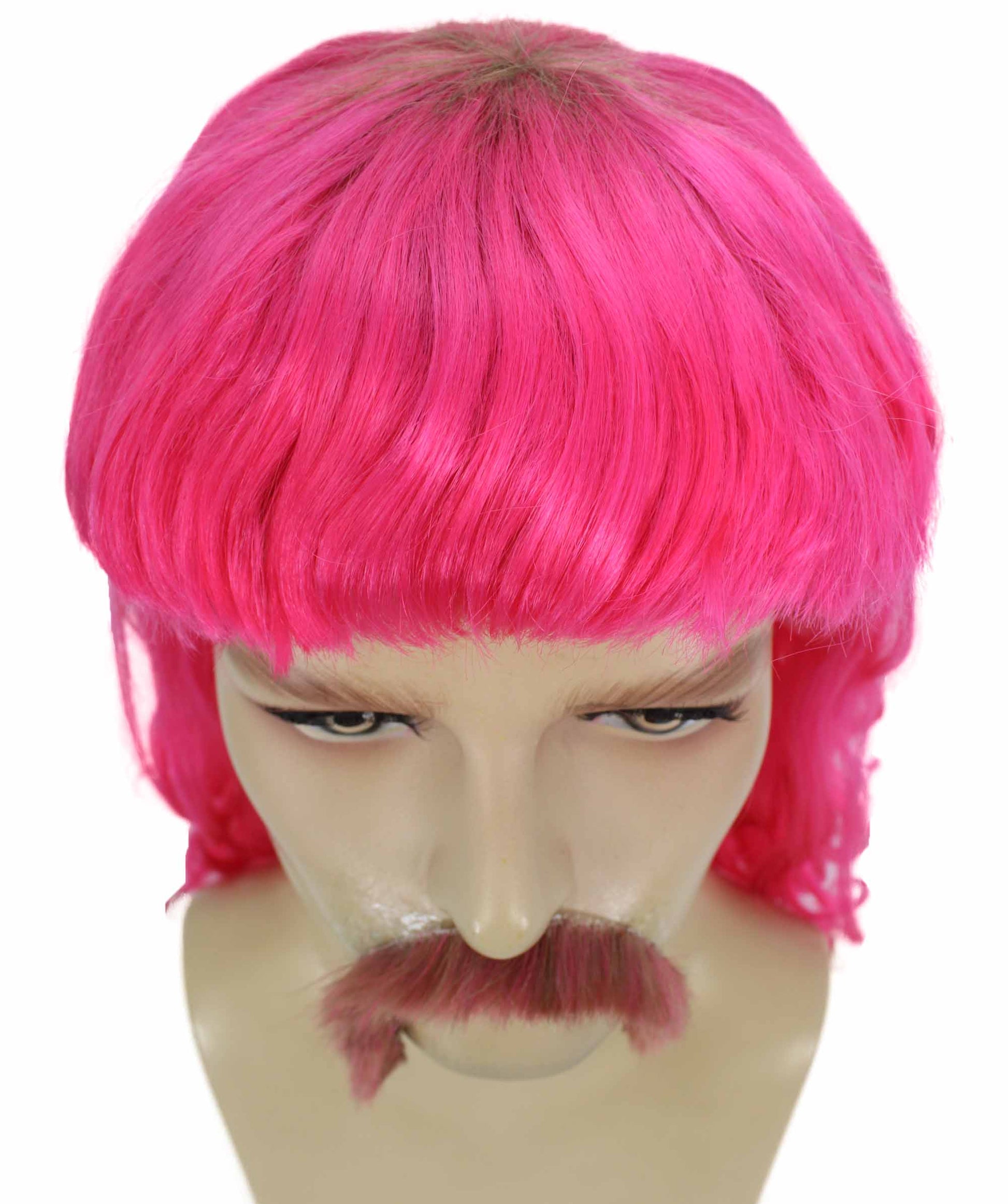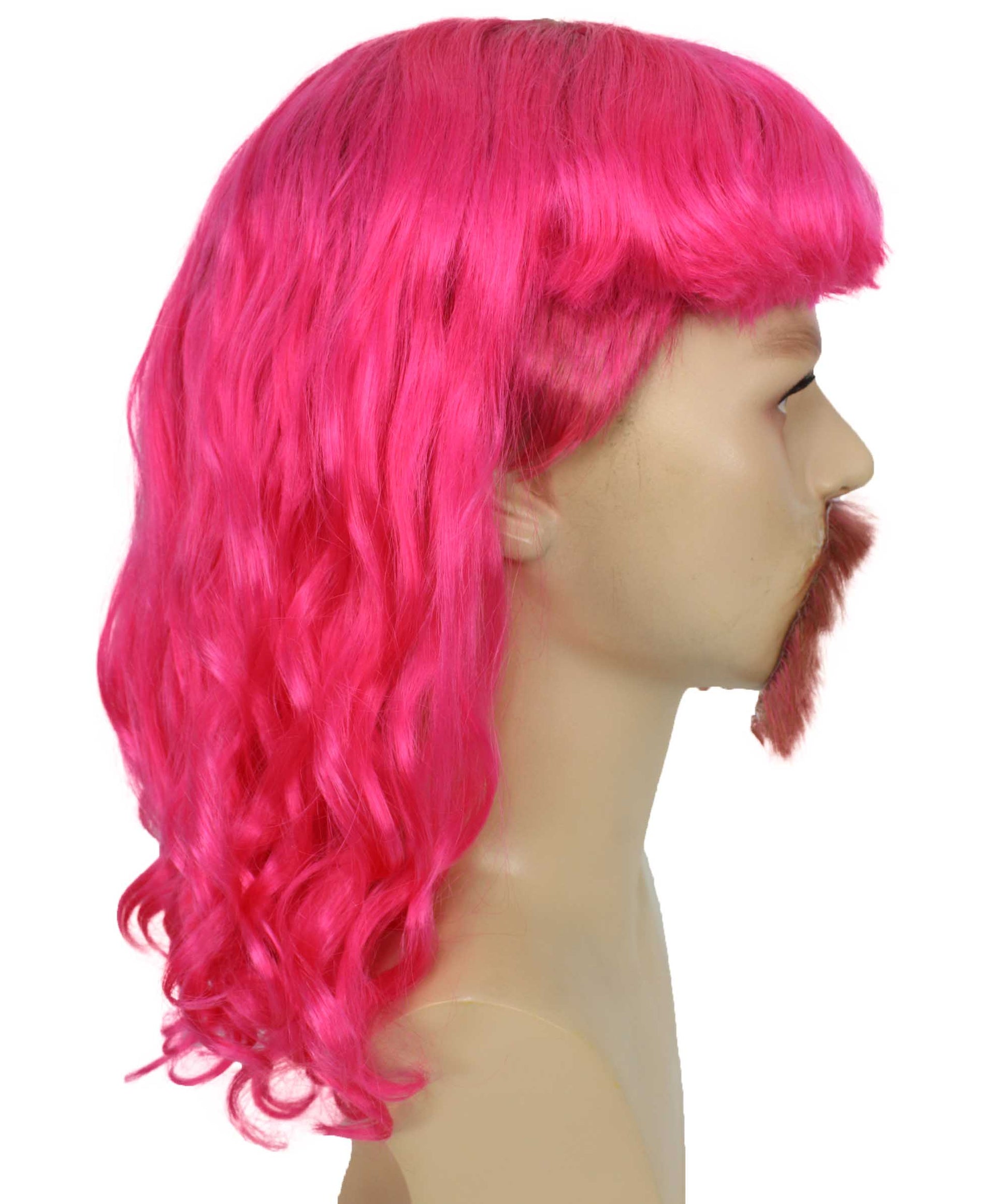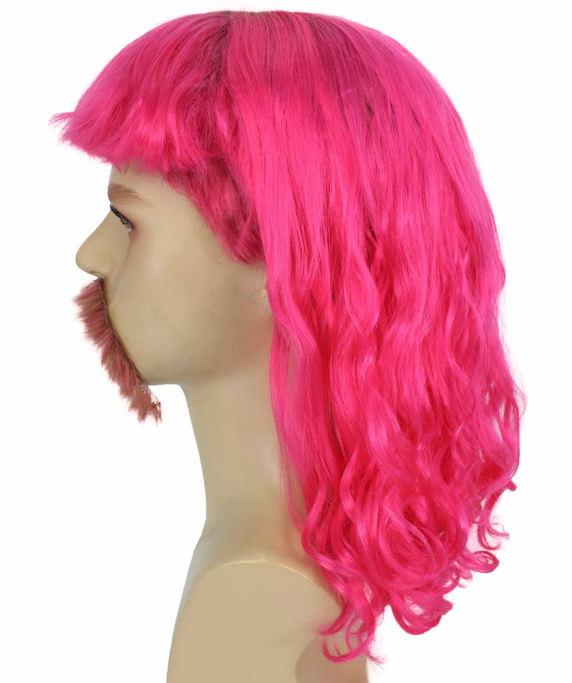 ハロウィンパーティープレミアムメンズH-5565_PKピンクマレットウィッグとヒゲセット