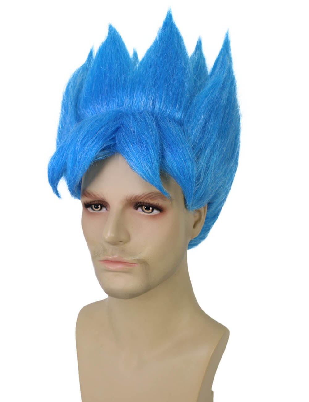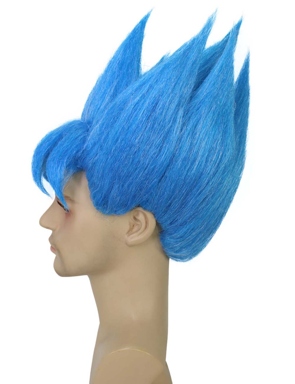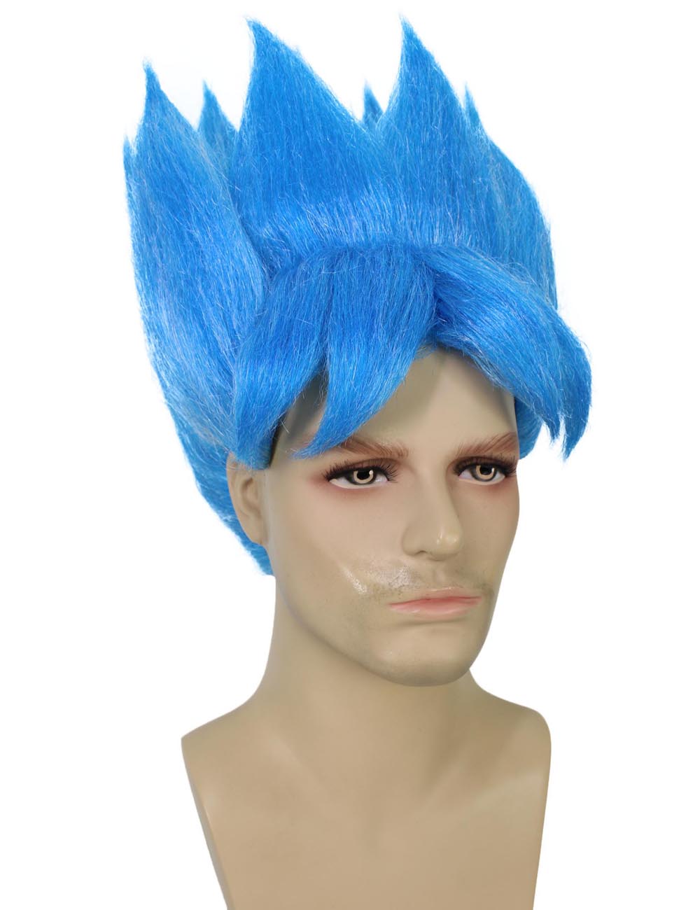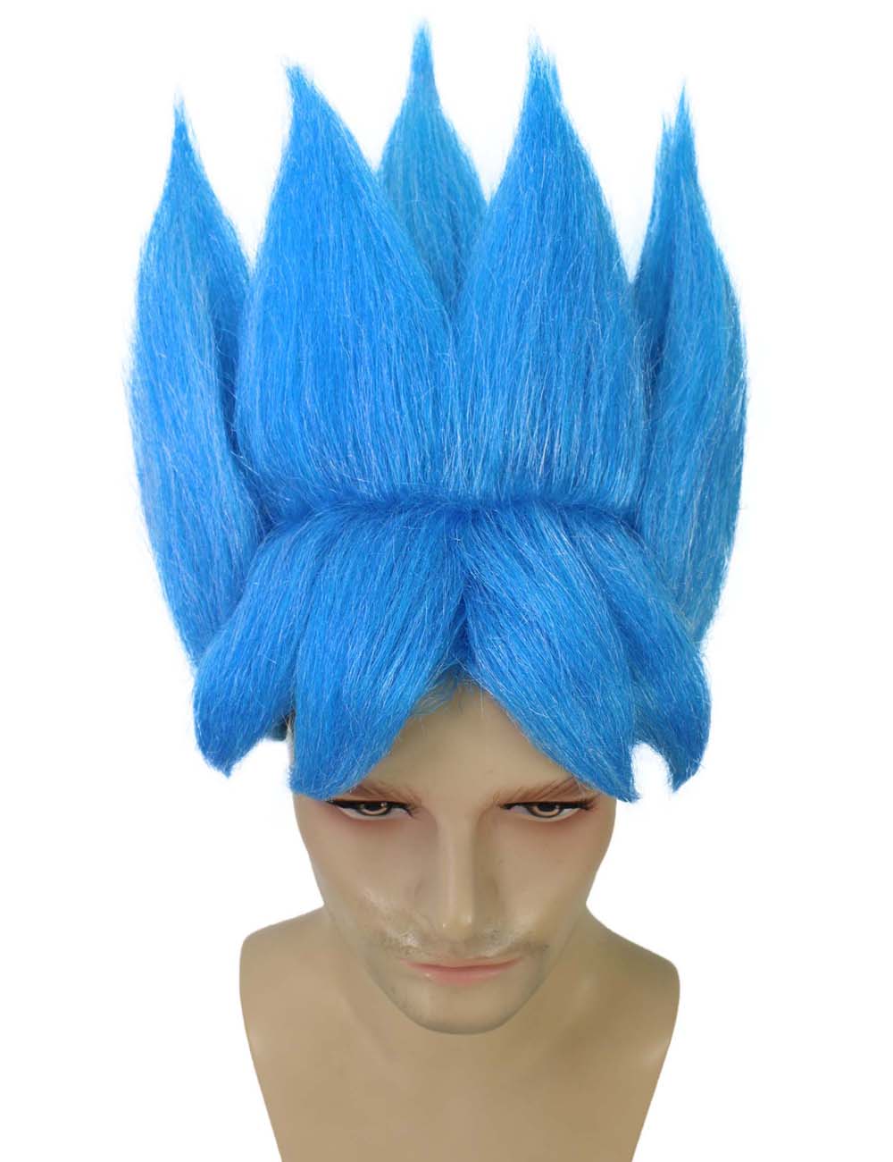ハロウィンパーティープレミアムメンズ H-5638 スパイク付きブルーマンガウィッグ 軟らかい合成繊維の髪