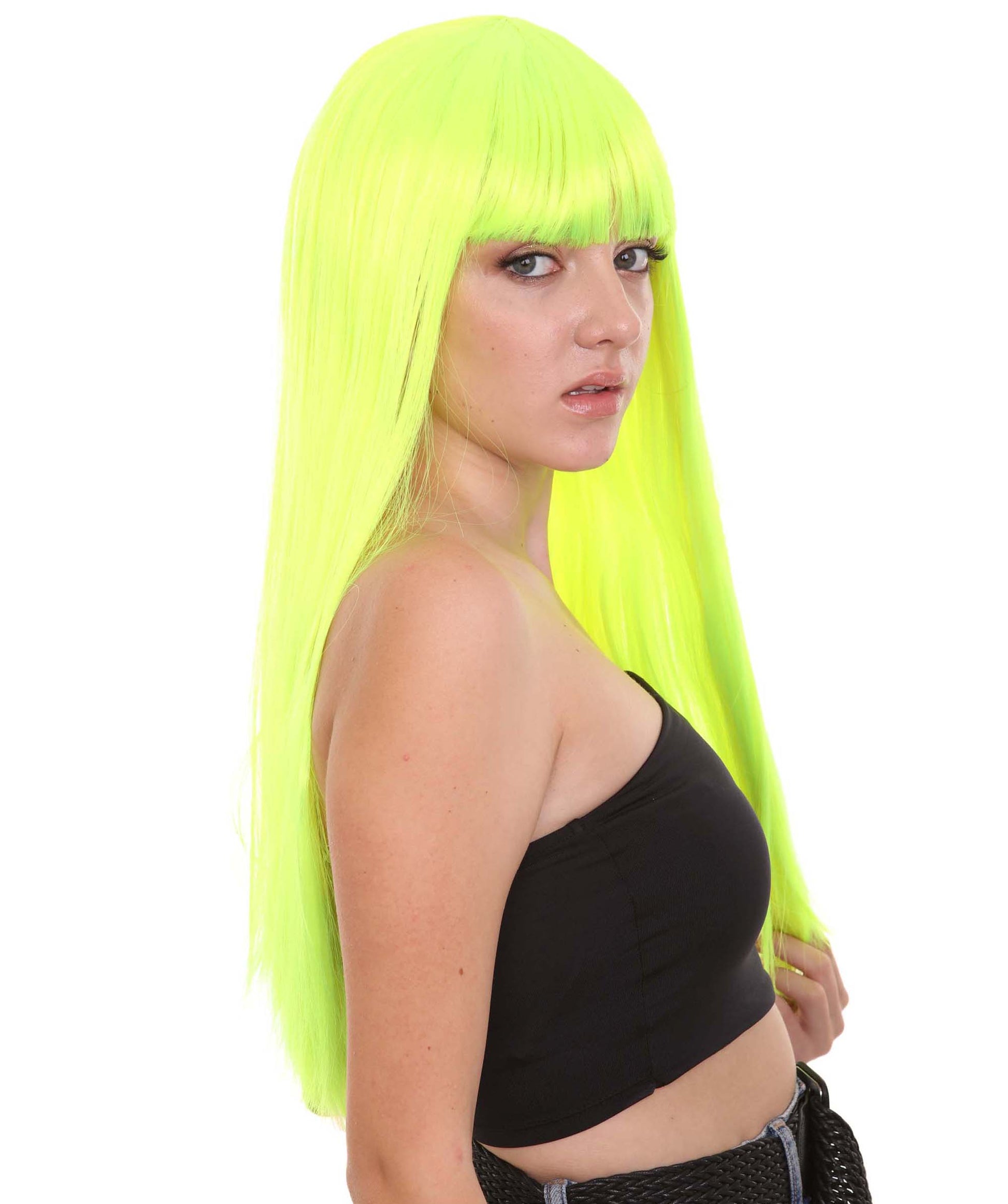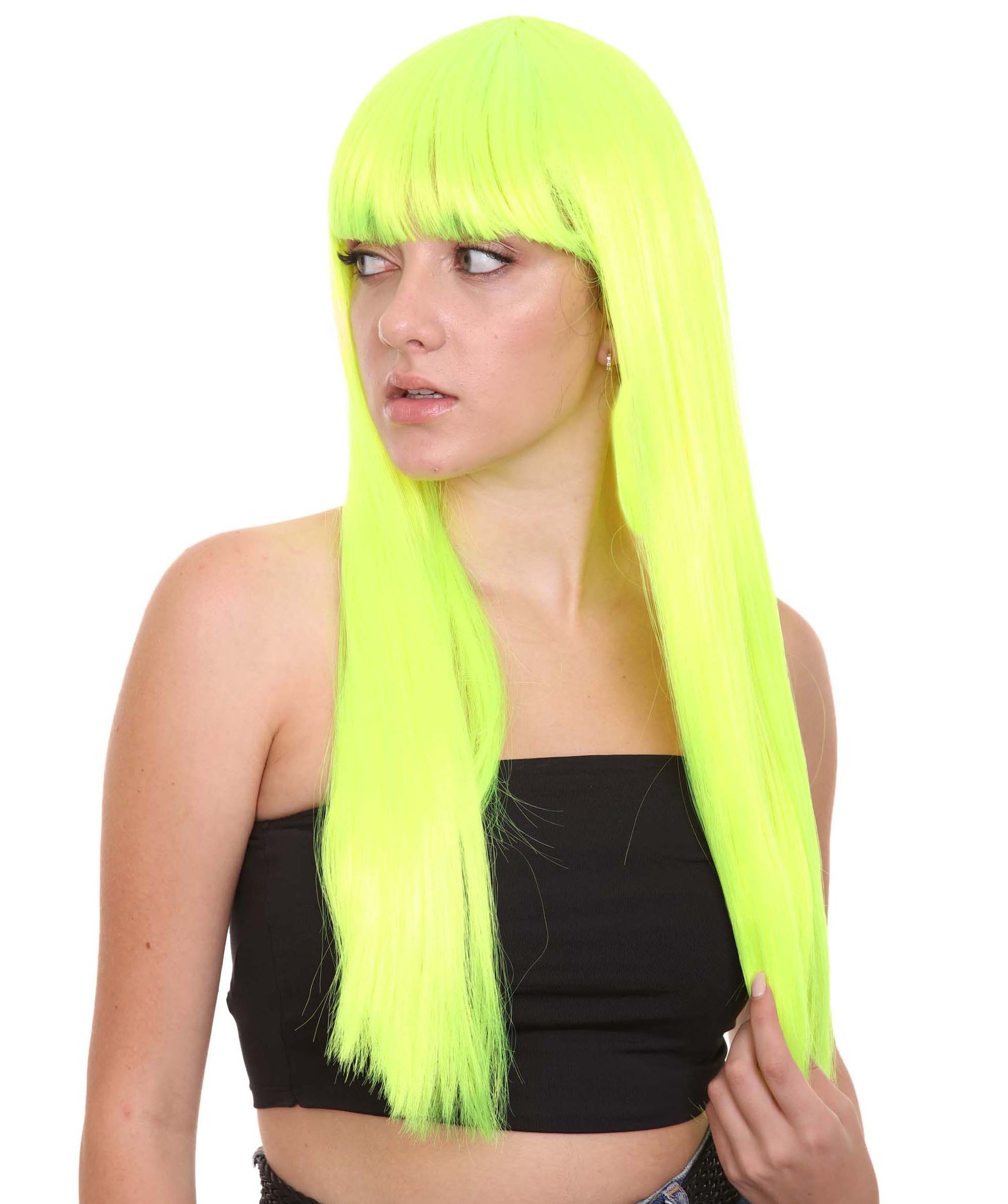 ロングボブネオングリーン女性用ウィッグ H-3364 華やかなパーティーイベント準備完了のハロウィンウィッグ プレミアム通気性のあるキャップレスキャップ