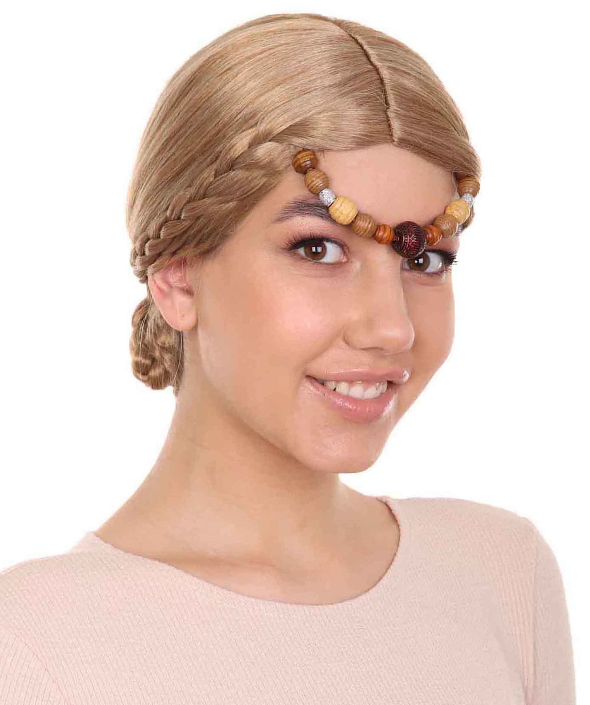 中世ルネッサンスエレガントプリンセス編み込みブロンドウィッグ H-3823 エレガントプリンセス編み込みブロンドウィッグ プレミアム 通気性の良い キャップレスキャップ