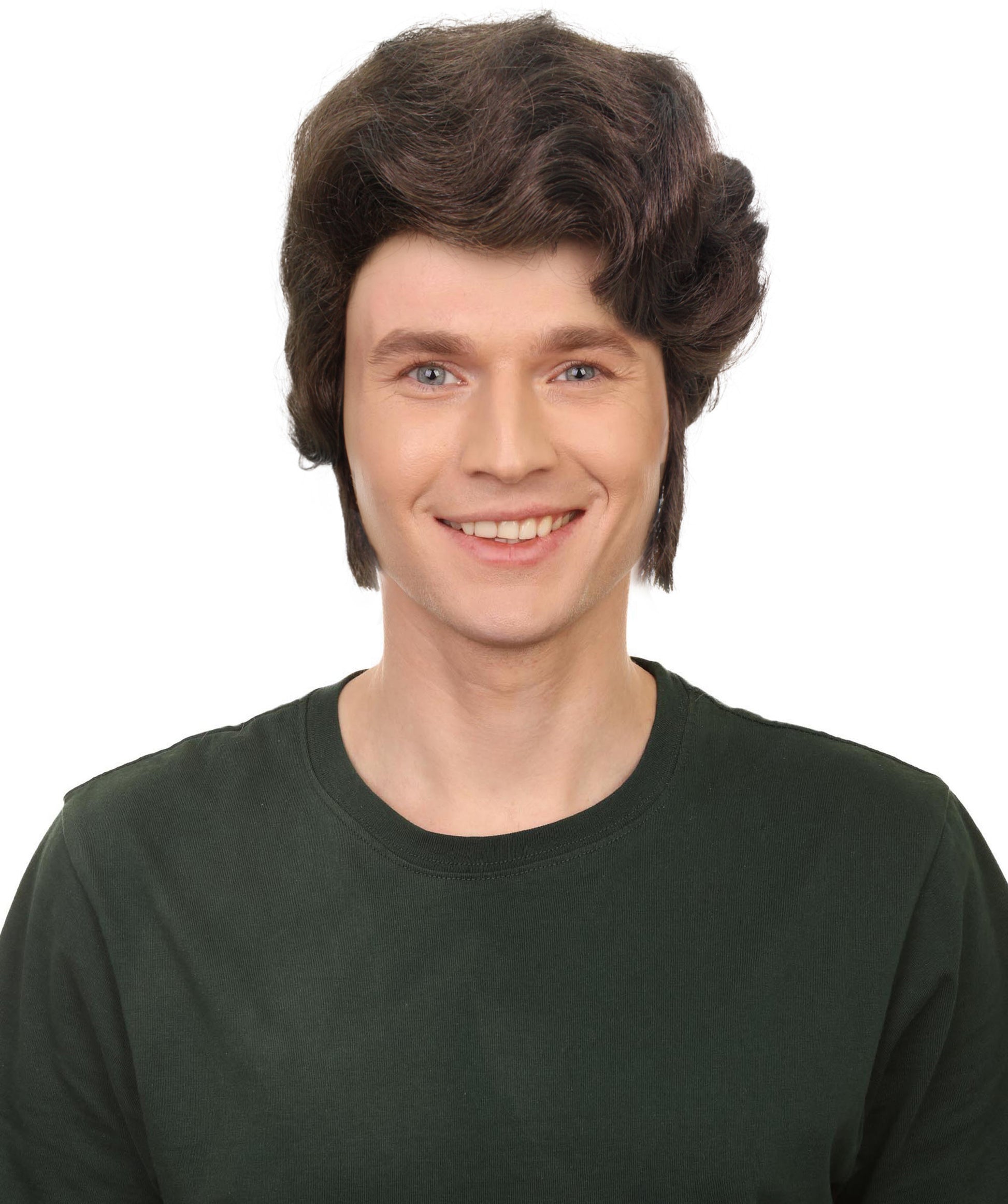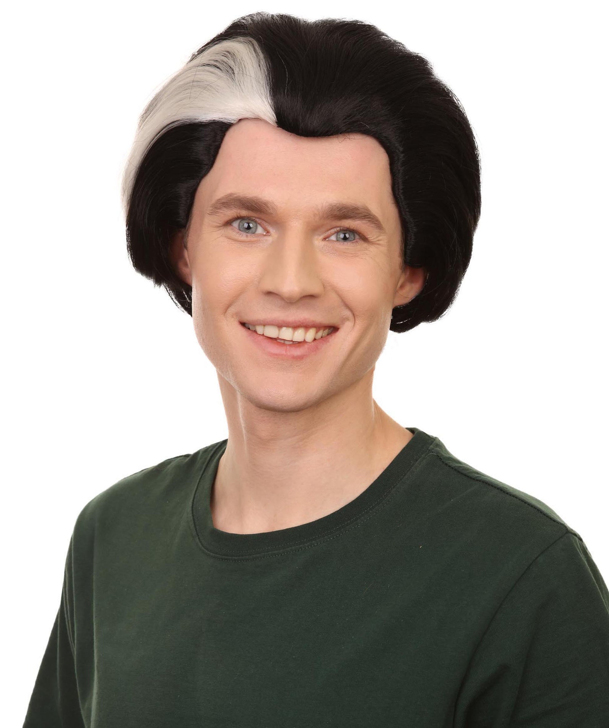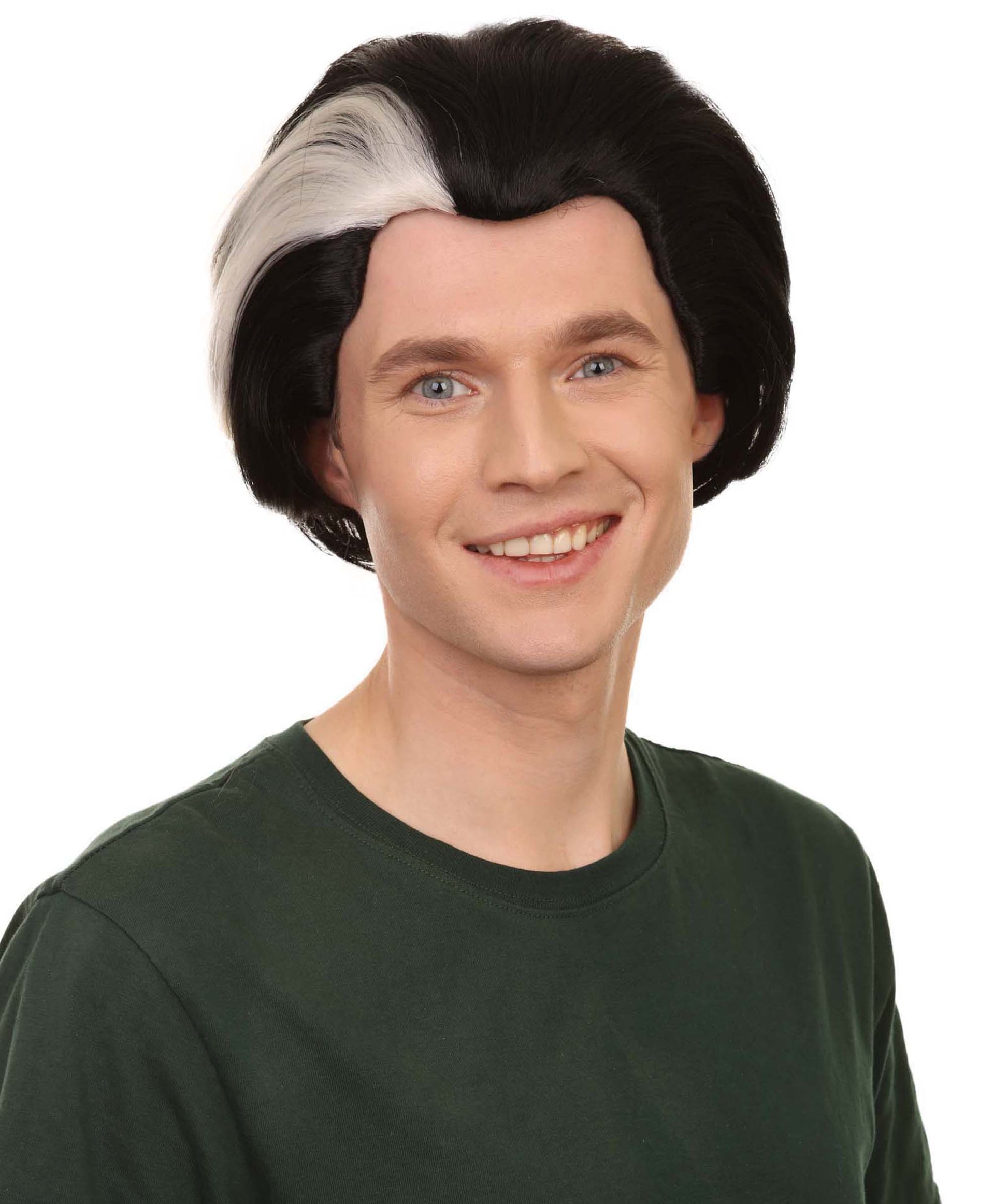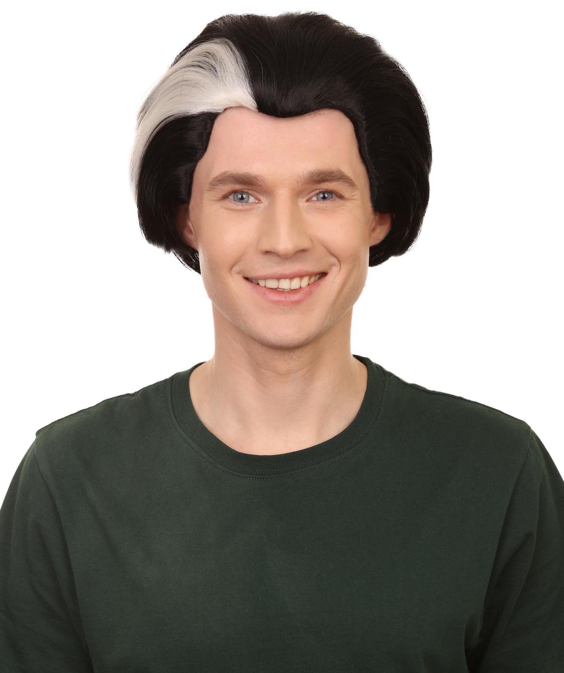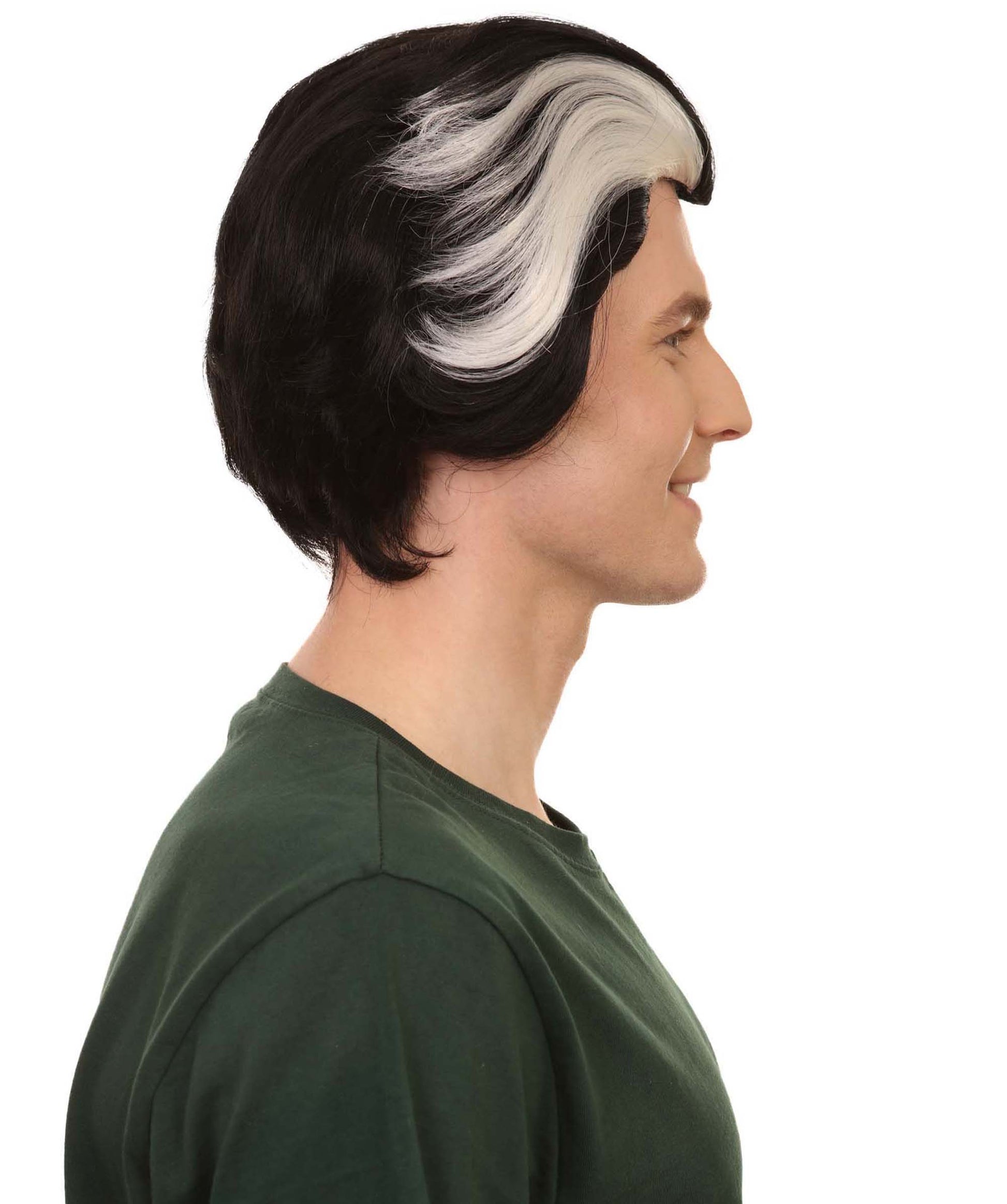 メンズ H-5636 デーモン バーバー シアターウィッグ ブラック チンレングス ヘアとホワイトストリーク プレミアムハロウィンウィッグ