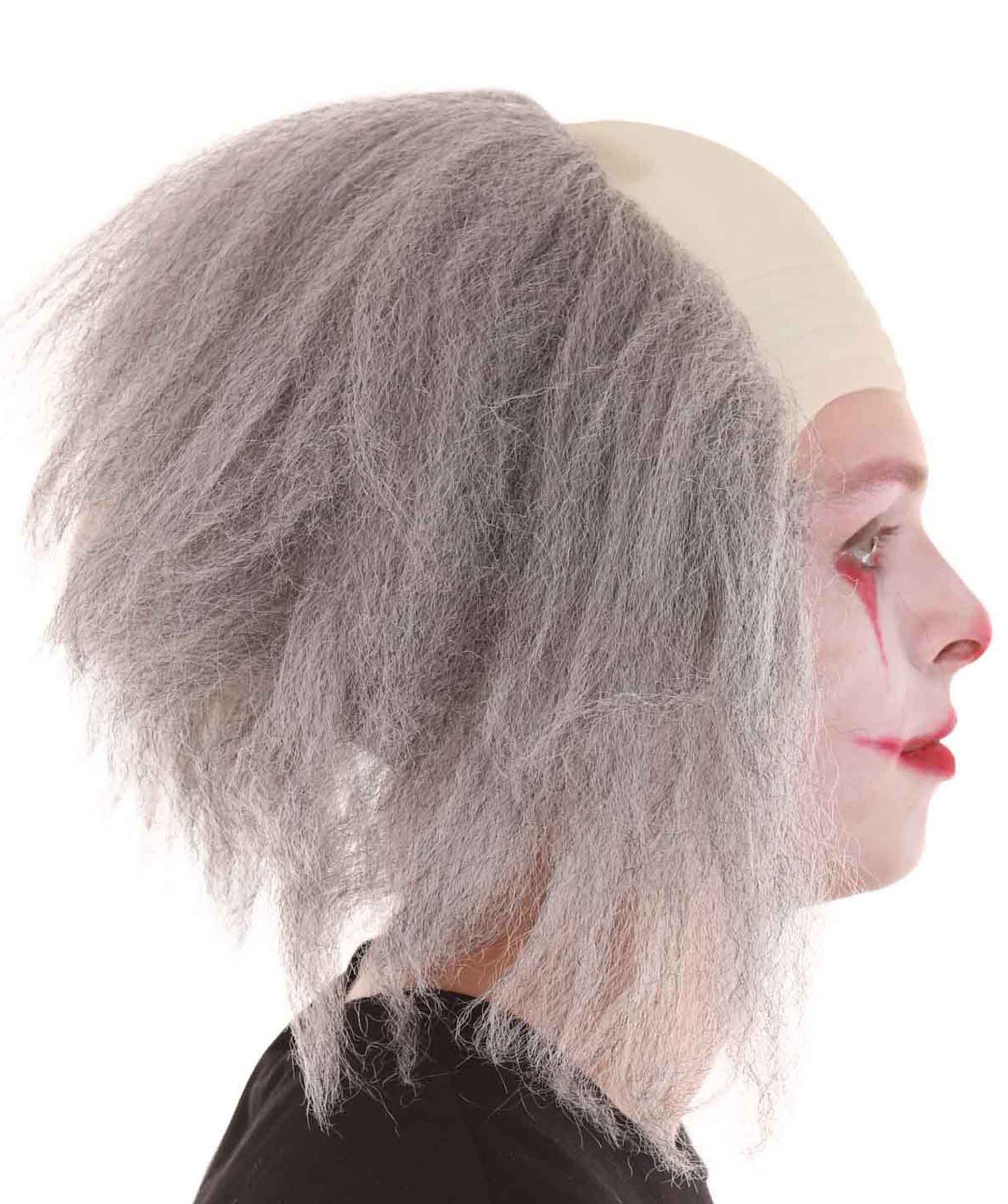大人男性向けのホラー映画におけるピエロは、その見た目や雰囲気から恐怖を煽る要素としてよく使用されます。このコスチュームは、そのような怖いピエロのイメージを表現するために設計されています。半分ハゲたウィッグは、不気味な雰囲気を強調し、見た目にリアリティを与える役割を果たしています。さらに、マルチカラーのオプションが用意されていることで、ユーザーは自分好みのデザインを選択できます。