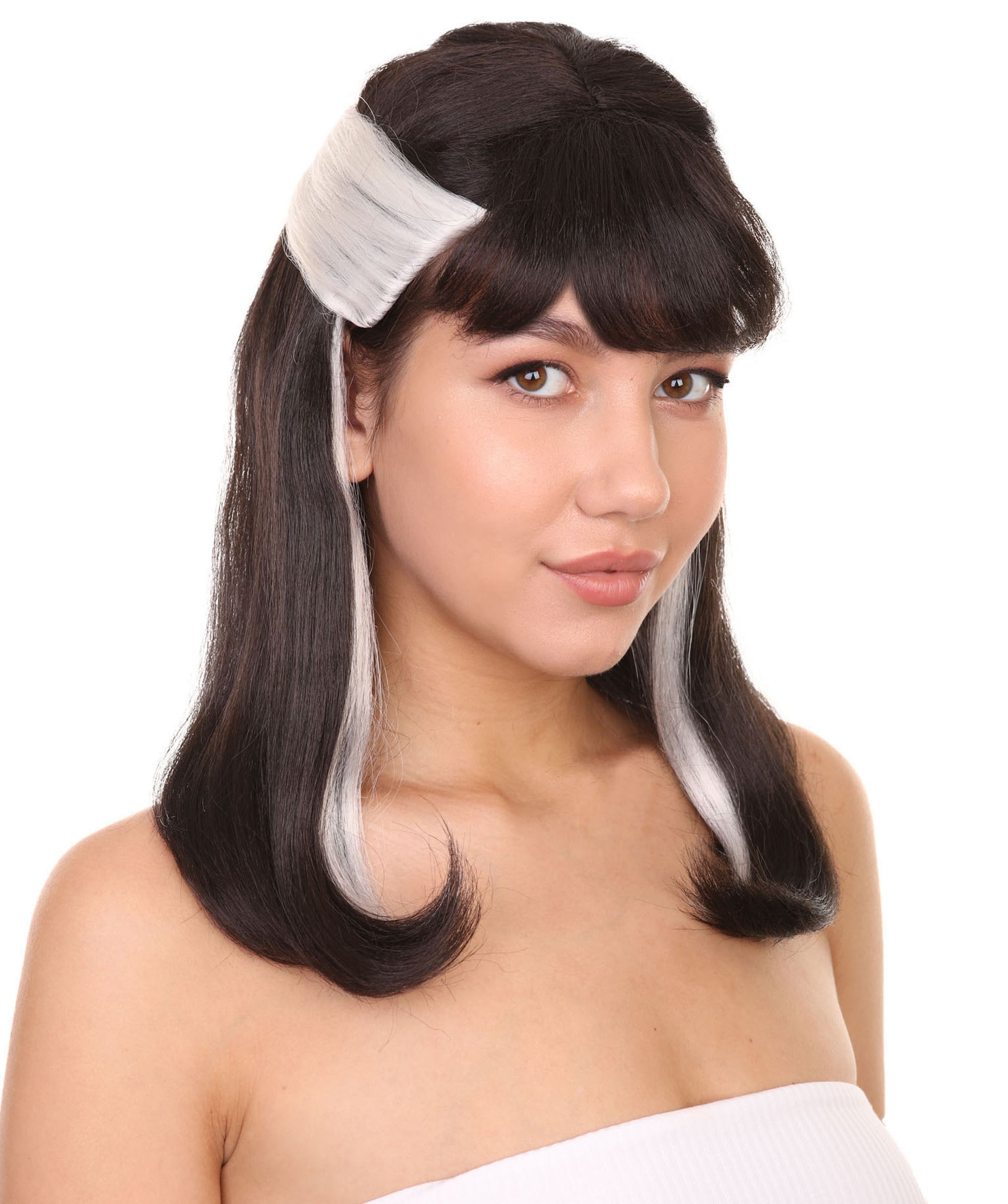 プレミアムハロウィンパーティーレディ H-5469 ミディアムレングス ブラックホワイト ウィザード ナルシッサウィッグ 黒と白