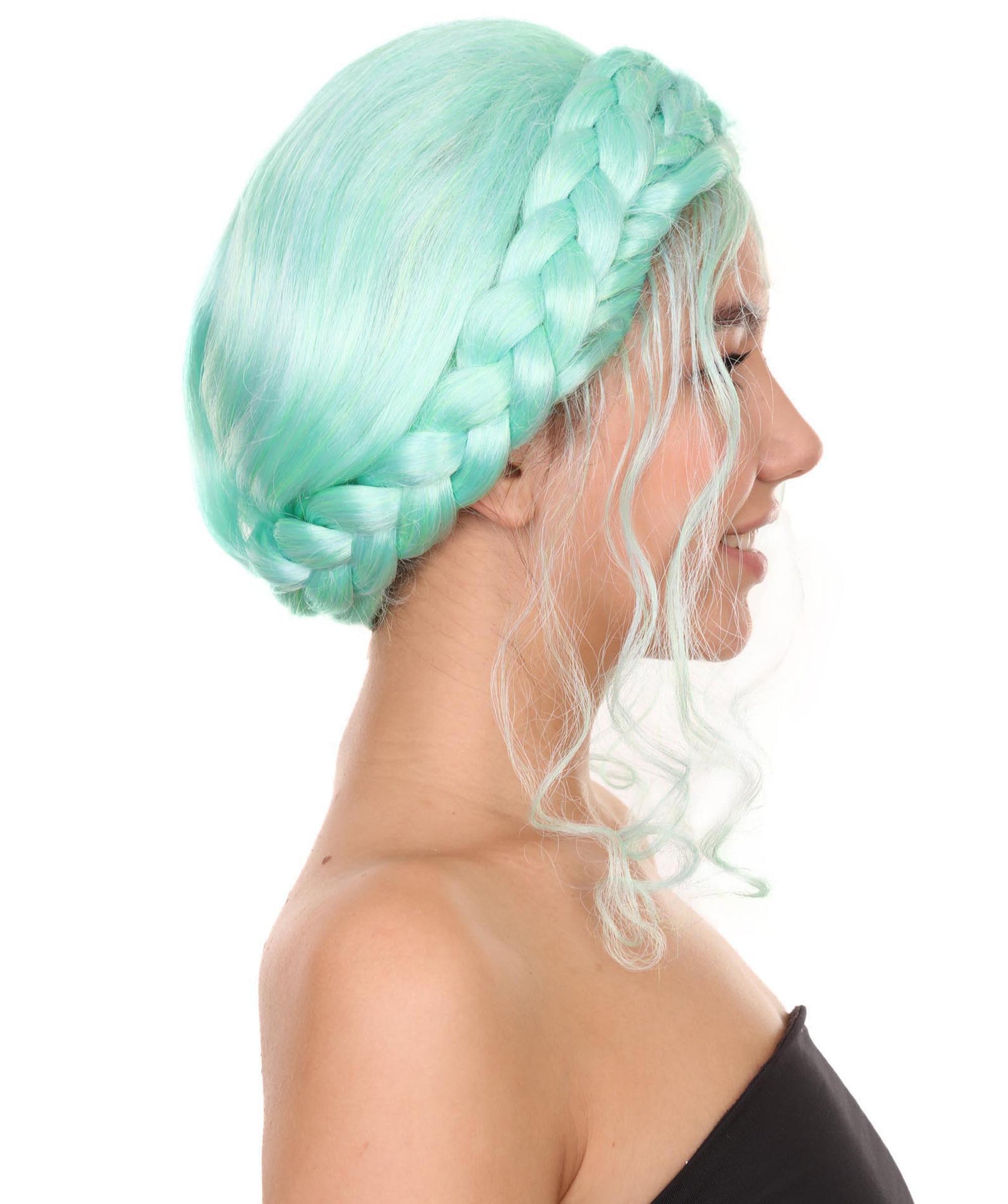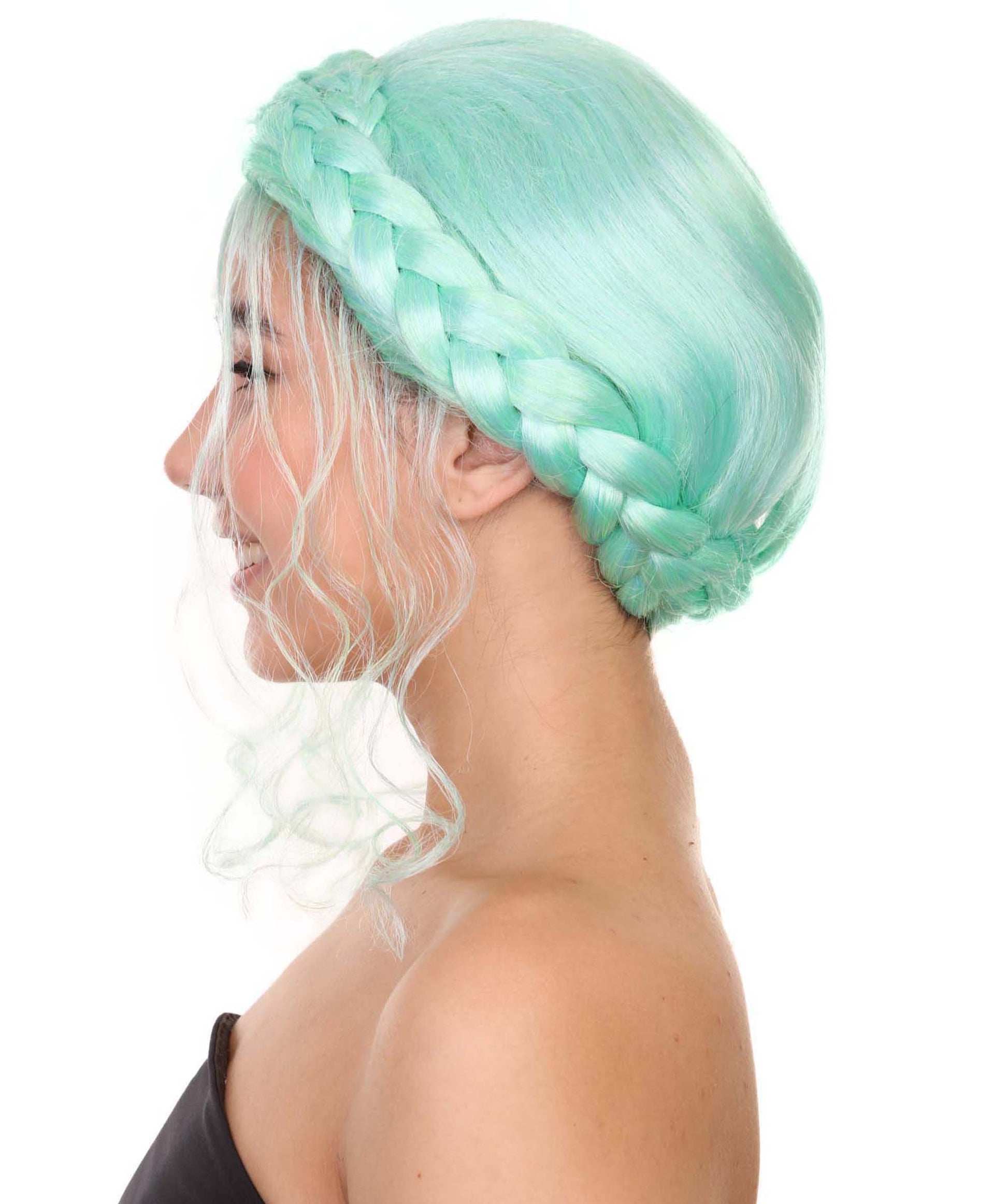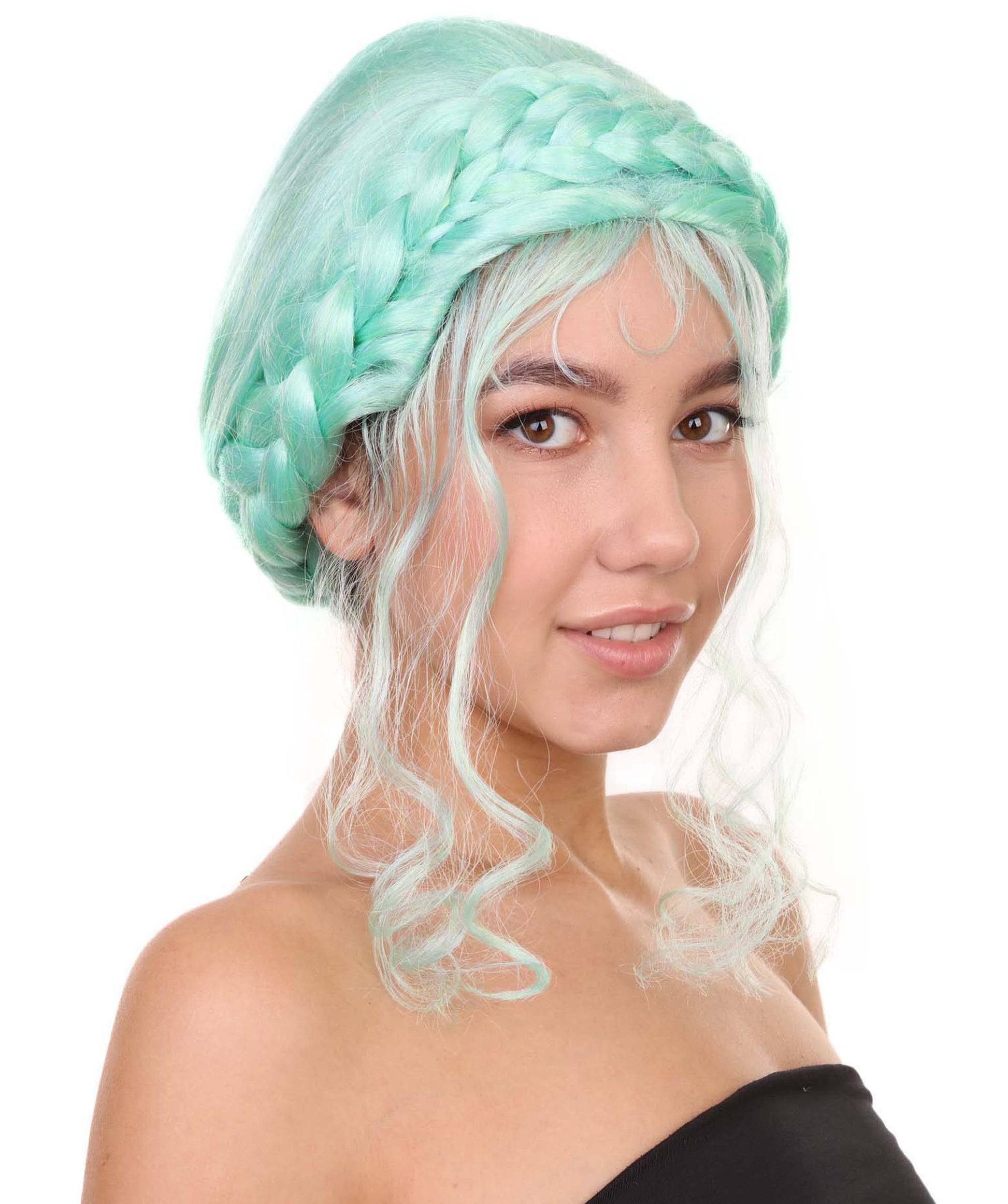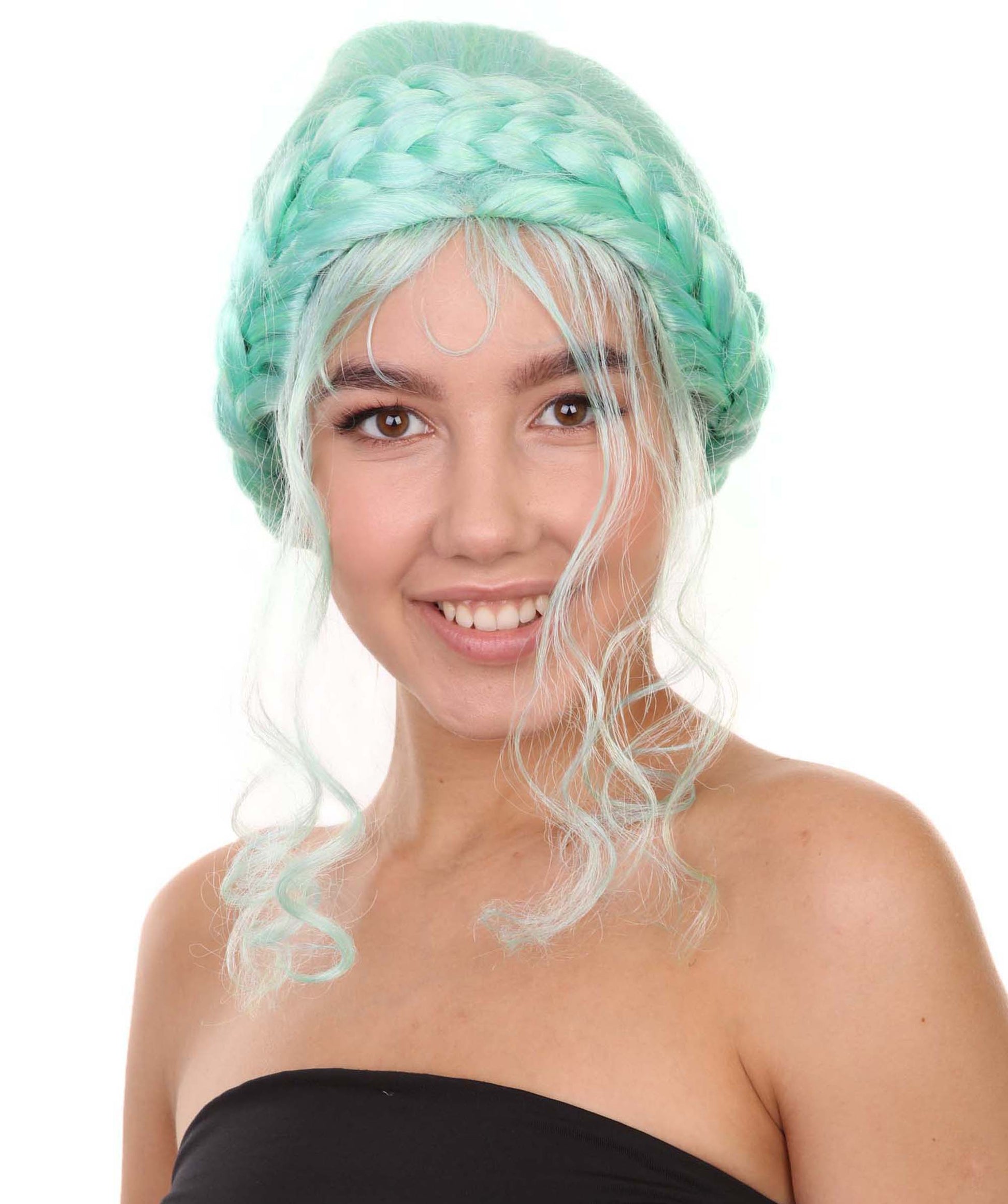 プレミアムハロウィンパーティー 女性 H-5404 ミディアムレングス ブレイデッドアップド アイコニックインフルエンサーオブソーシャルメディアウィッグ ブルー