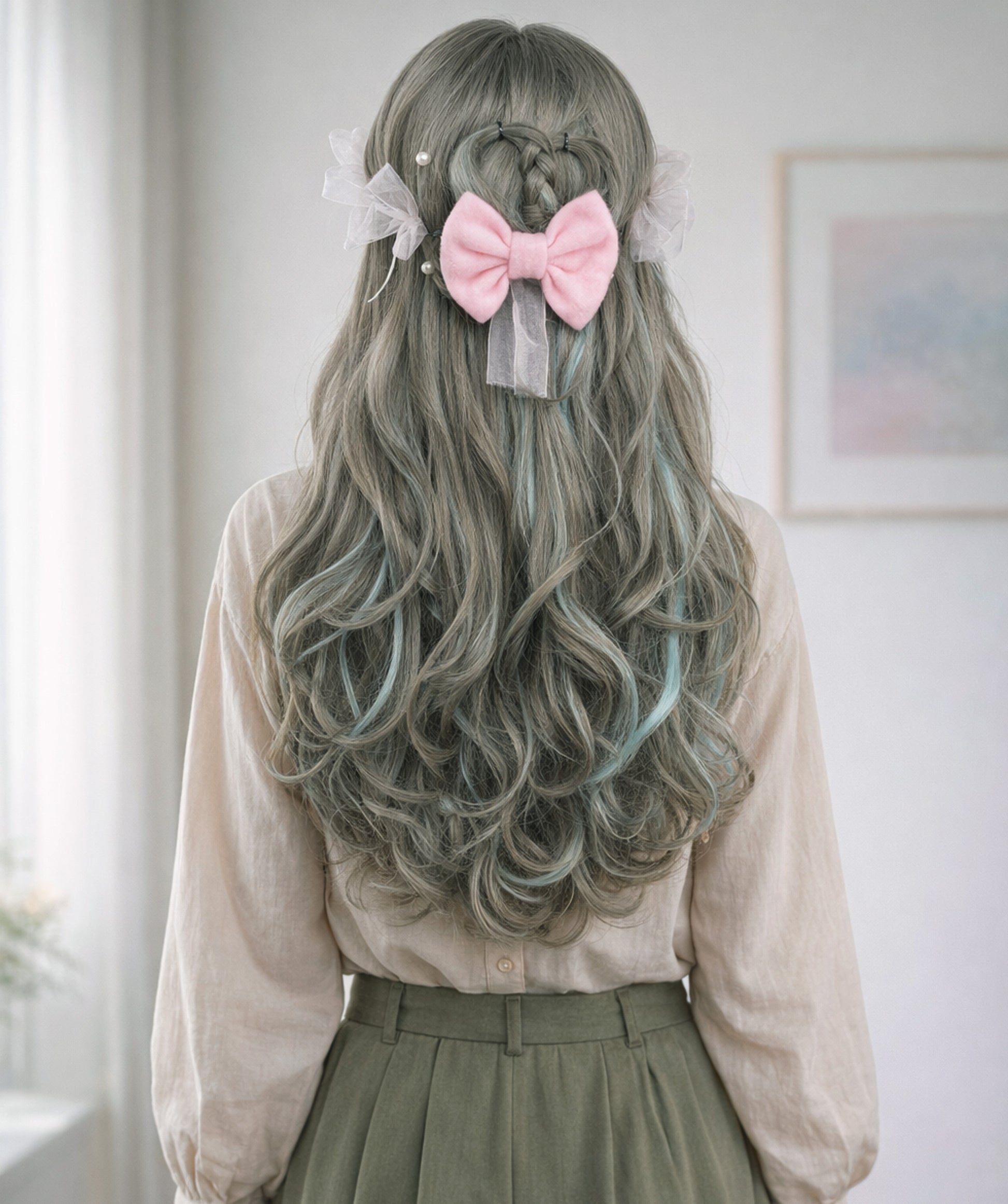エレガントなグレーとブルーの26インチウェーブウィッグで、ワンランク上のスタイルを演出しましょう。ロリータファッションや原宿ファッションを鮮やかに彩ります。