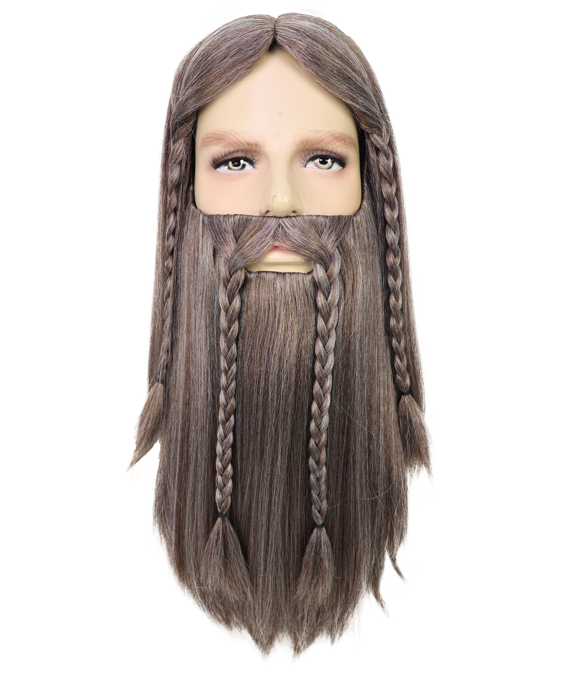 • ロング編み込みウィッグと、それにマッチした長いあごひげと口ひげ