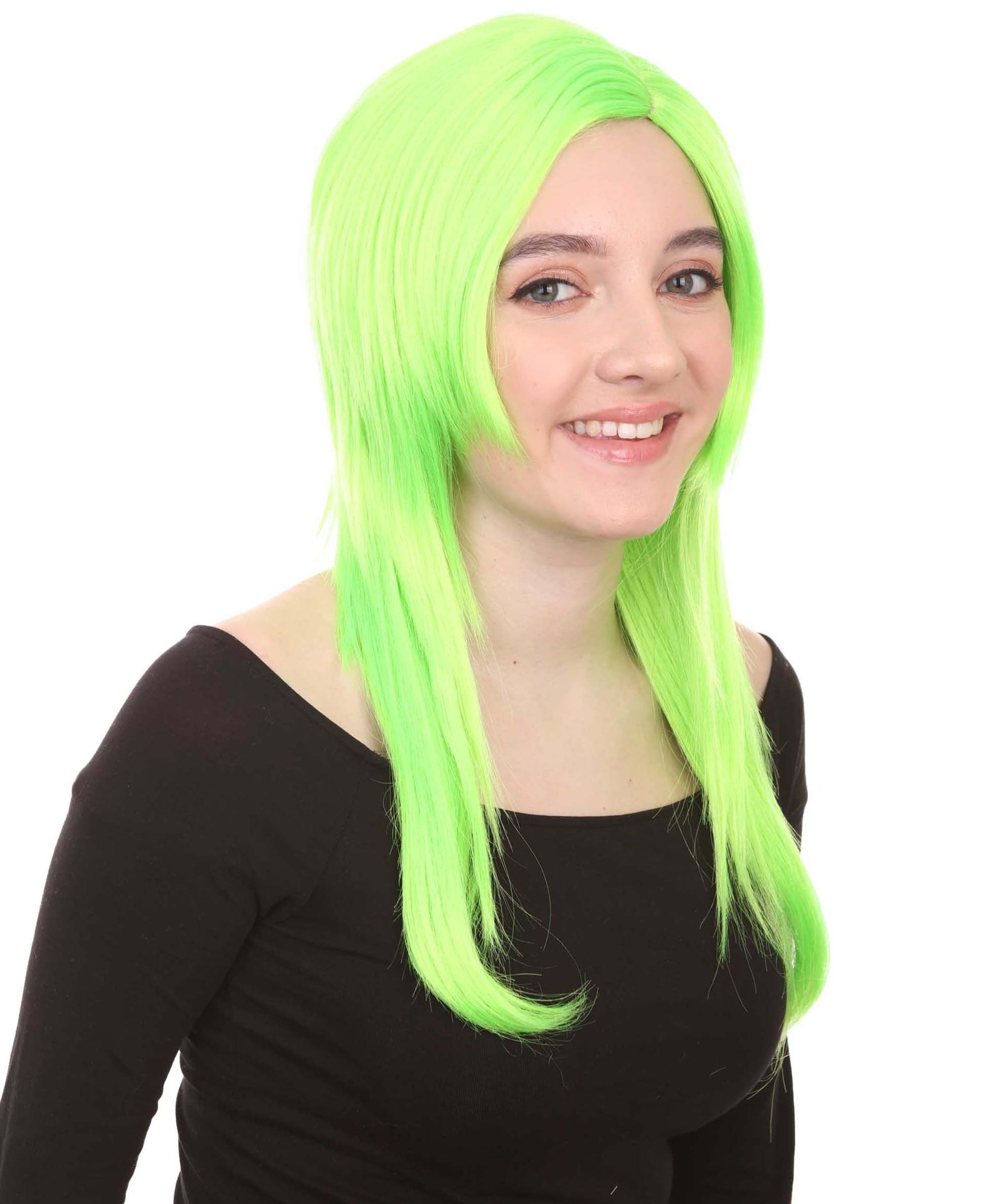 Wigs2you ハロウィンパーティープレミアム H-966 3レイヤーのパーティーガールウィッグ ネオングリーン色