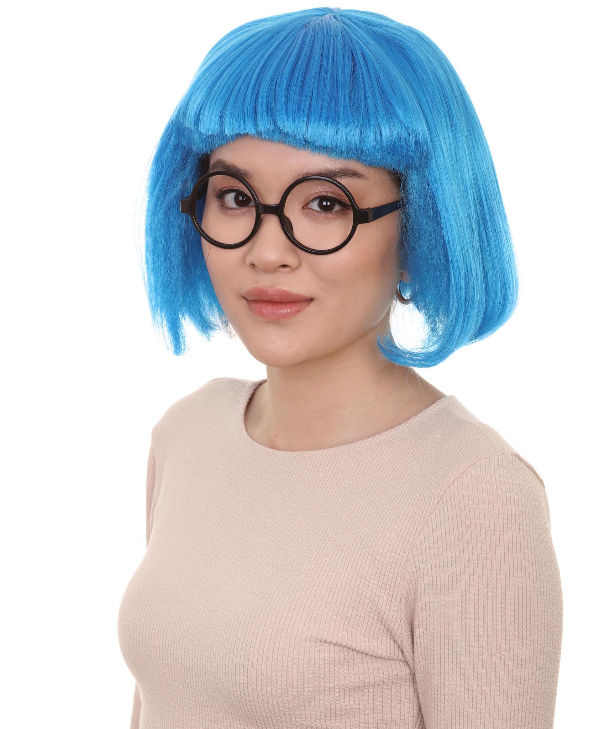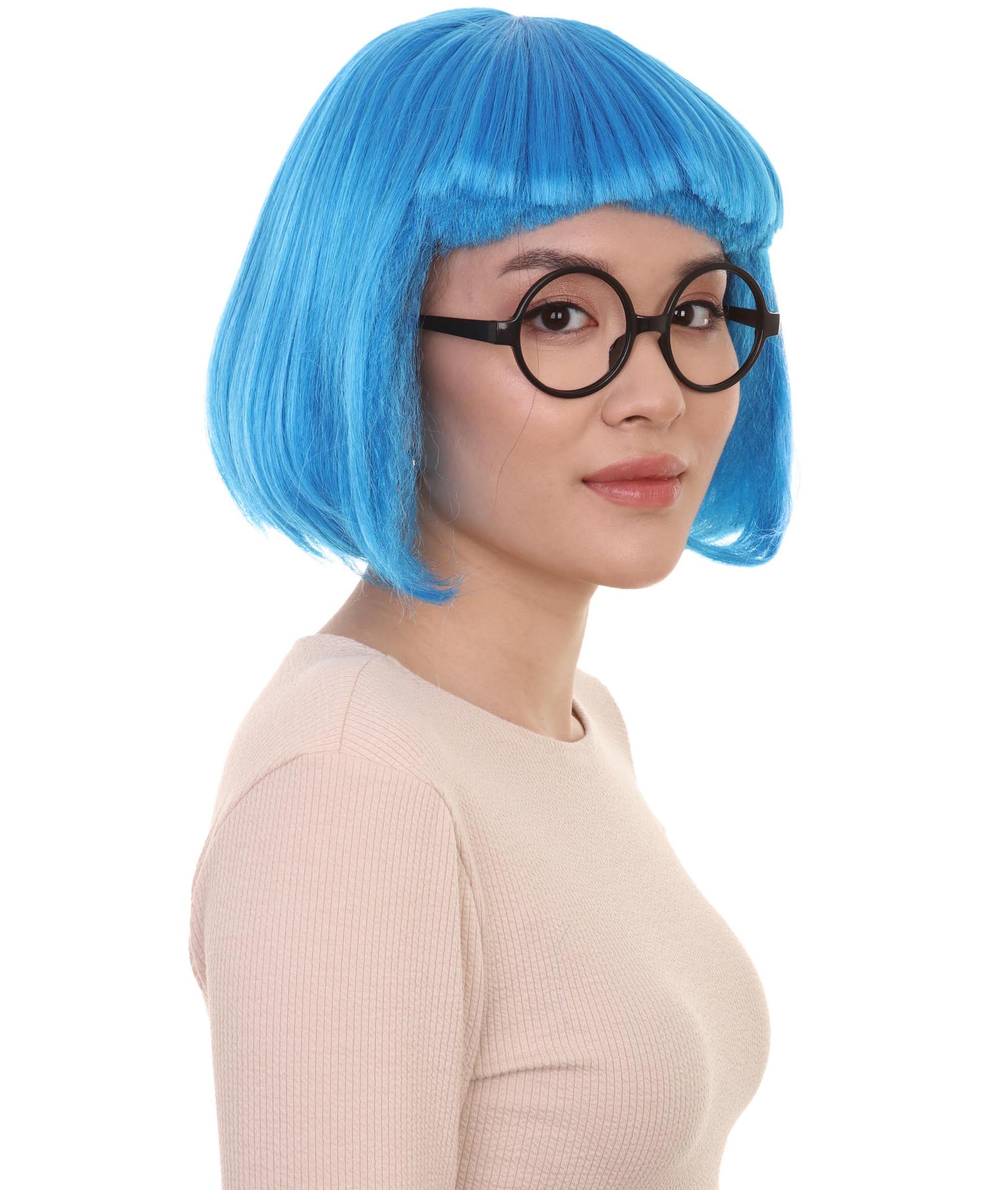 インクレディブル2 - ファッションデザイナー エドナ・モード ブルーウィッグ グラスセット付き H-4613 ハロウィンウィッグ 通気性の良いキャップレスキャップ