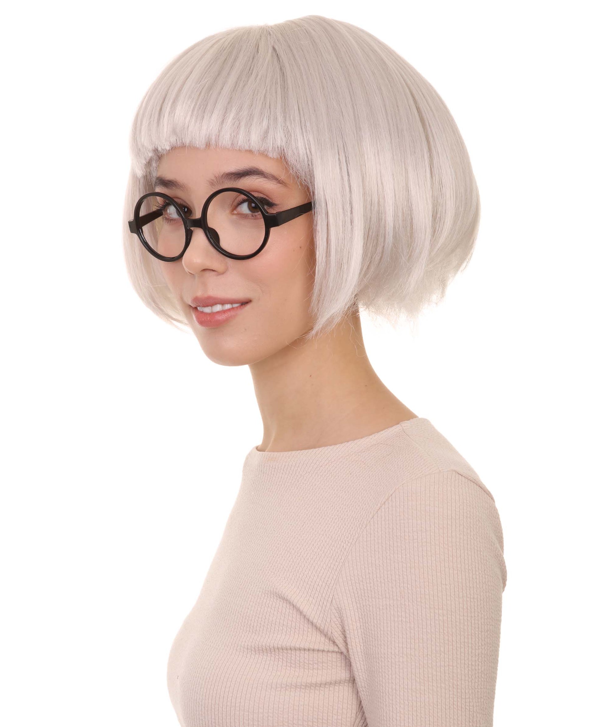 インクレディブル2 - ファッションデザイナー エドナ・モード グレーウィッグ グラスセット付き H-4606 ハロウィンウィッグ 通気性の良いキャップレスキャップ