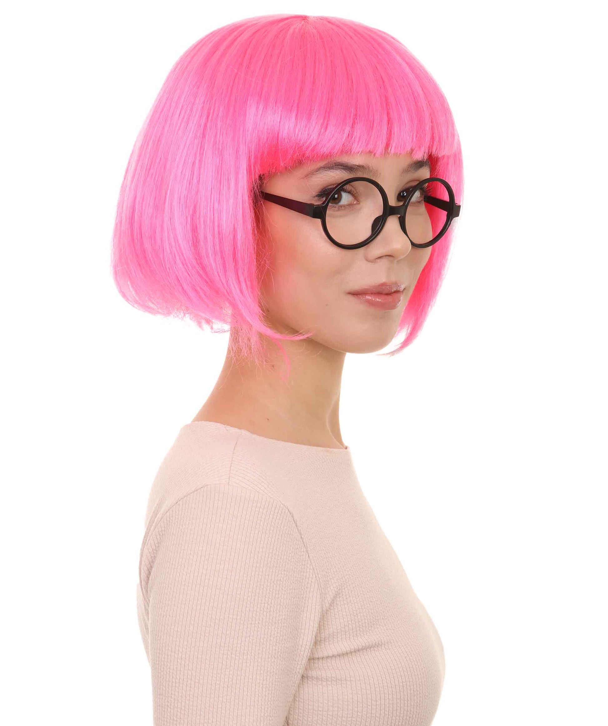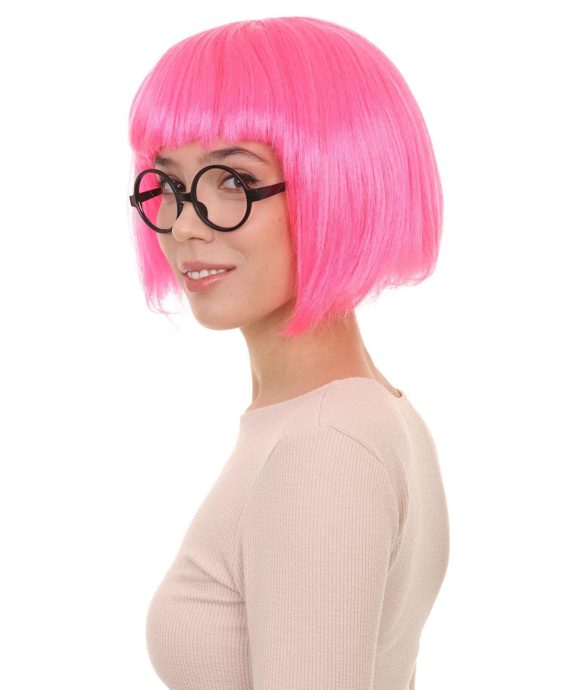 インクレディブル2 - ファッションデザイナー エドナ・モード ピンクウィッグ グラスセット付き H-4615 ハロウィンウィッグ 通気性の良いキャップレスキャップ