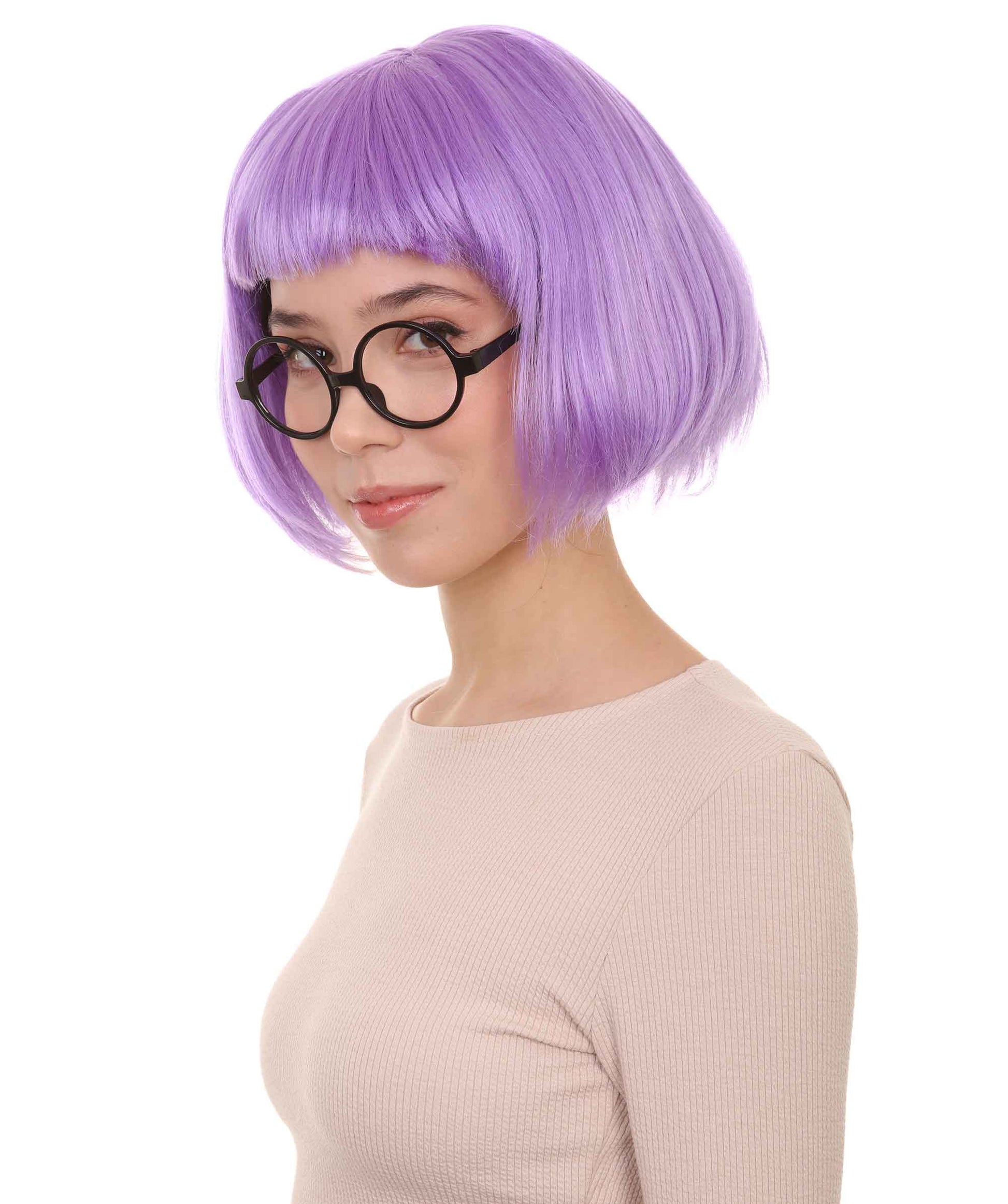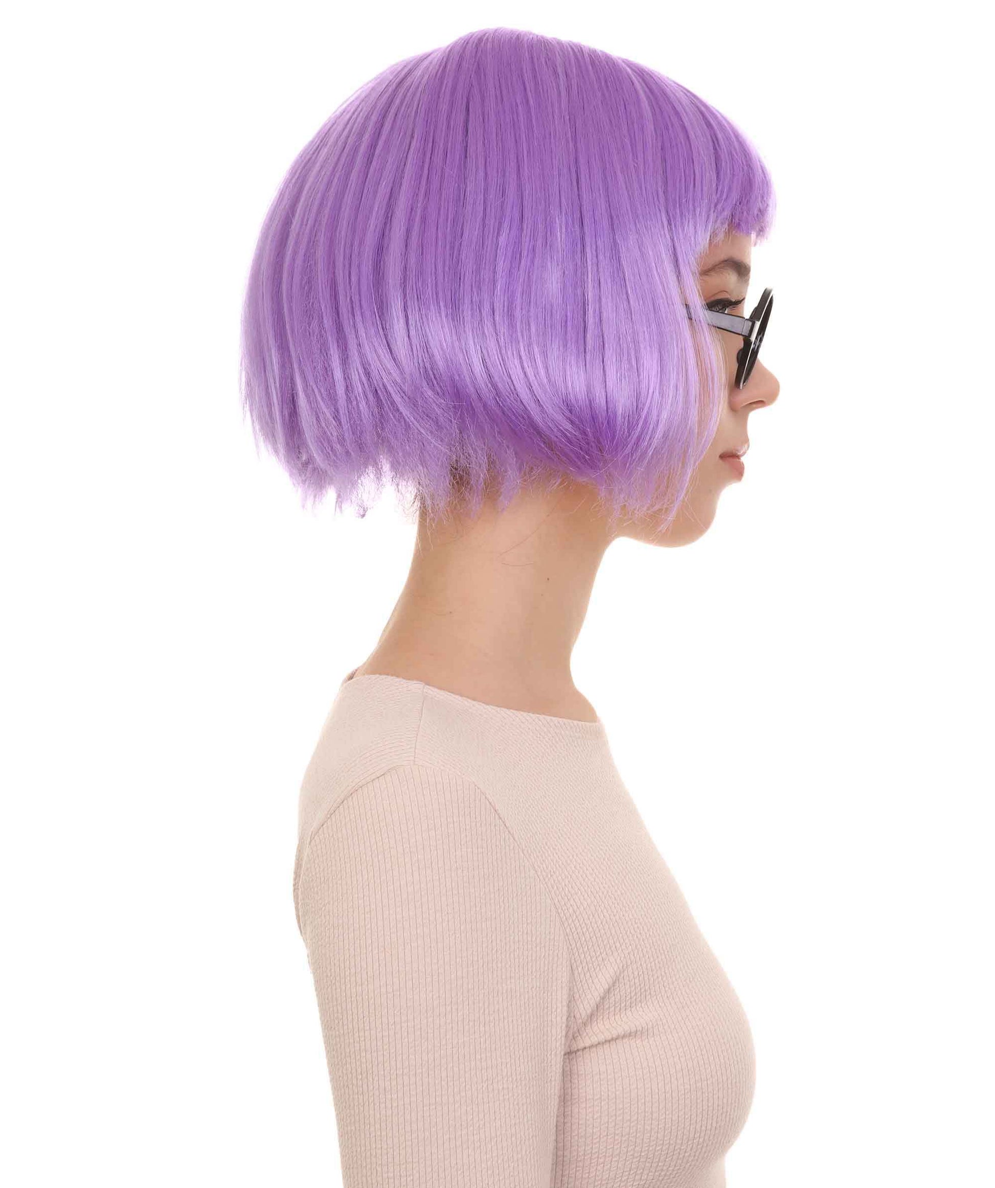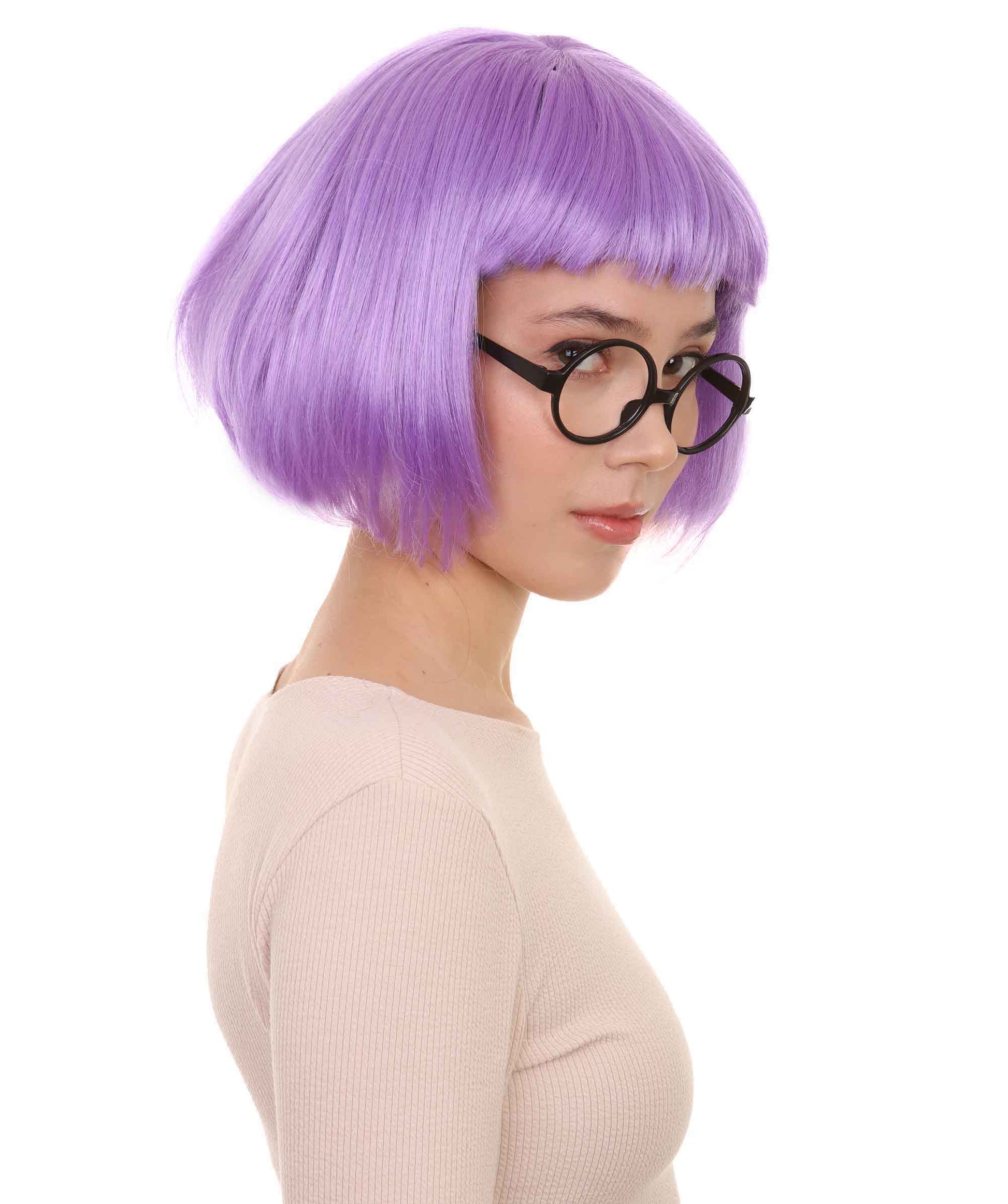 インクレディブル2 - ファッションデザイナー エドナ・モード パープルウィッグ グラスセット付き H-4614 ハロウィンウィッグ 通気性の良いキャップレスキャップ