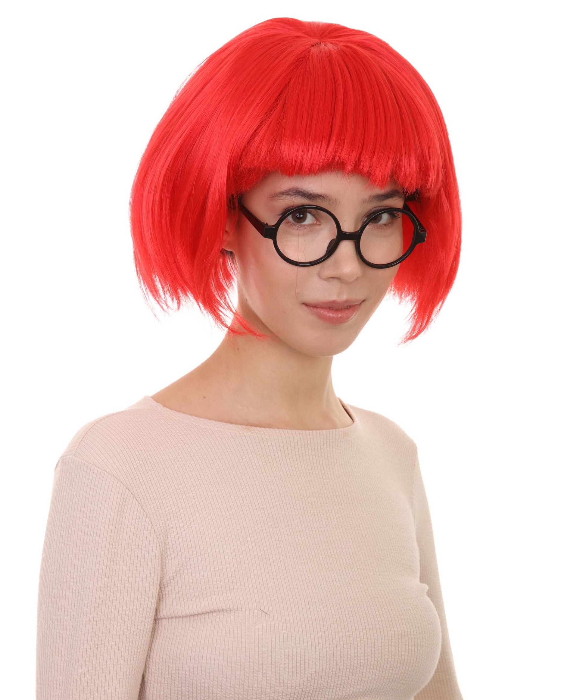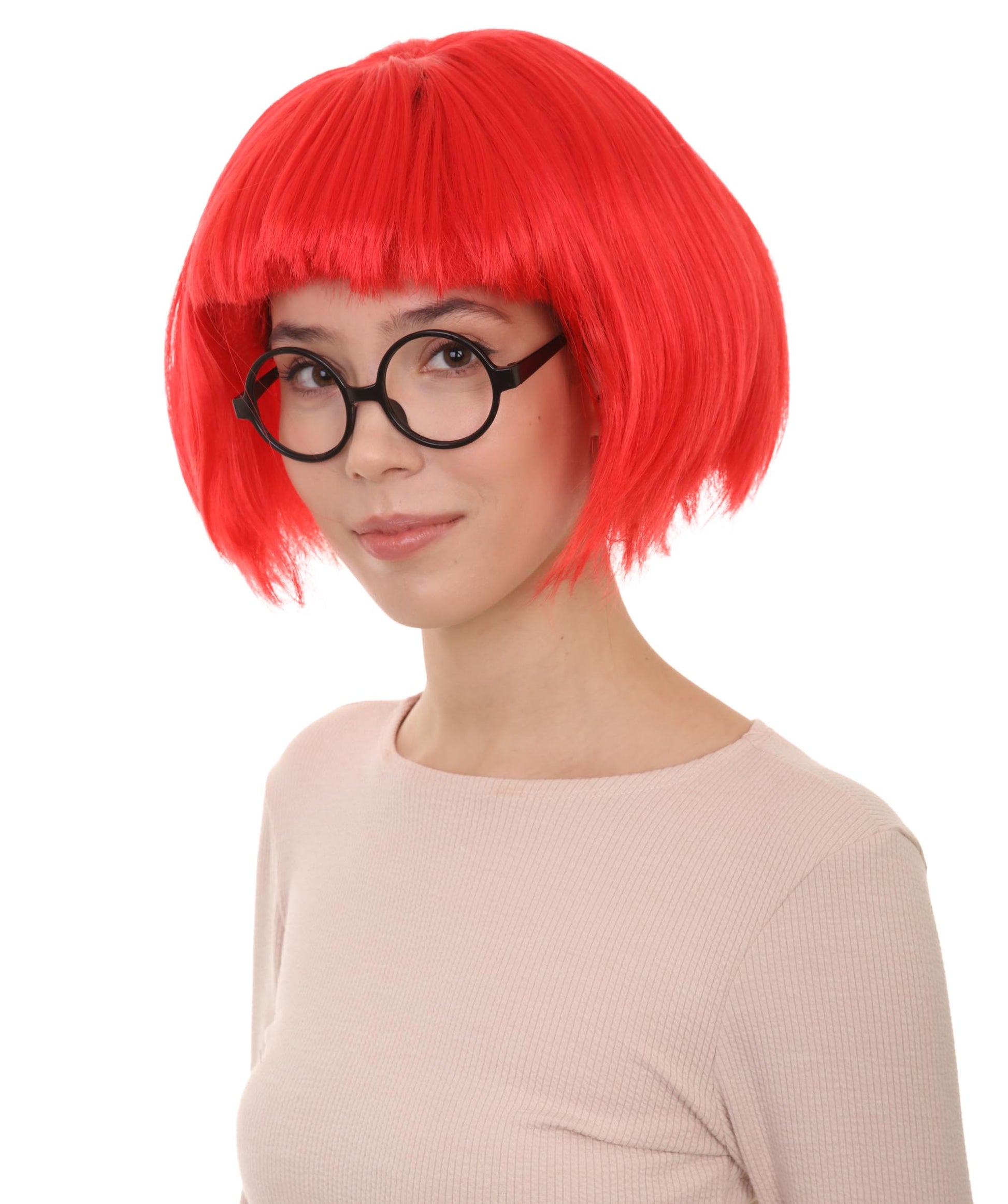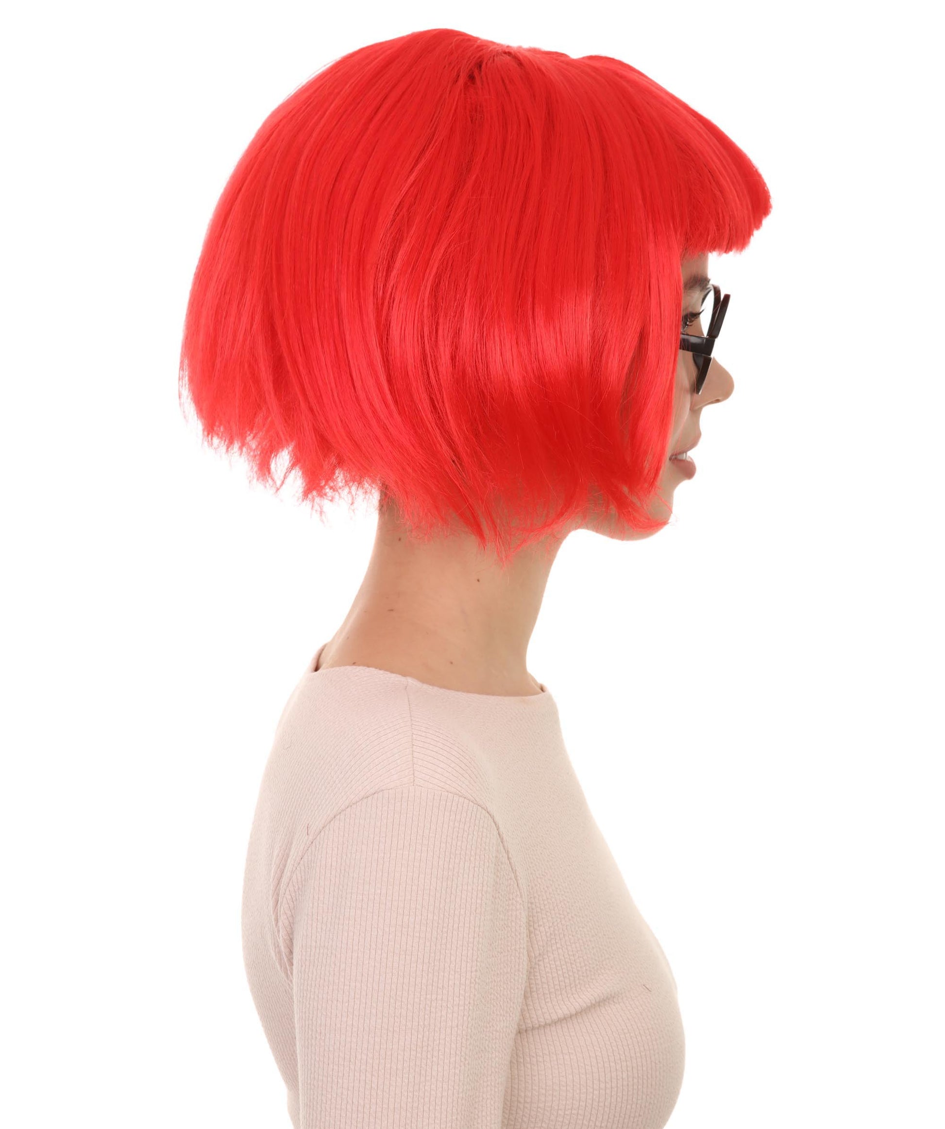 インクレディブル2 - ファッションデザイナー エドナ・モード レッドウィッグ グラスセット付き H-4608 ハロウィンウィッグ 通気性の良いキャップレスキャップ