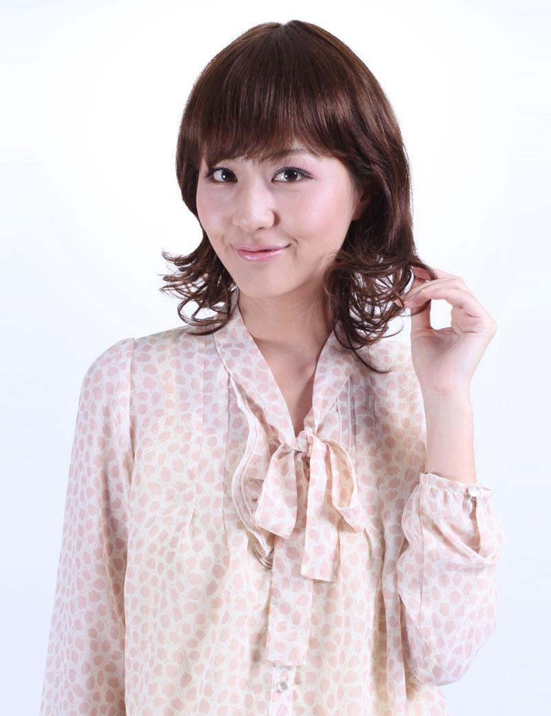 女性用 前髪ありミディアムウィッグ 人毛使用 ふんわりボリュームタイプ ウィッグネット付き