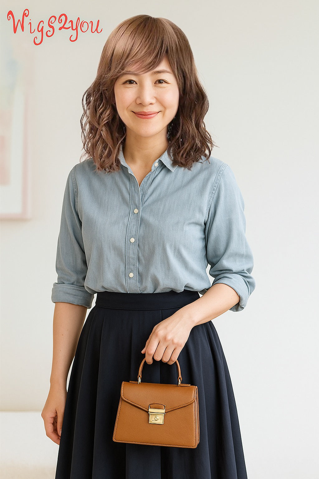 自然で程よいボリュームのなみなみカールミディアムウィッグ | どんなスタイルにあわせてもオシャレ度アップ | ウィッグネット付き W-1023