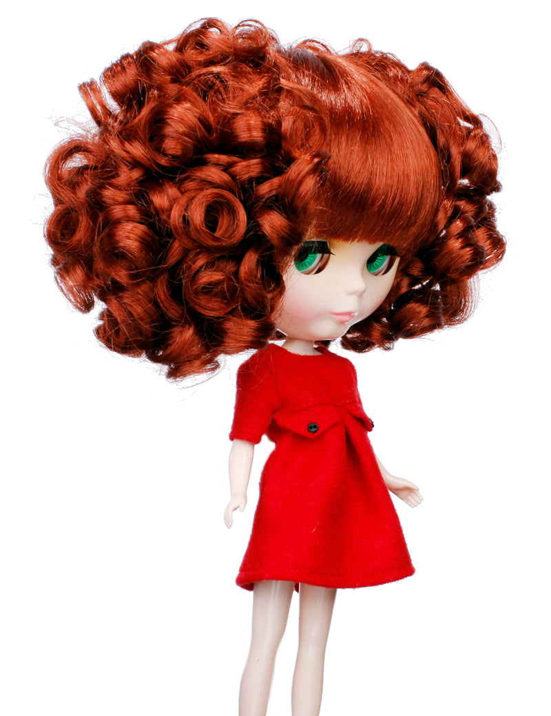 あらゆるスタイルにぴったりの可愛らしいドールウィッグ B-101 短いサビ赤色のナチュラルカール、サイドにカールあり