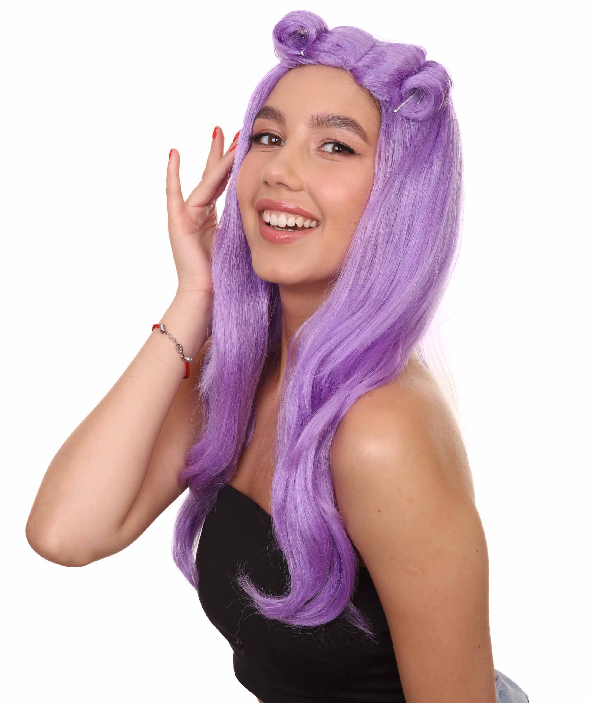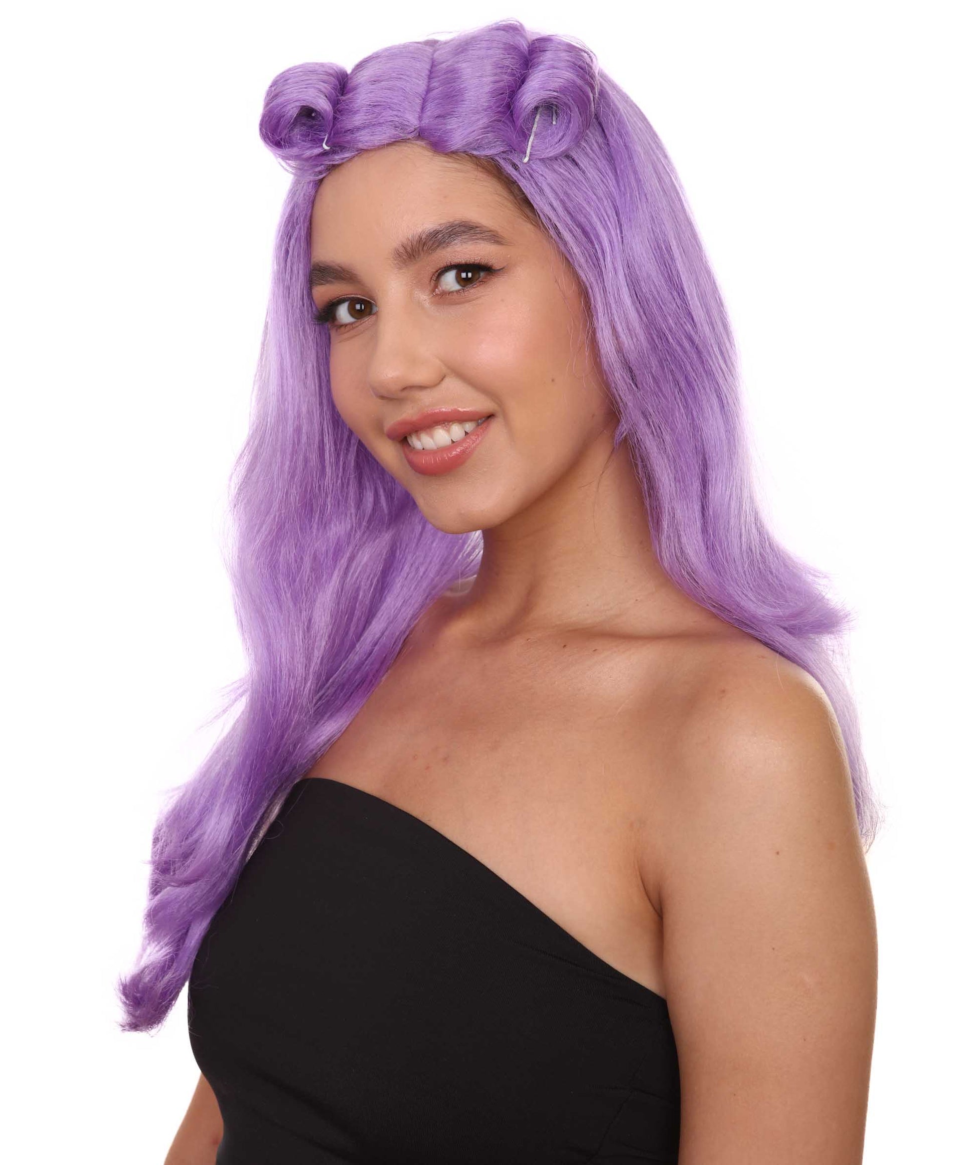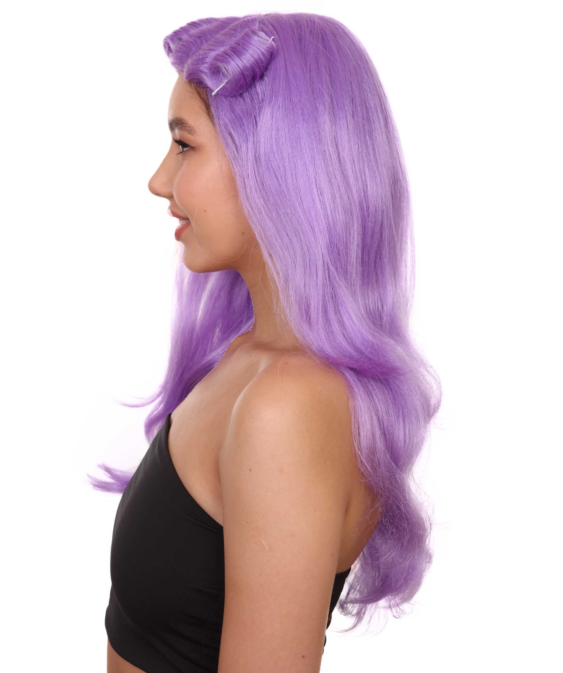 大人の女性用 H-1718 80年代ビューティーガール ライラックカールウィッグ プレミアム通気性キャップレスキャップ