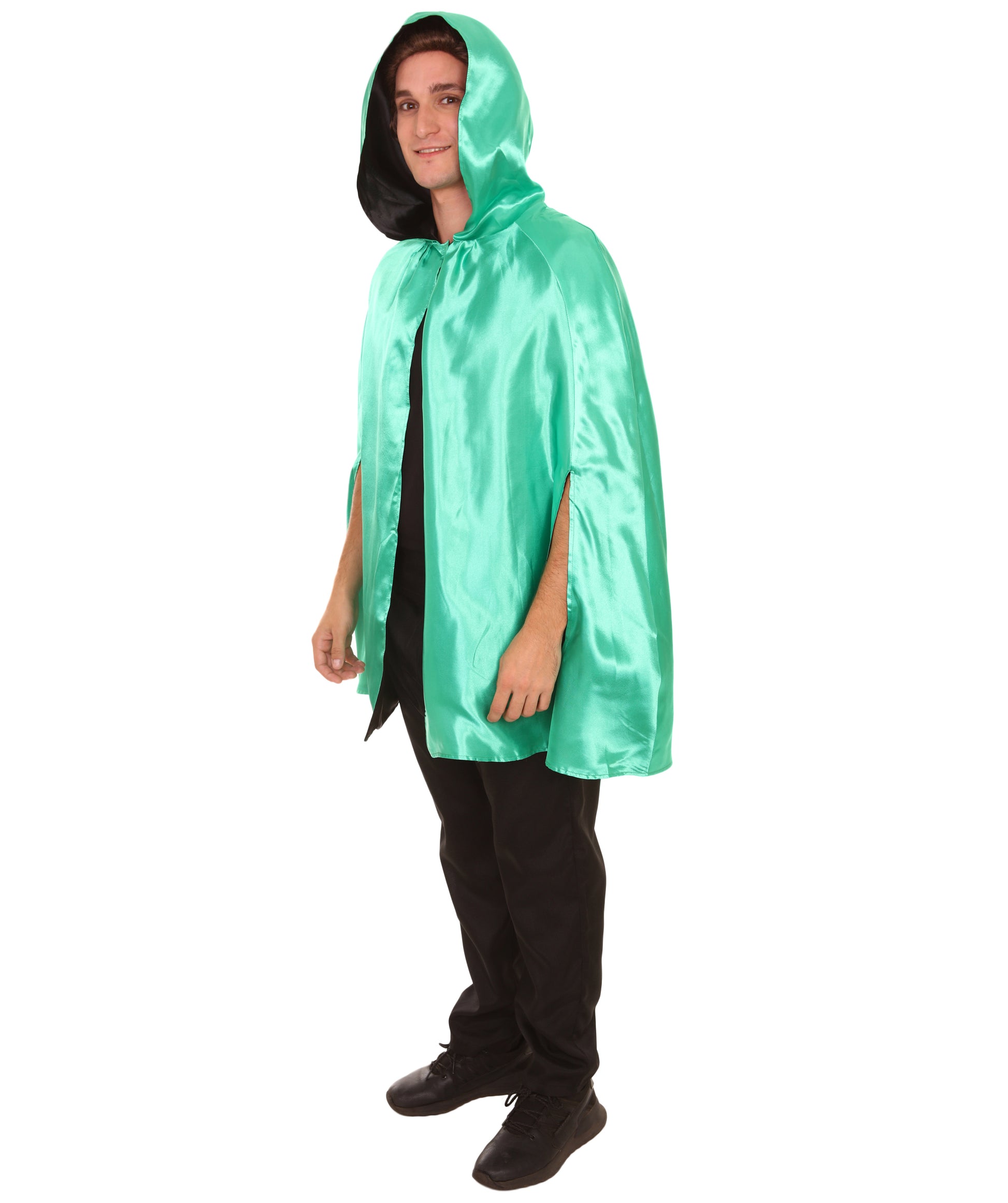 大人用メンズ JCO-218_3 リバーシブルフード付きショートケープ グリーン&ブラック ハロウィンコスチューム