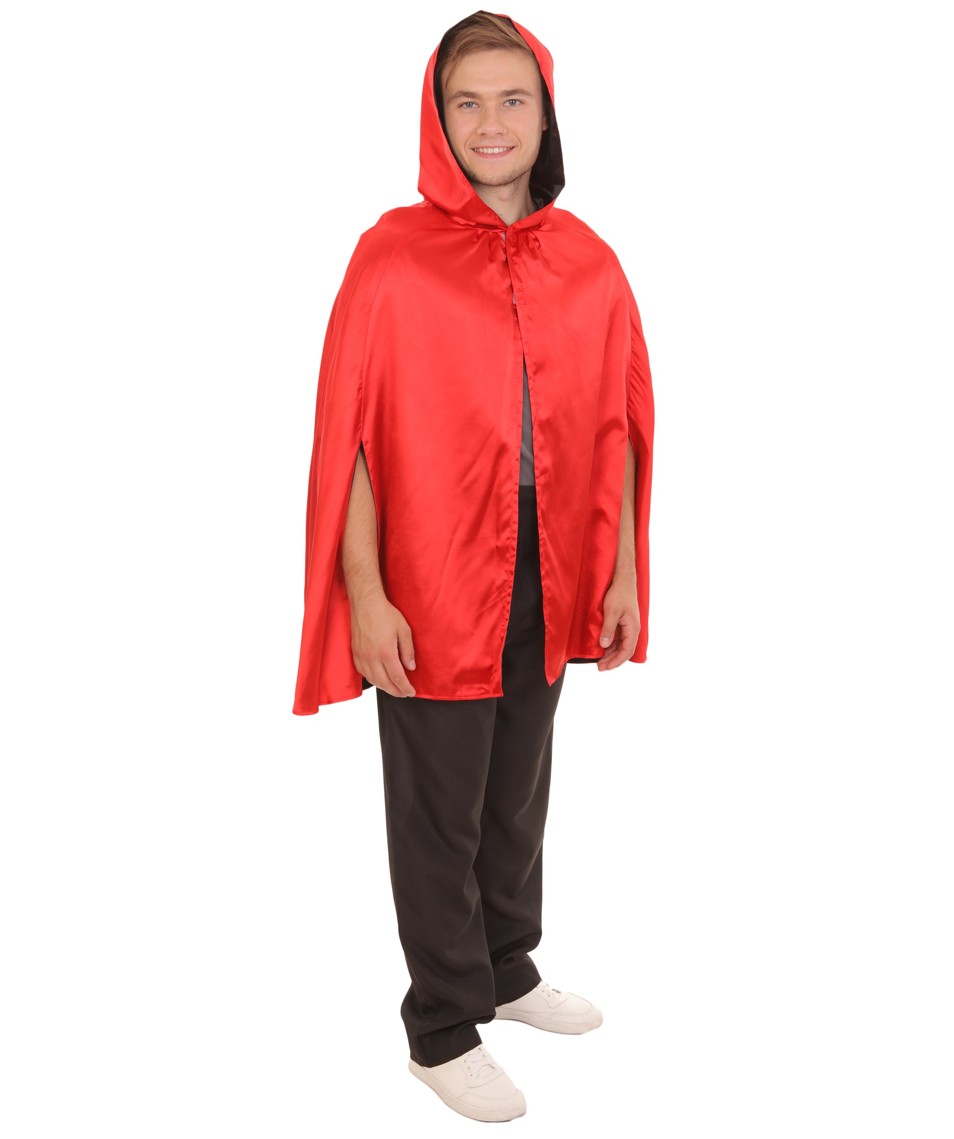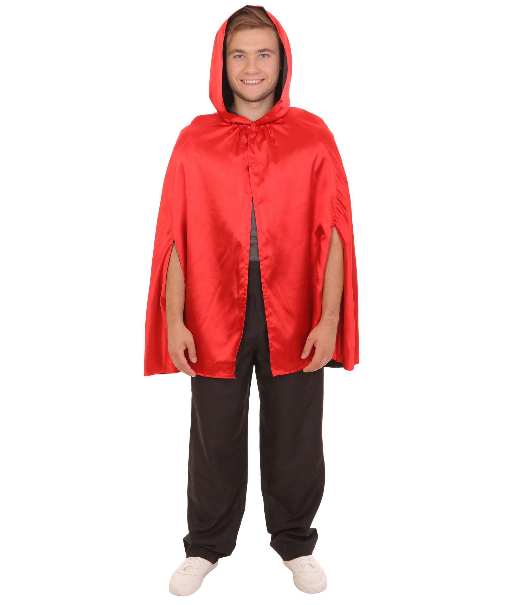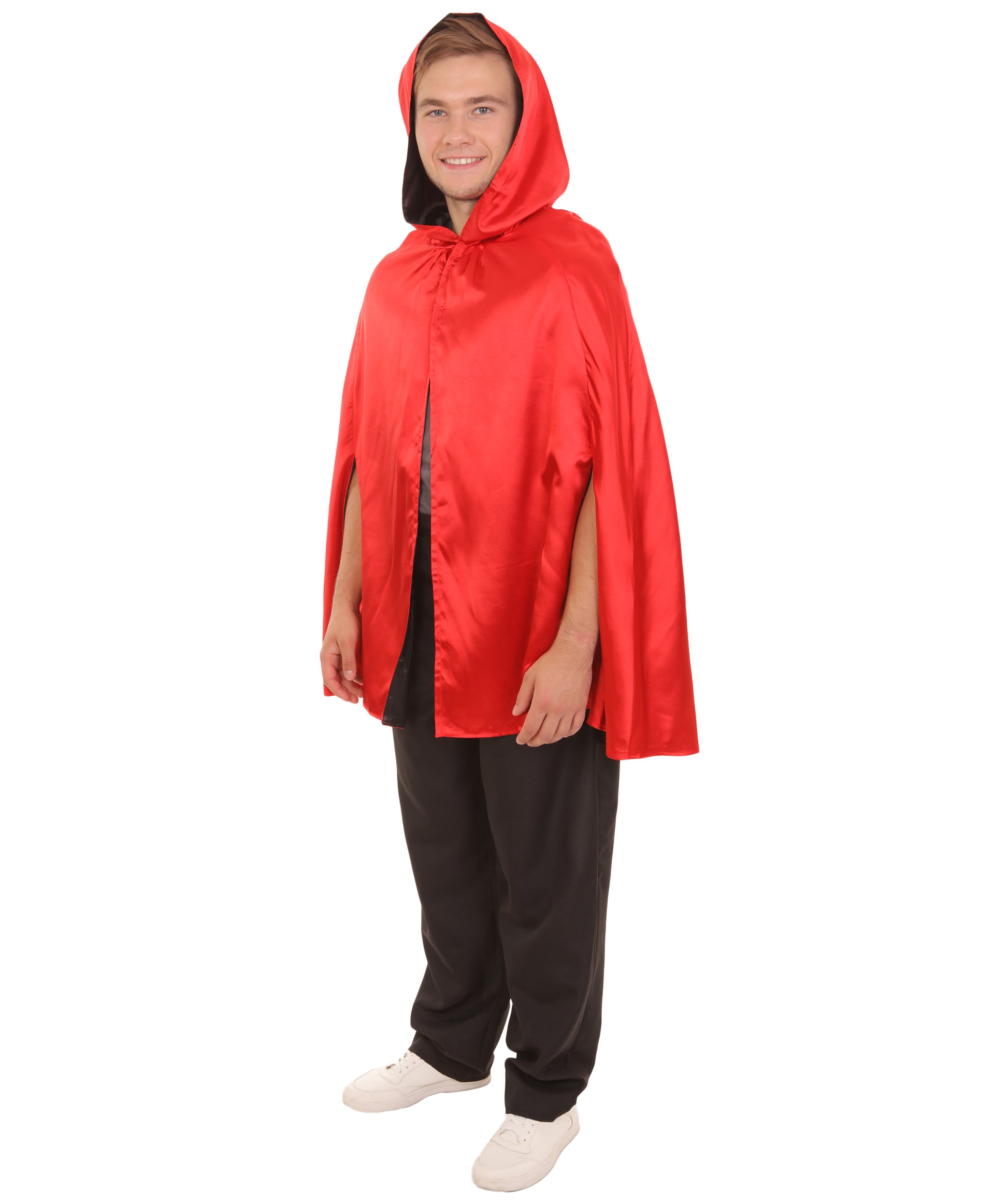 大人用メンズ JCO-218_7 リバーシブルフード付きショートケープ レッド&ブラック ハロウィンコスチューム