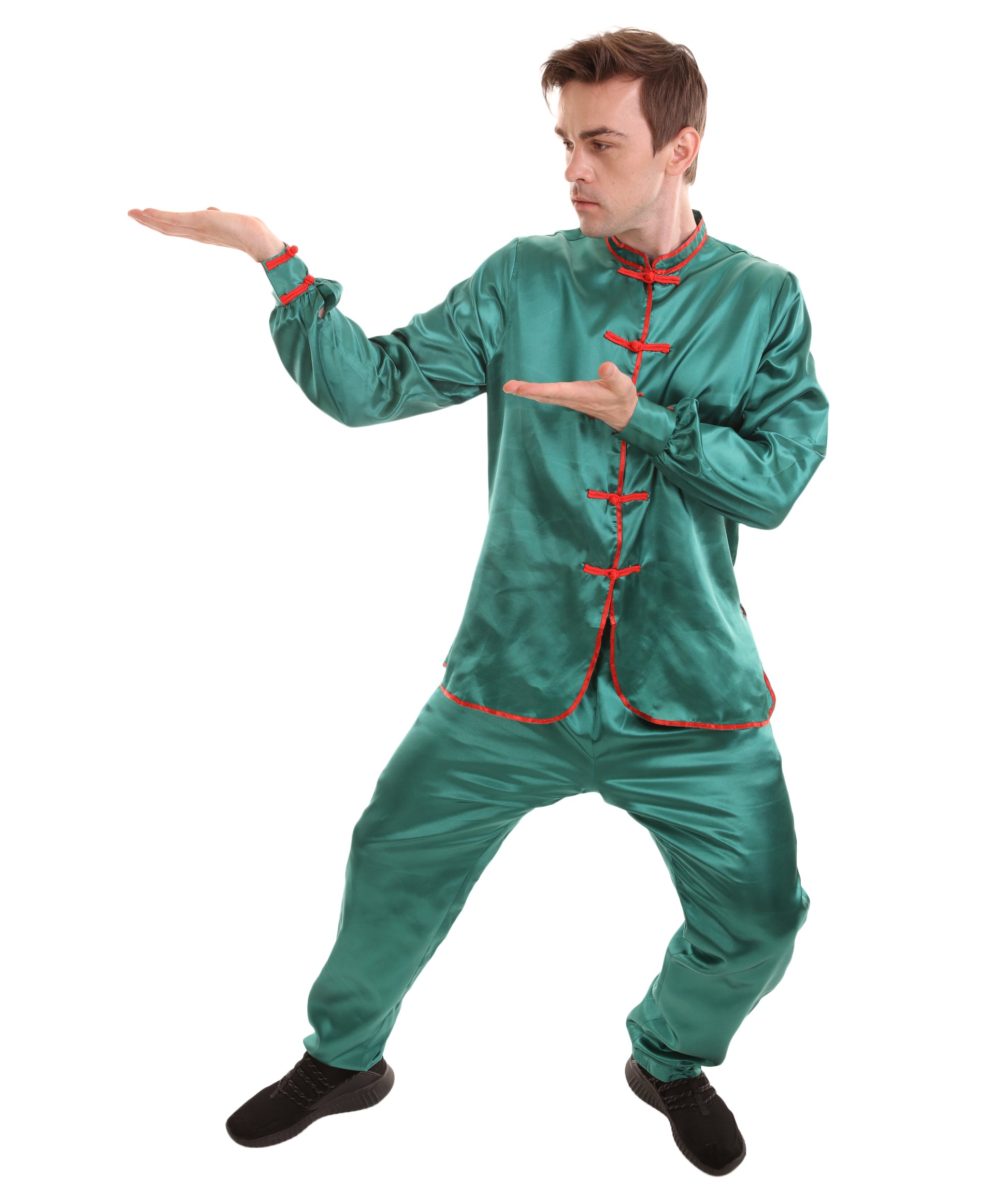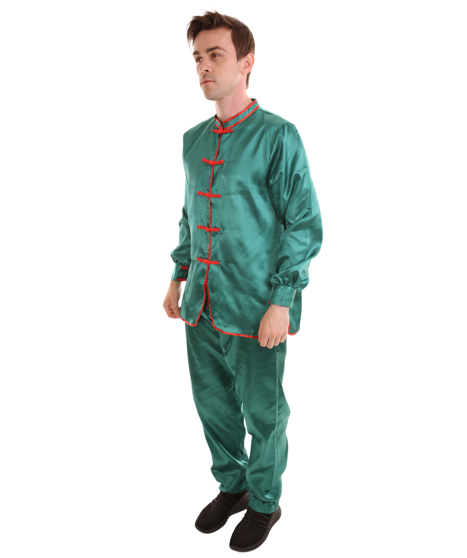 大人用メンズ JCO-269_7 中国の伝統的なカンフー グリーンサテン 制服 コスプレ衣装