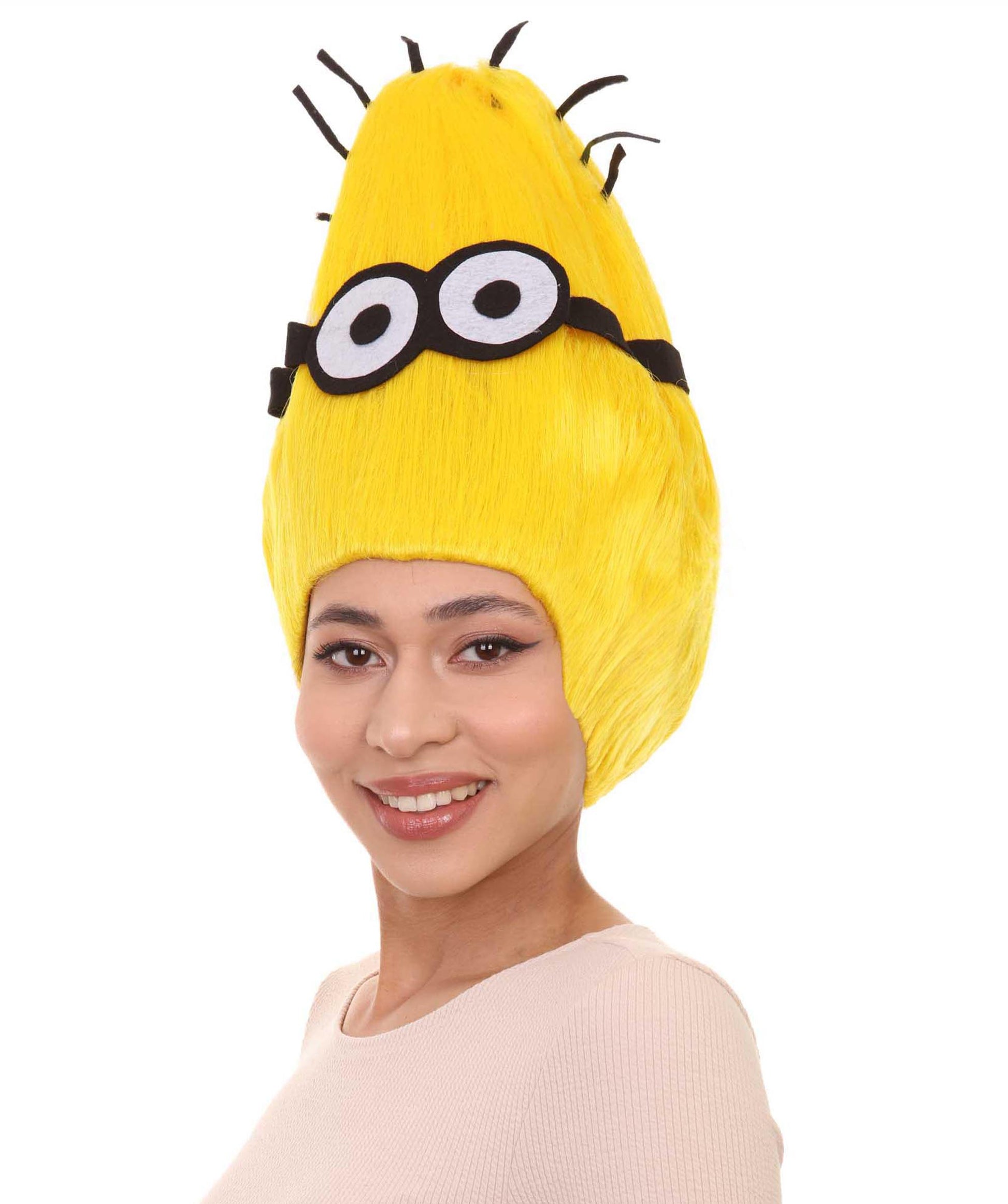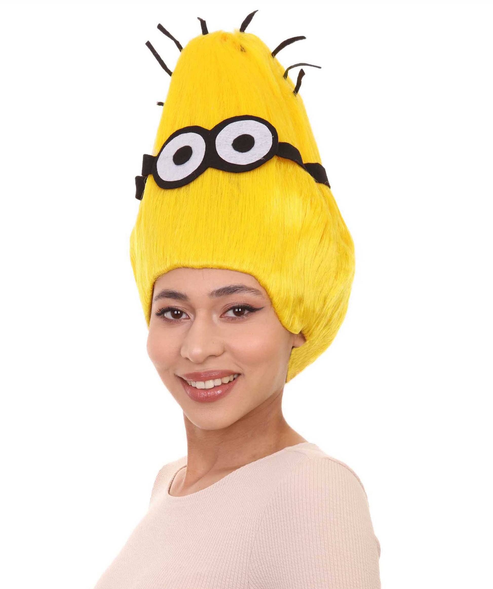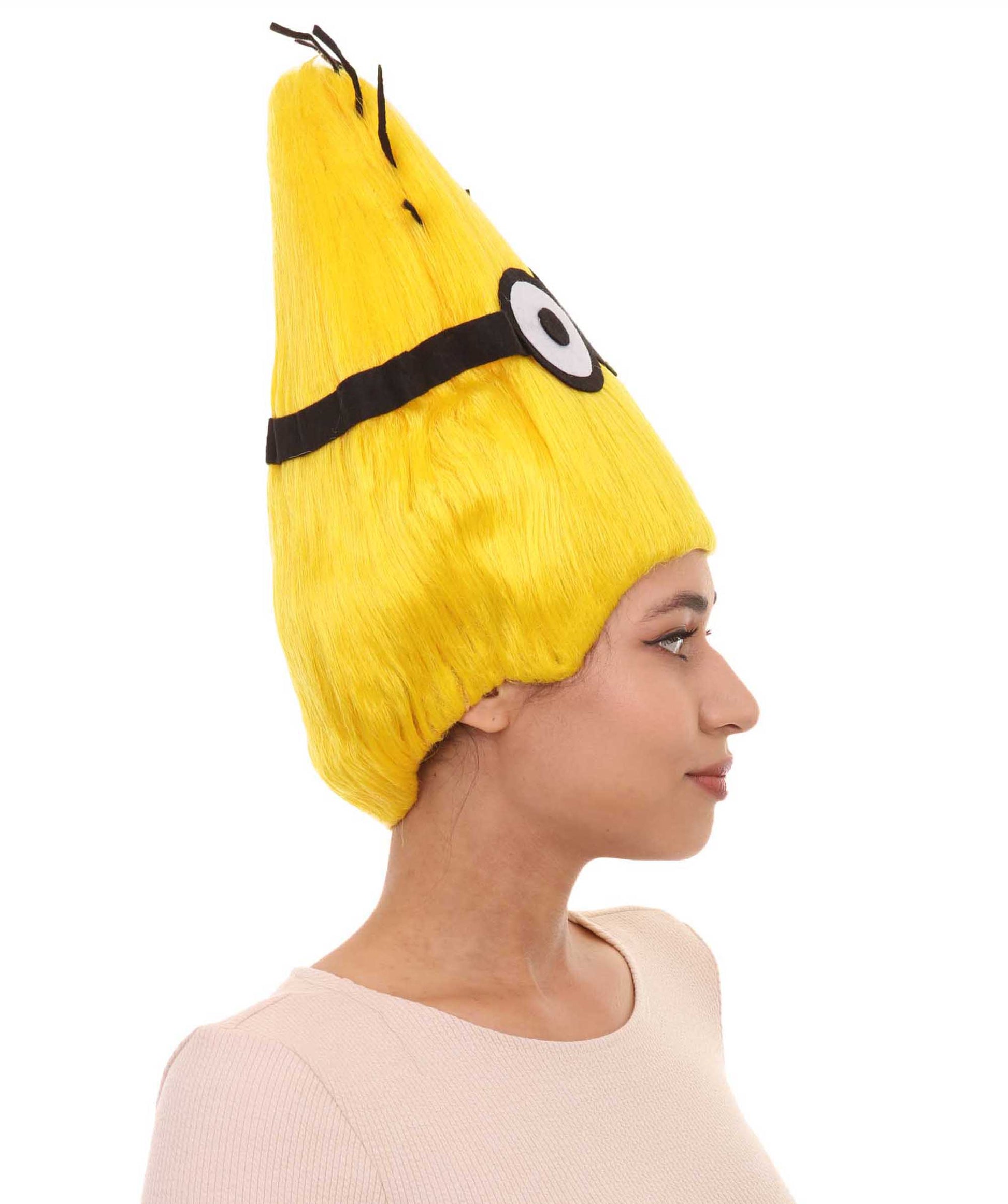 アダルトユニセックスコスプレウィッグ H-3014 ミニオンズイエローウィッグ プレミアム通気性キャップレスキャップ