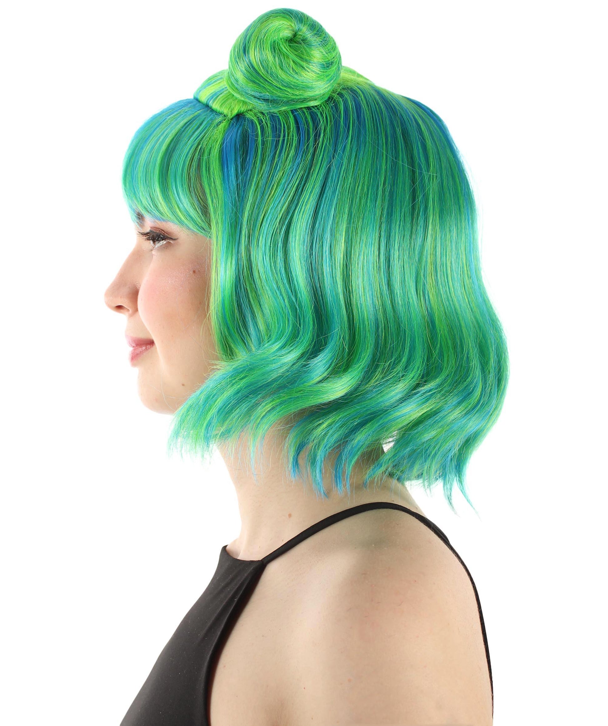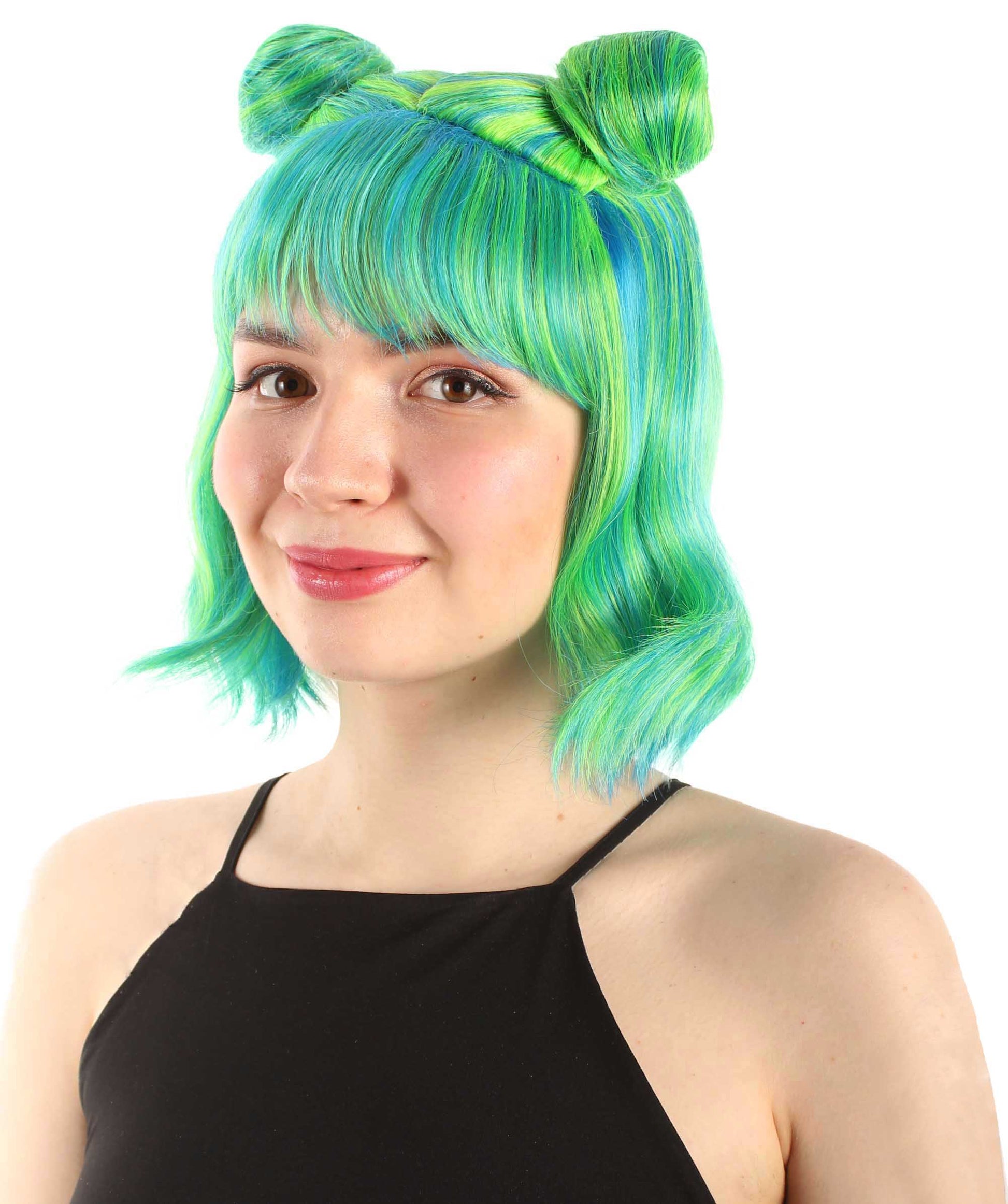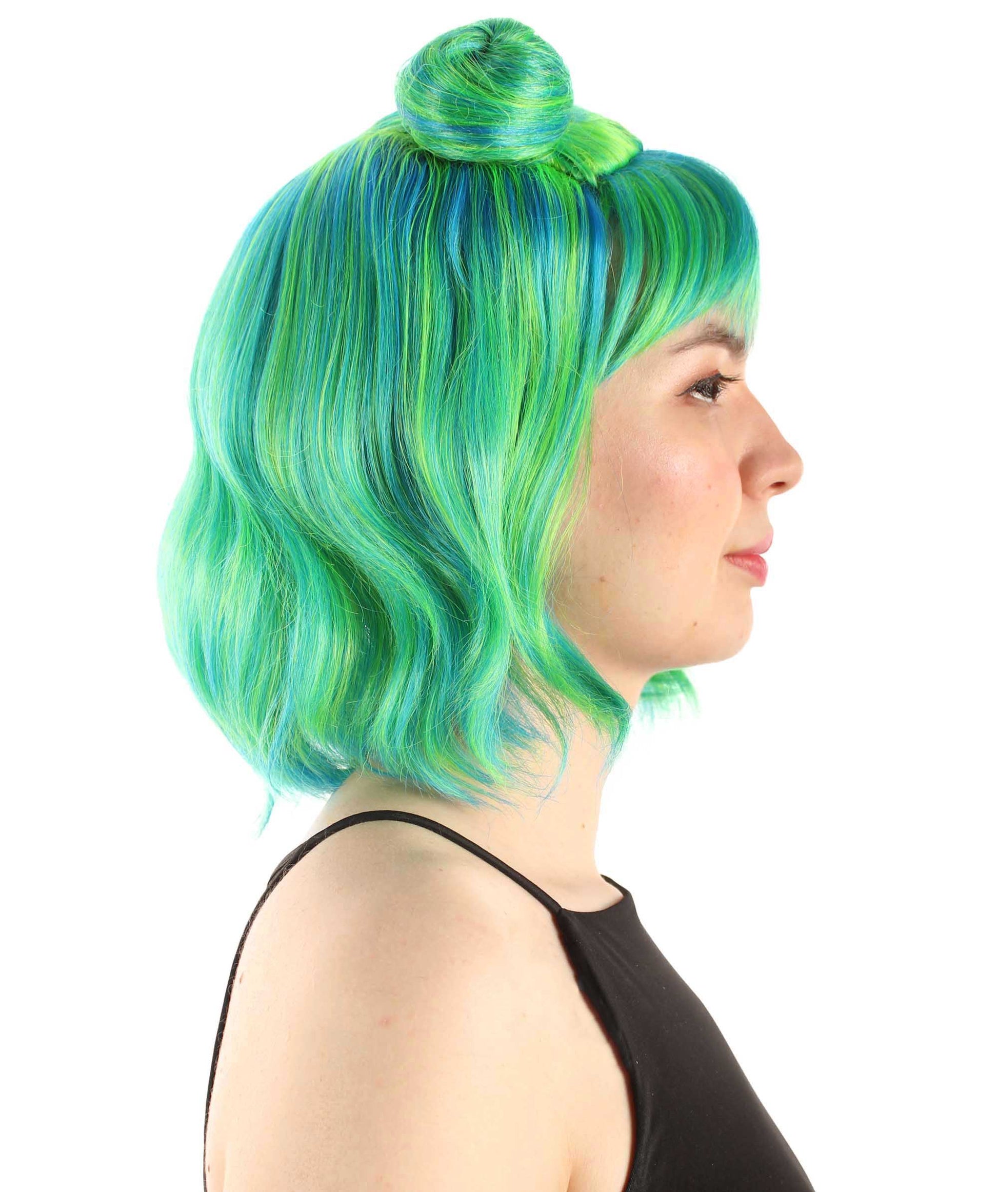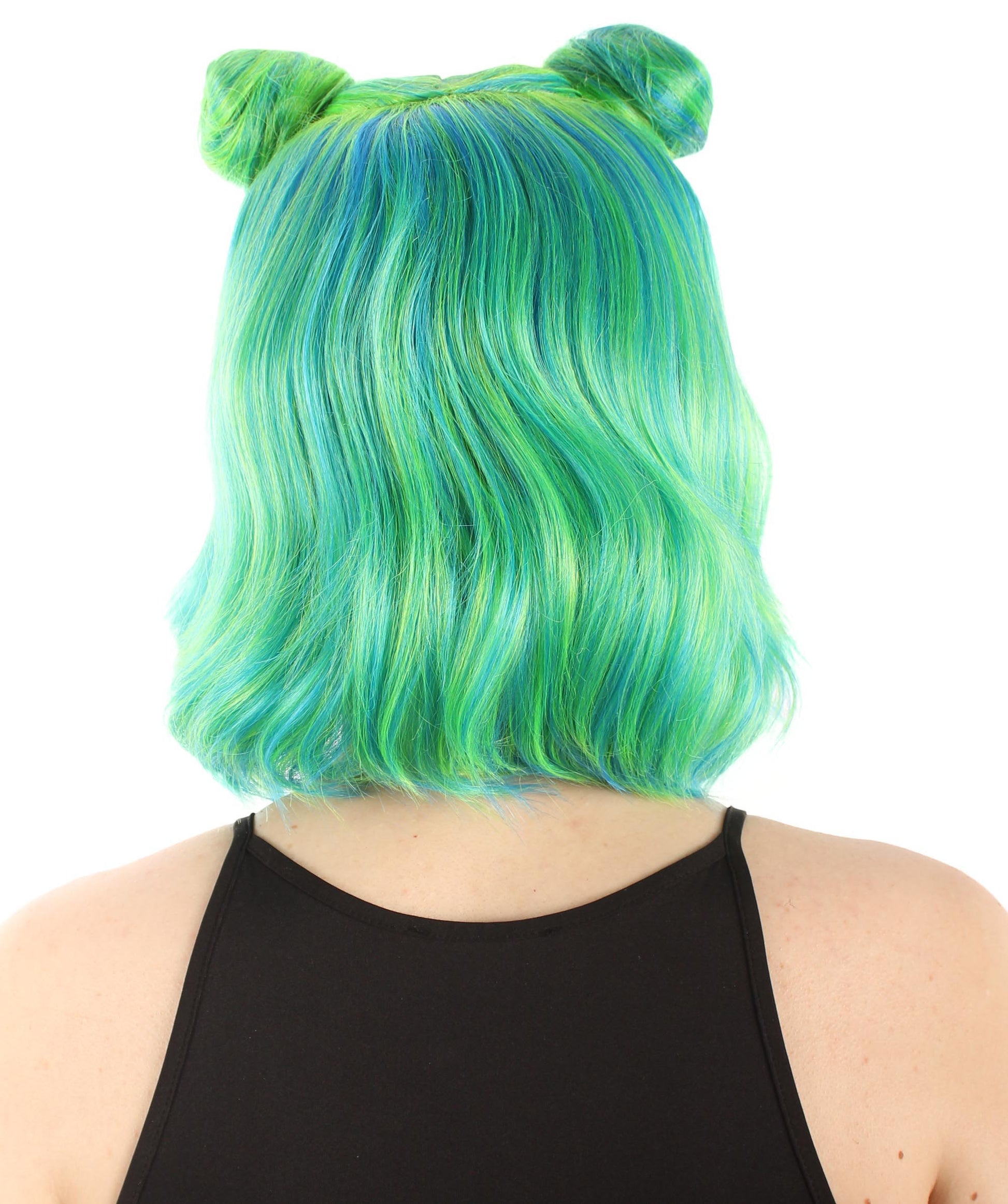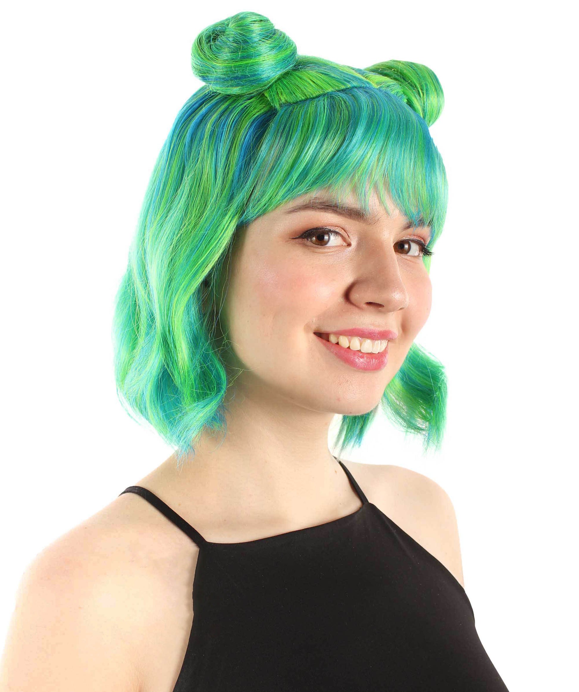 大人の女性用ショートダブルバンスペースギャラクシーウィッグ グリーンオンブレ H-5376_29 女子会とグループコスチューム用ヘア