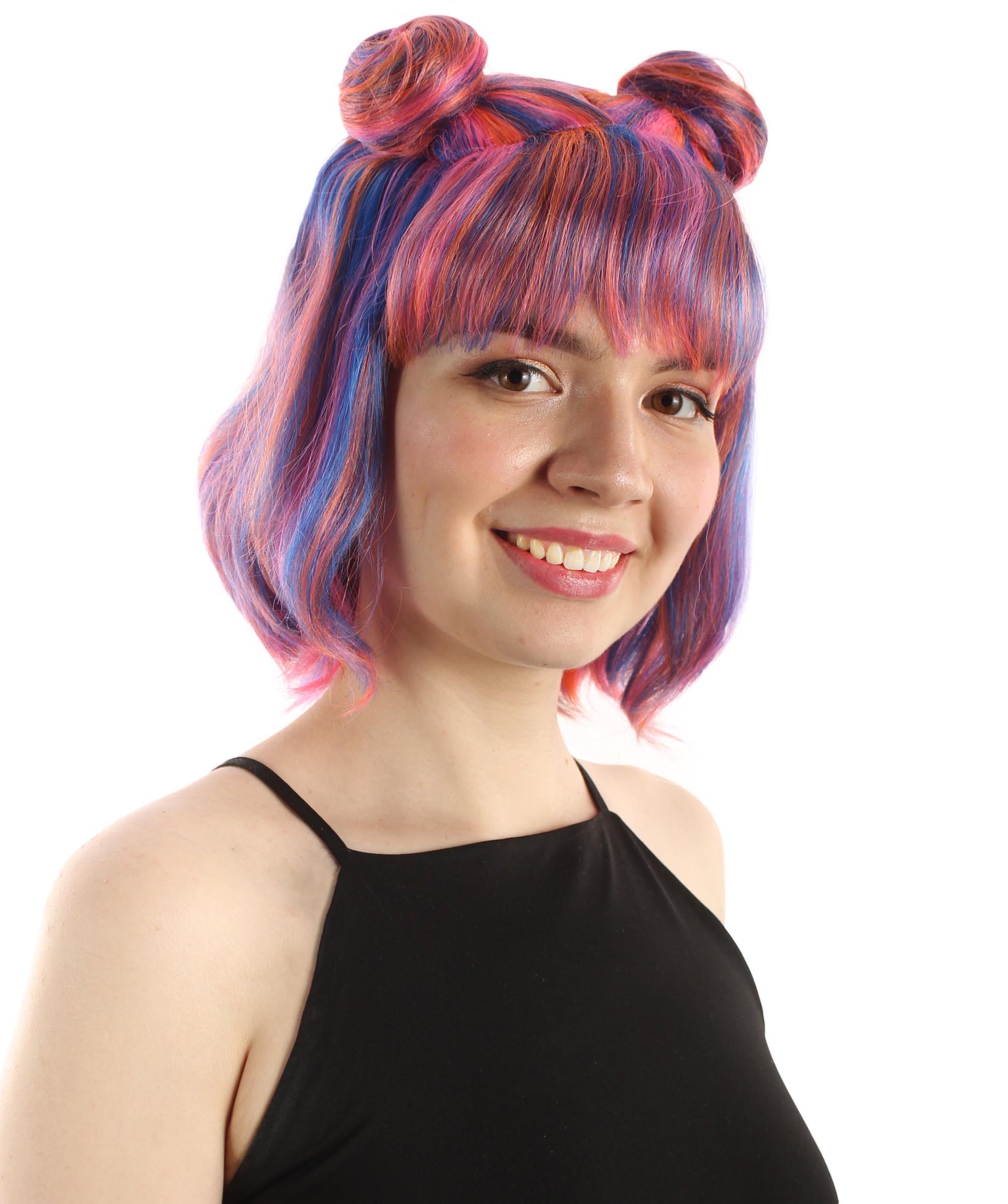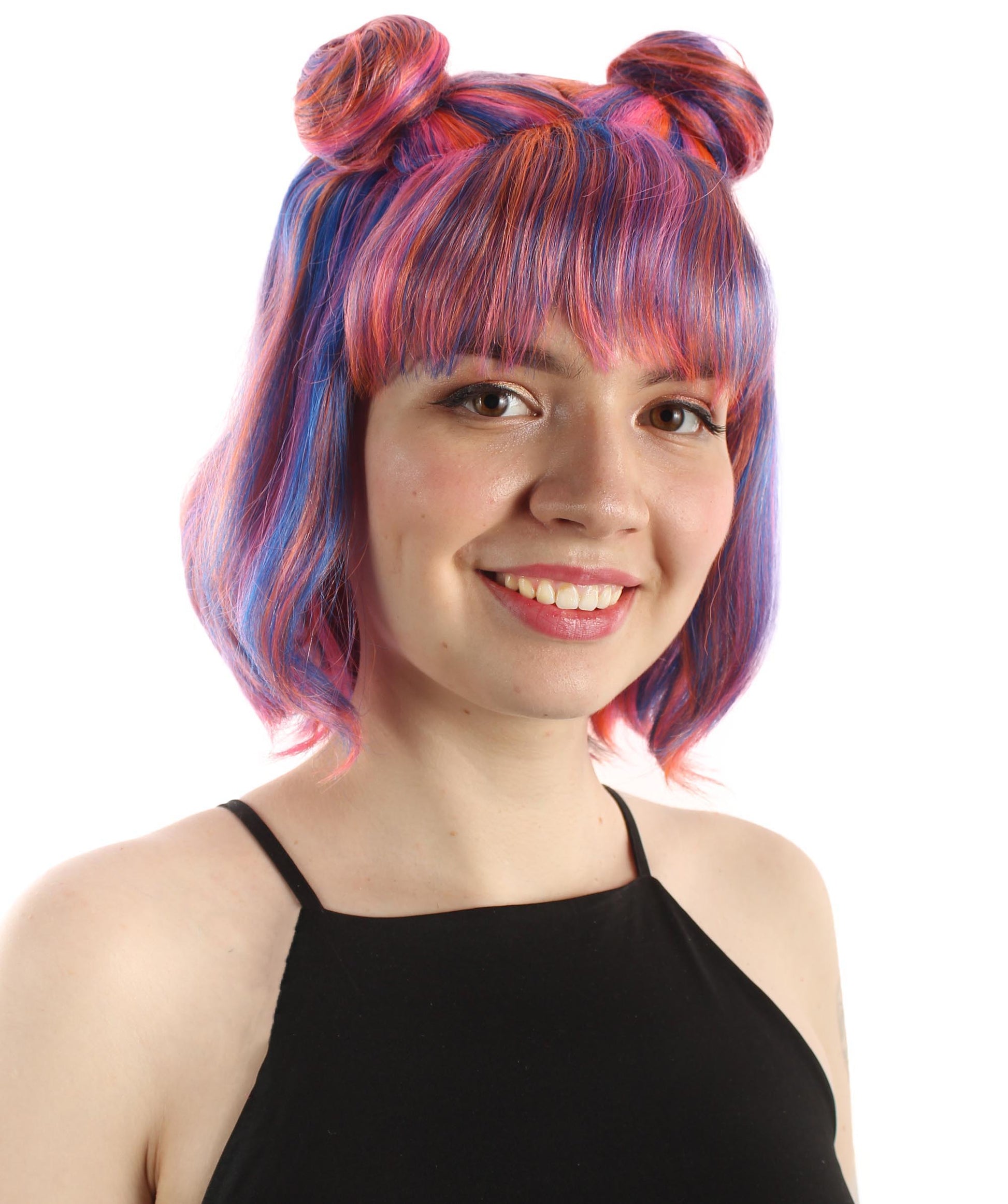 大人の女性用ショートダブルバンスペースギャラクシーウィッグ ピンクオンブレ H-5376_28 女子会とグループコスチューム用ヘア
