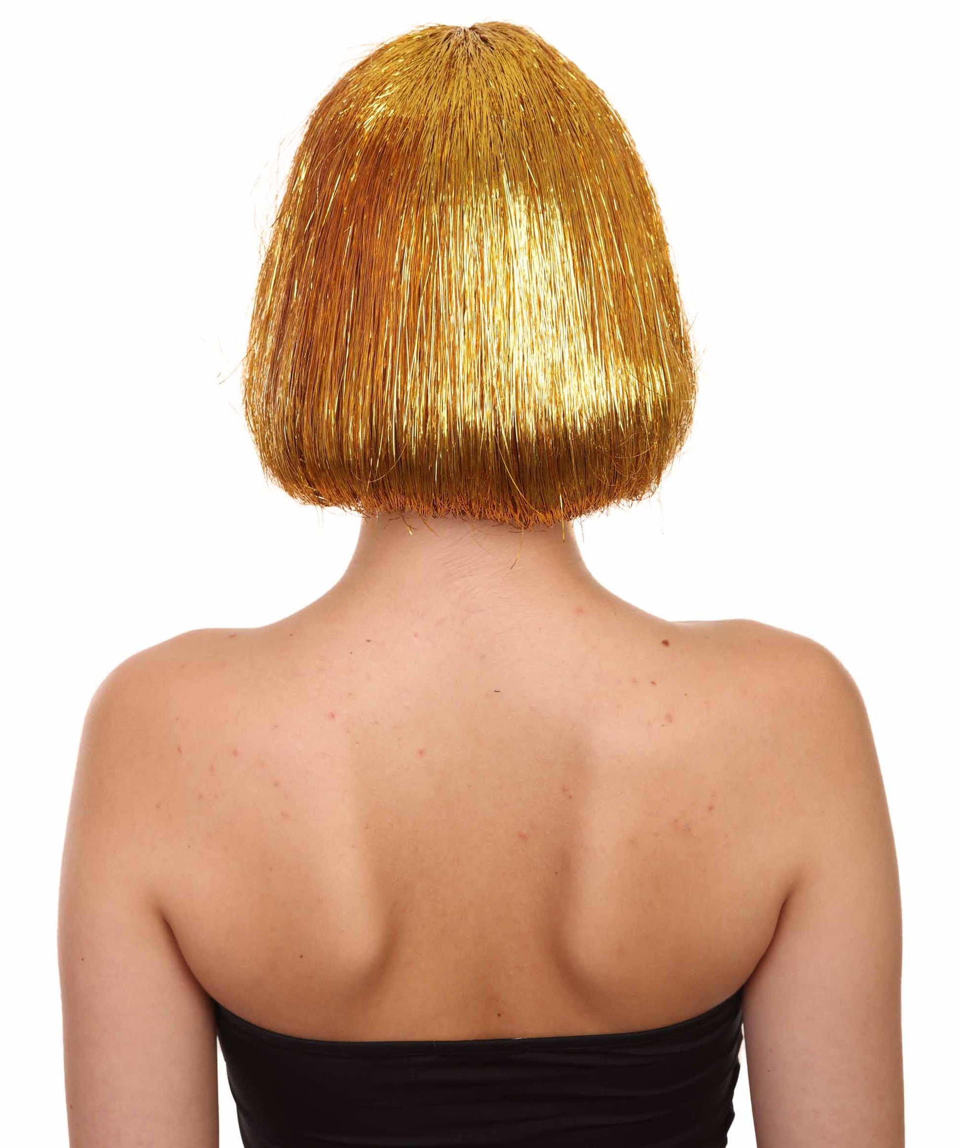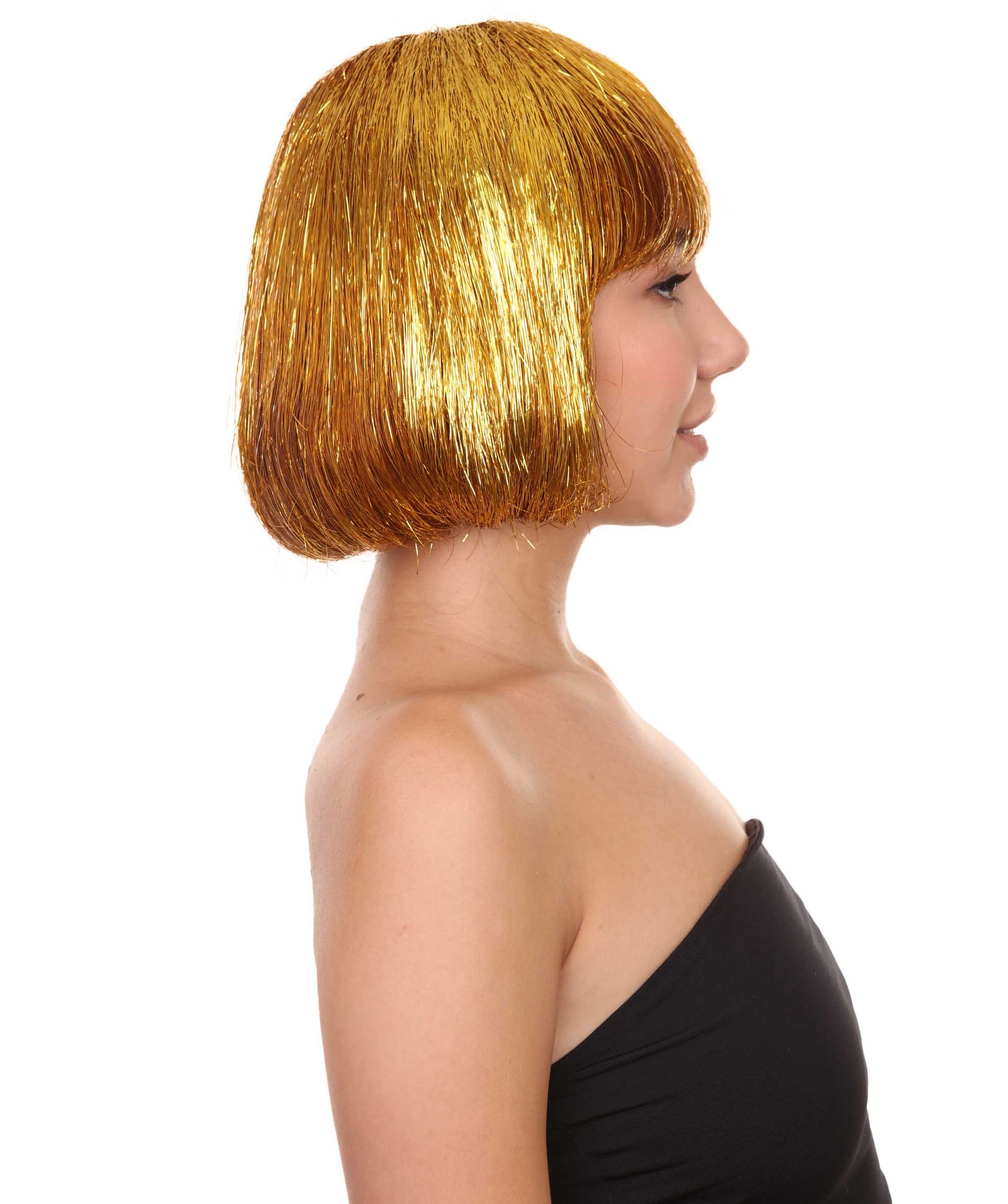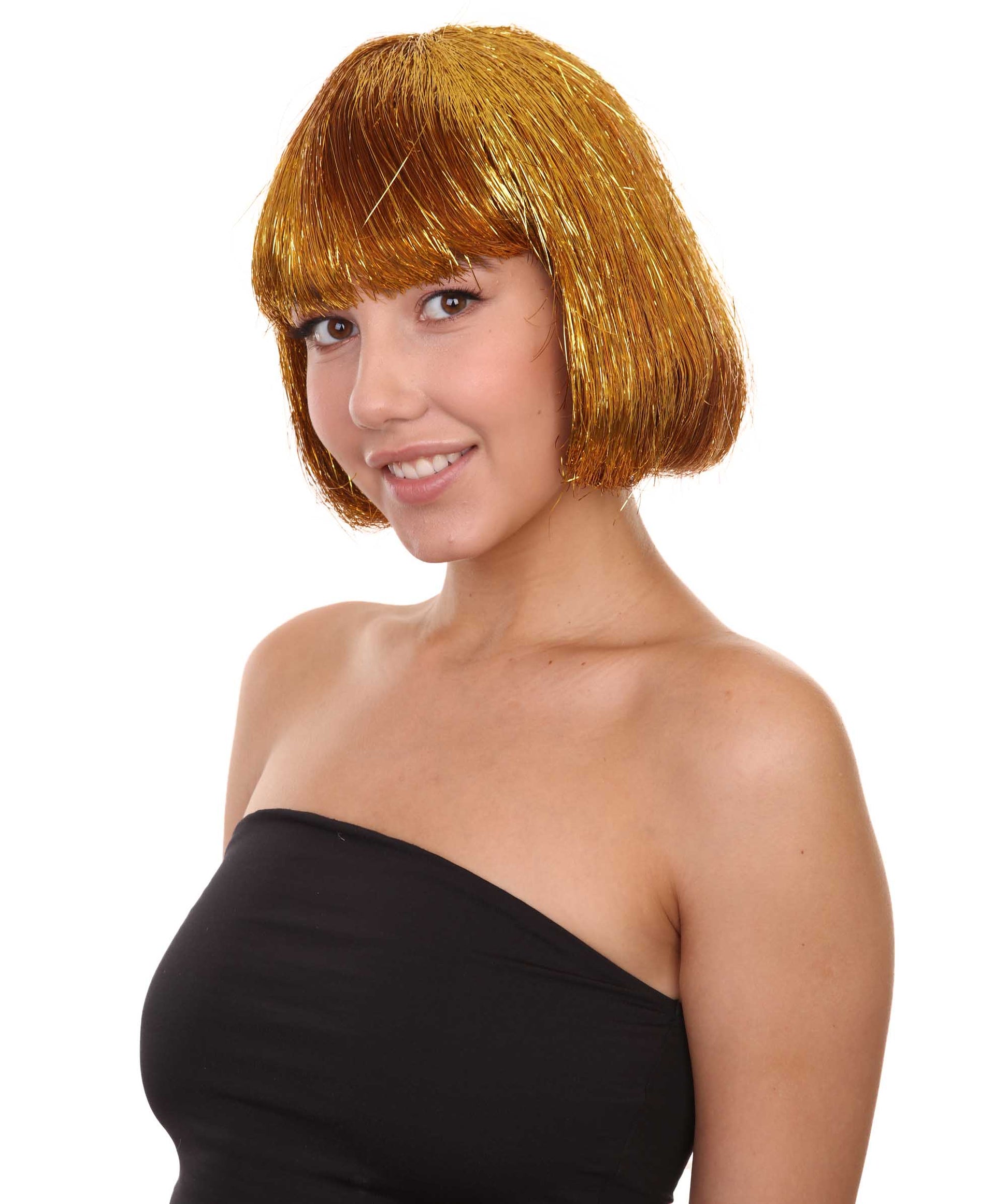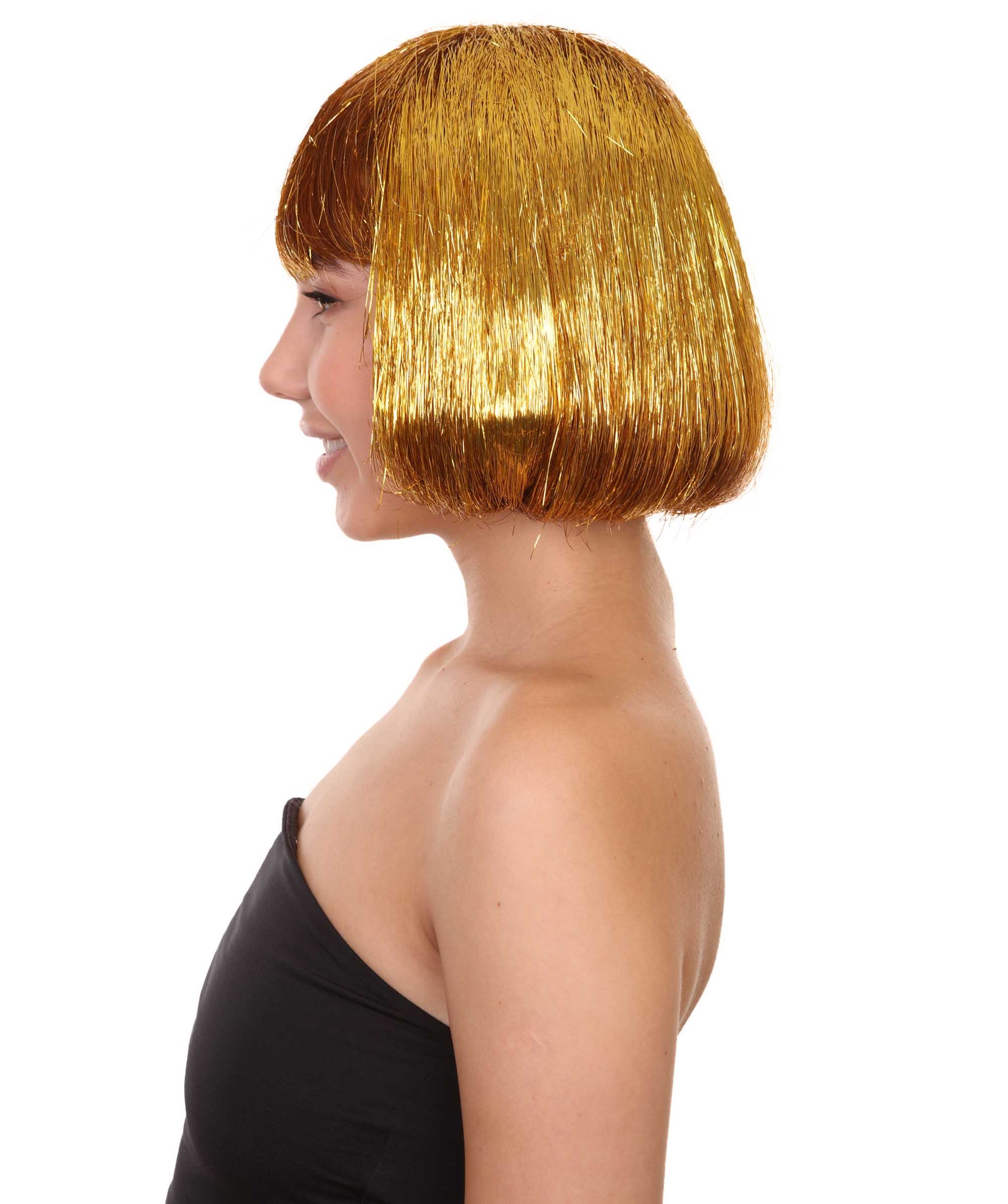 大人の女性用ゴールドティンセルボブウィッグ H-4618 プレミアム通気性キャップレスキャップ