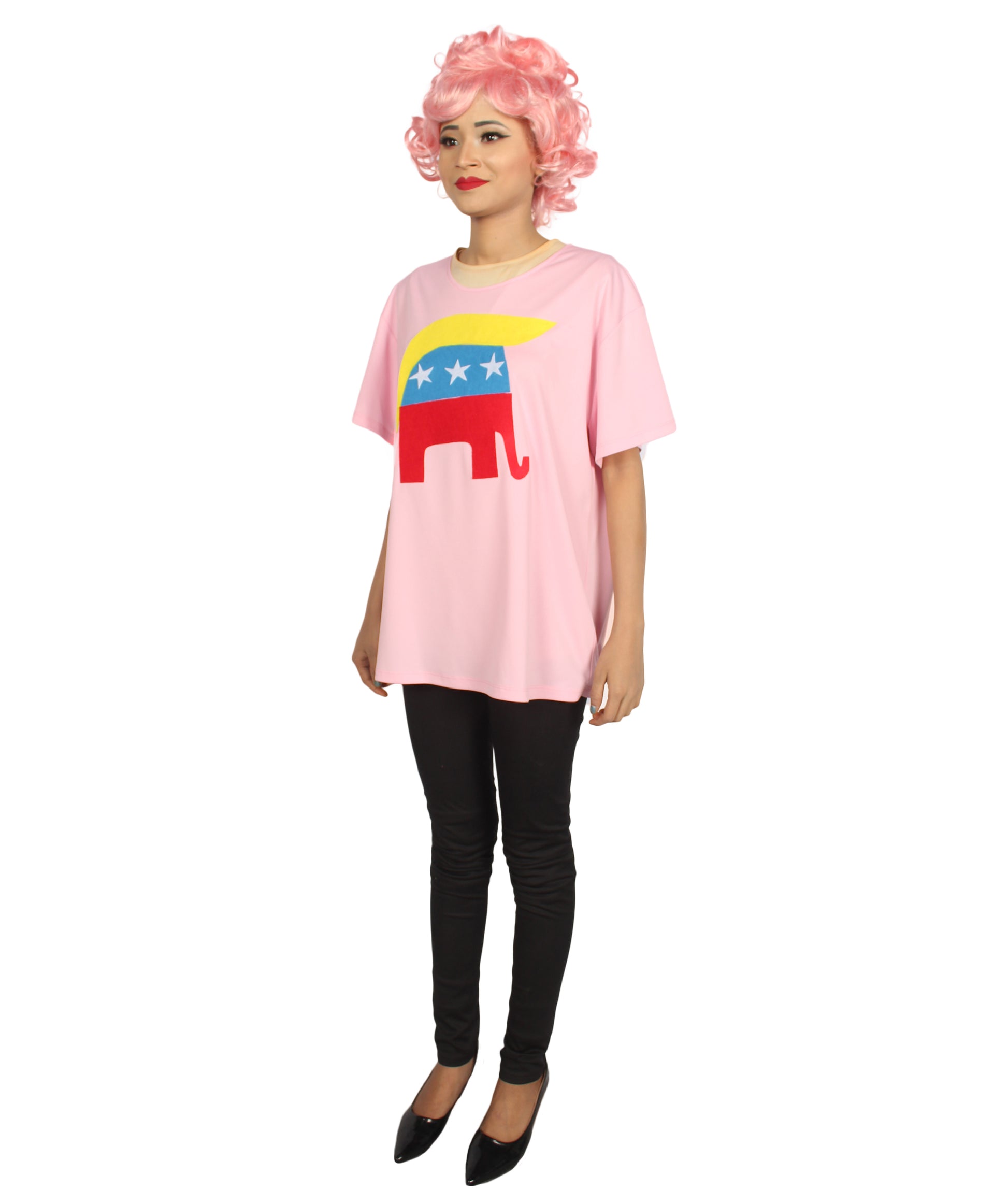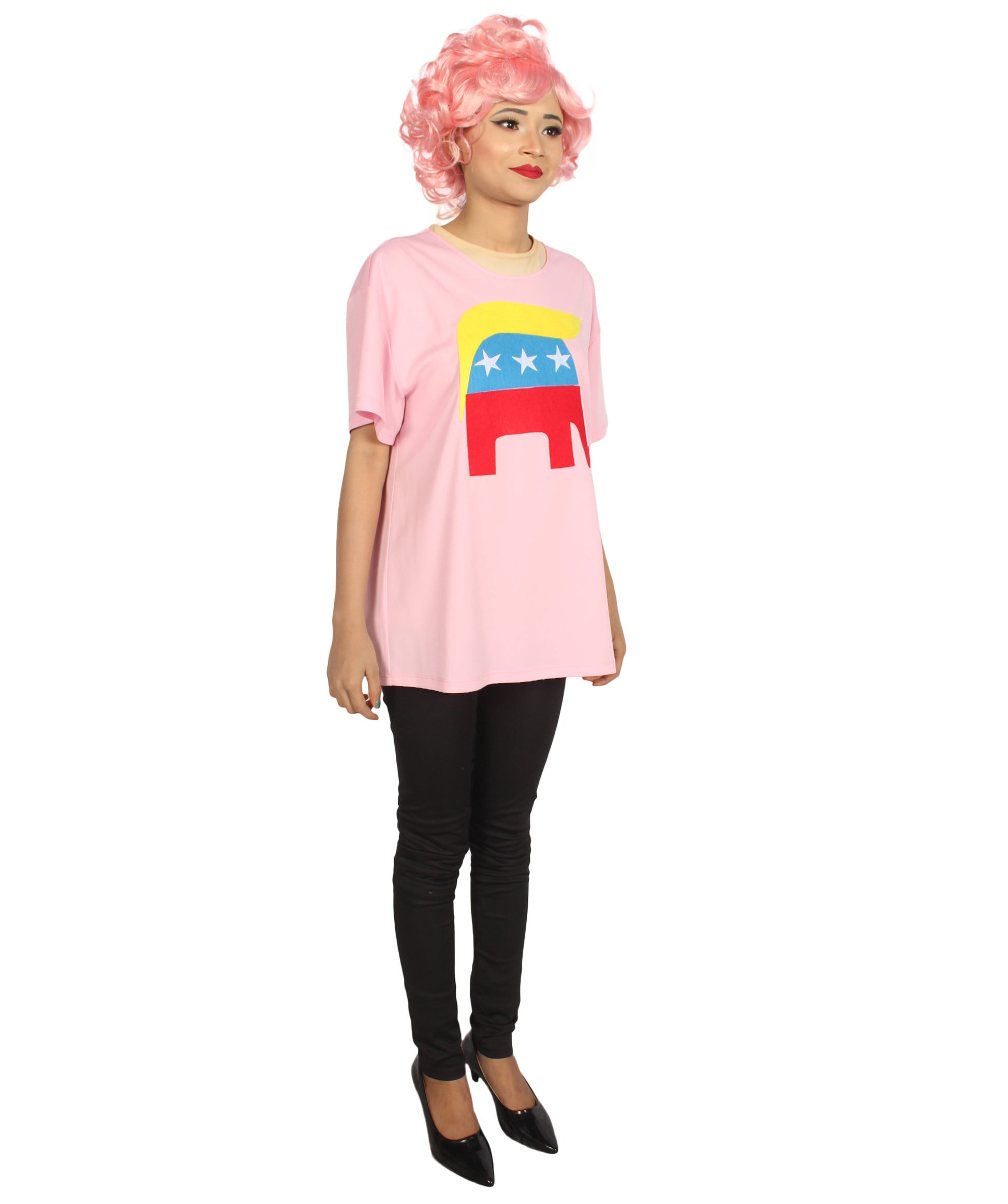 大人用女性向け JCO-174_4 エレファント プレジデント ヘアスタイル T-シャツ コスチューム ライトピンク ハロウィン コスチューム