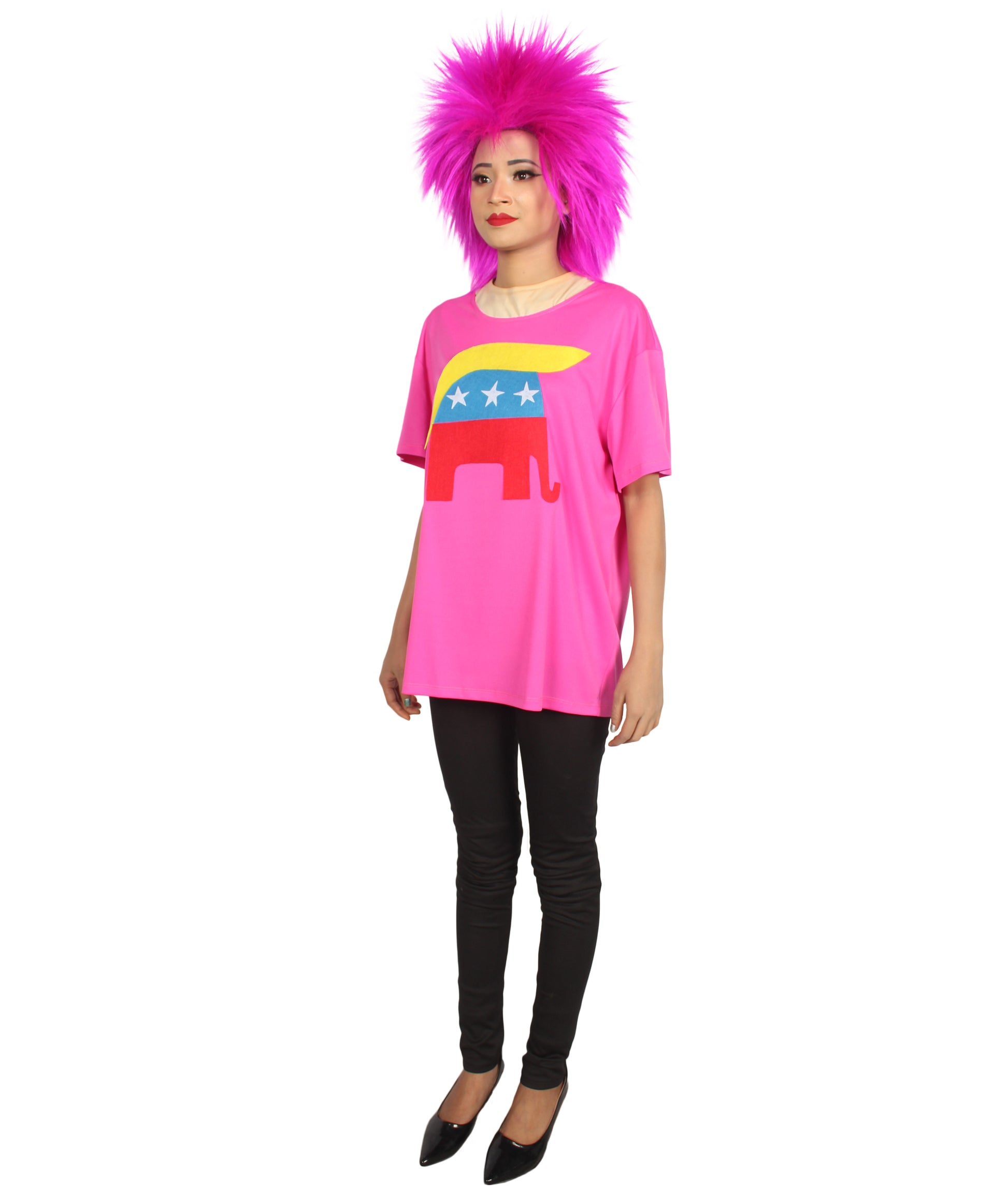 大人用女性向け JCO-174_6 エレファント プレジデント ヘアスタイル T-シャツ コスチューム ホットピンク ハロウィン コスチューム