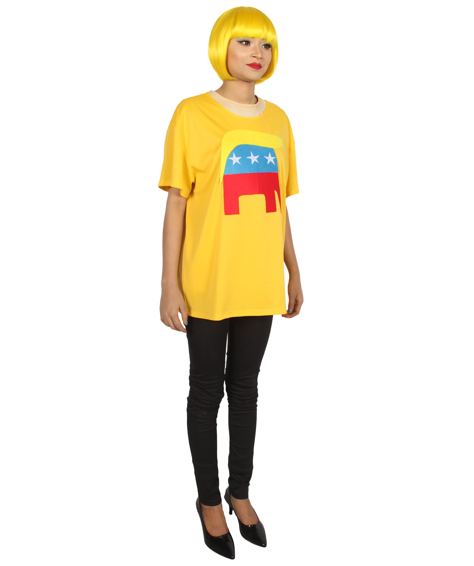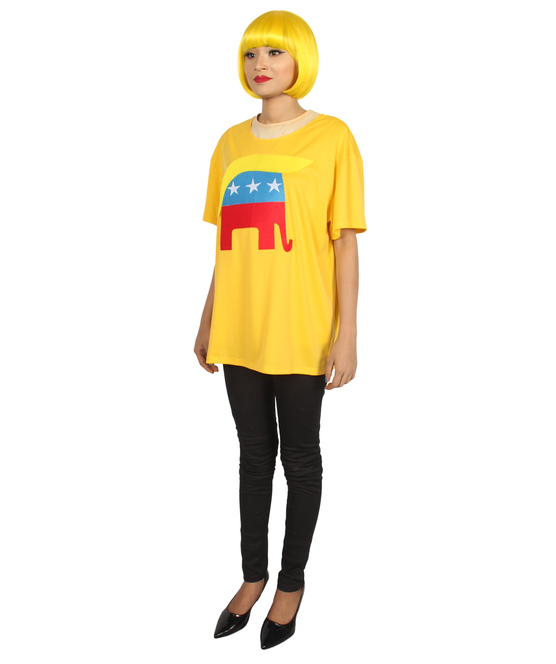 大人用女性向け JCO-174 エレファント プレジデント ヘアスタイル T-シャツ コスチューム イエロー ハロウィン コスチューム