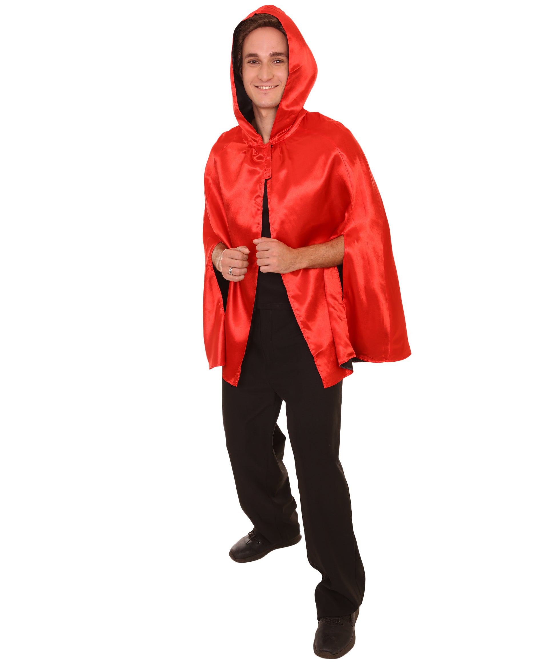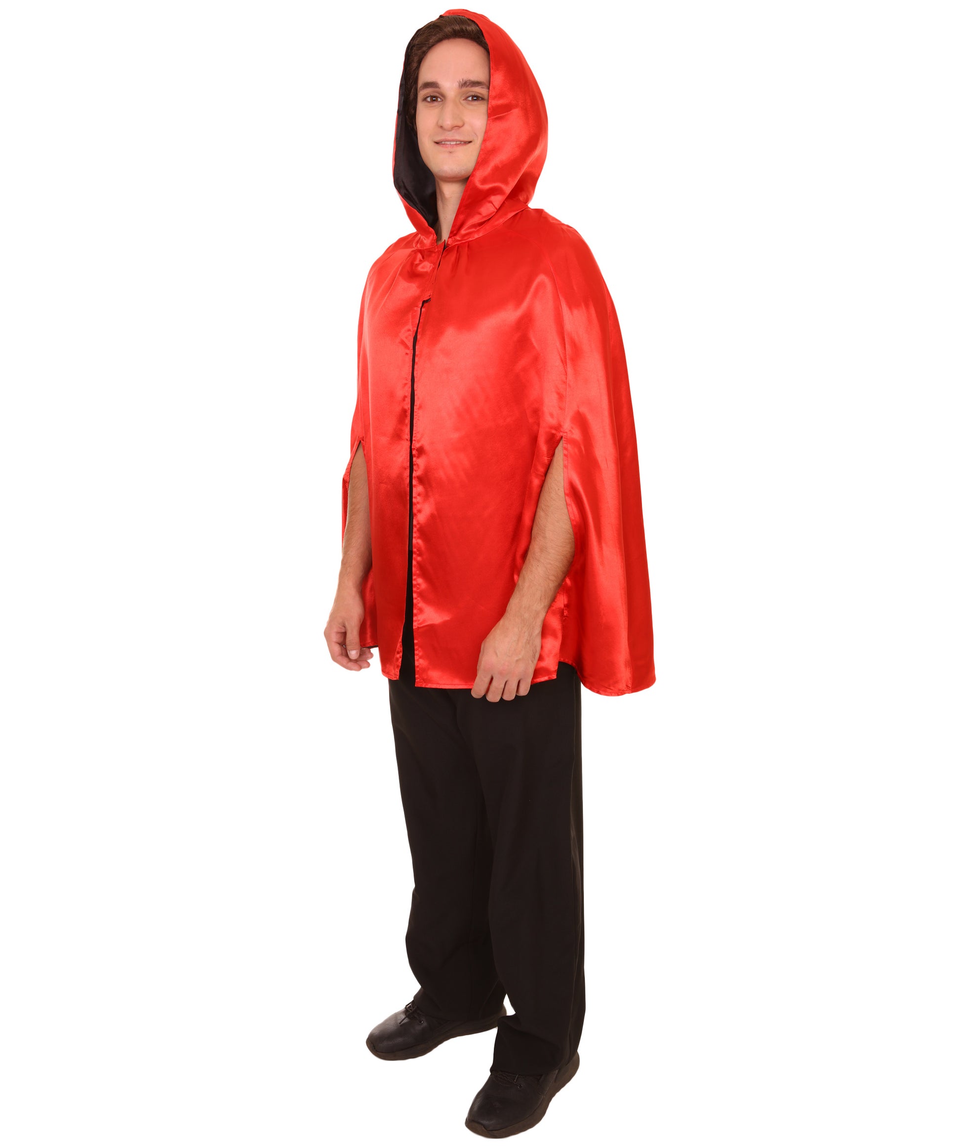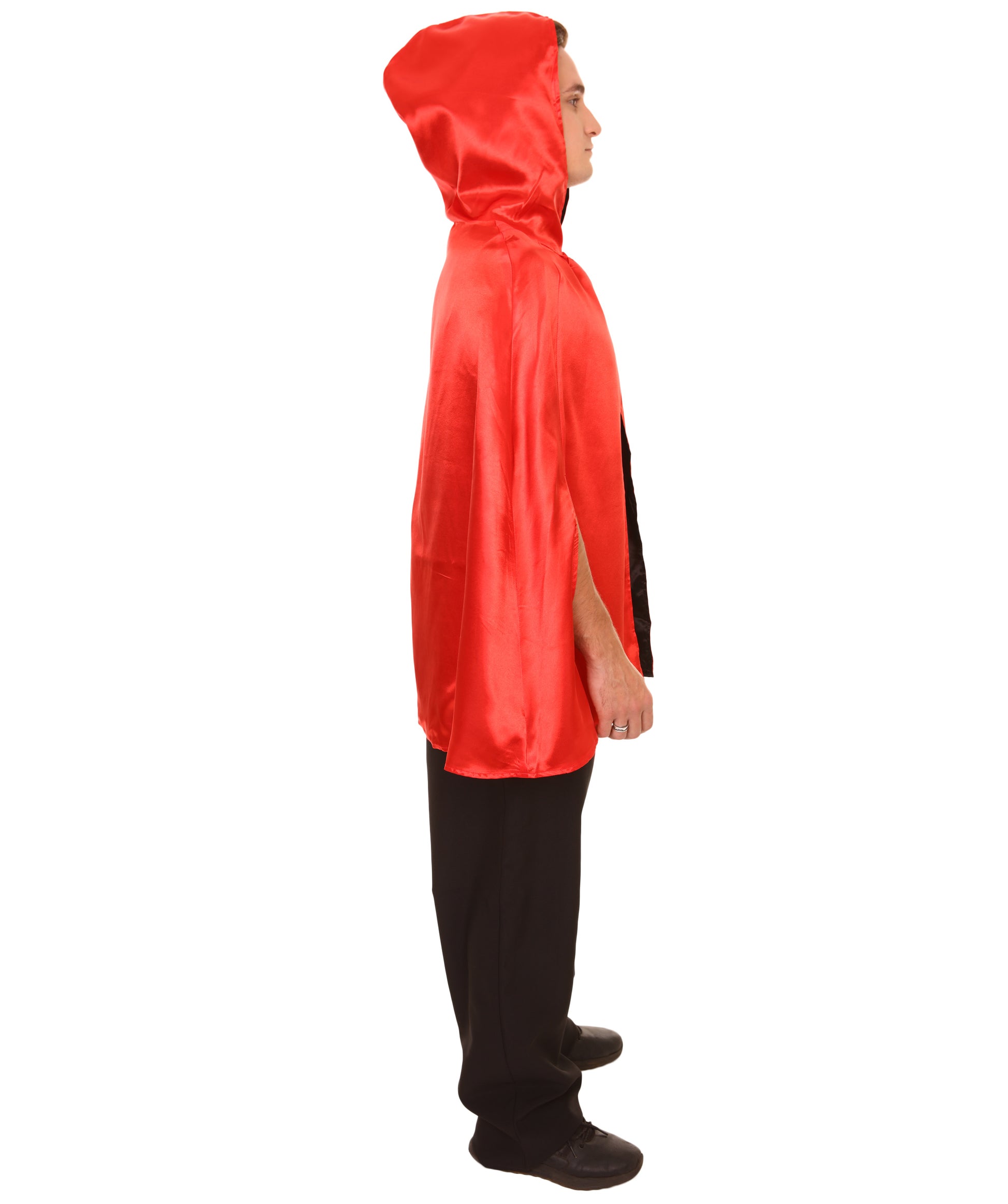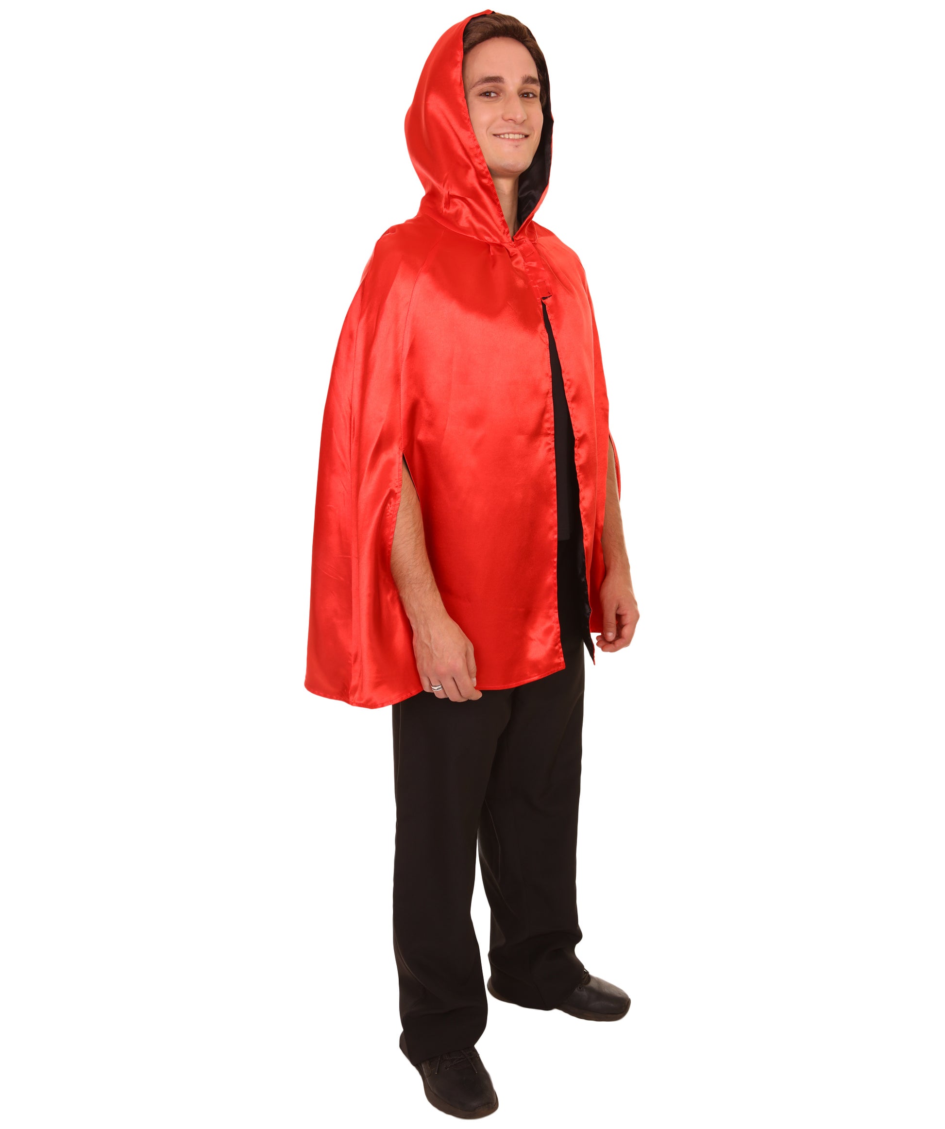 大人用女性の JCO-219_7 リバーシブルフード付きショートケープ レッド&ブラック ハロウィンコスチューム