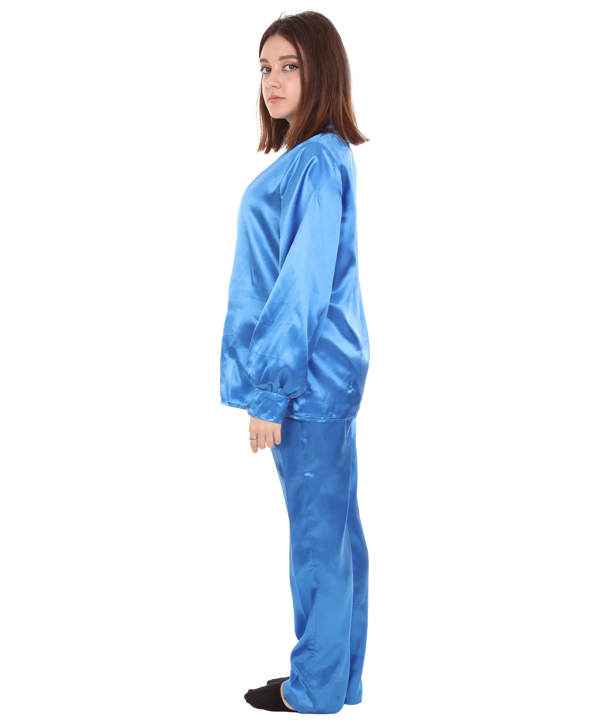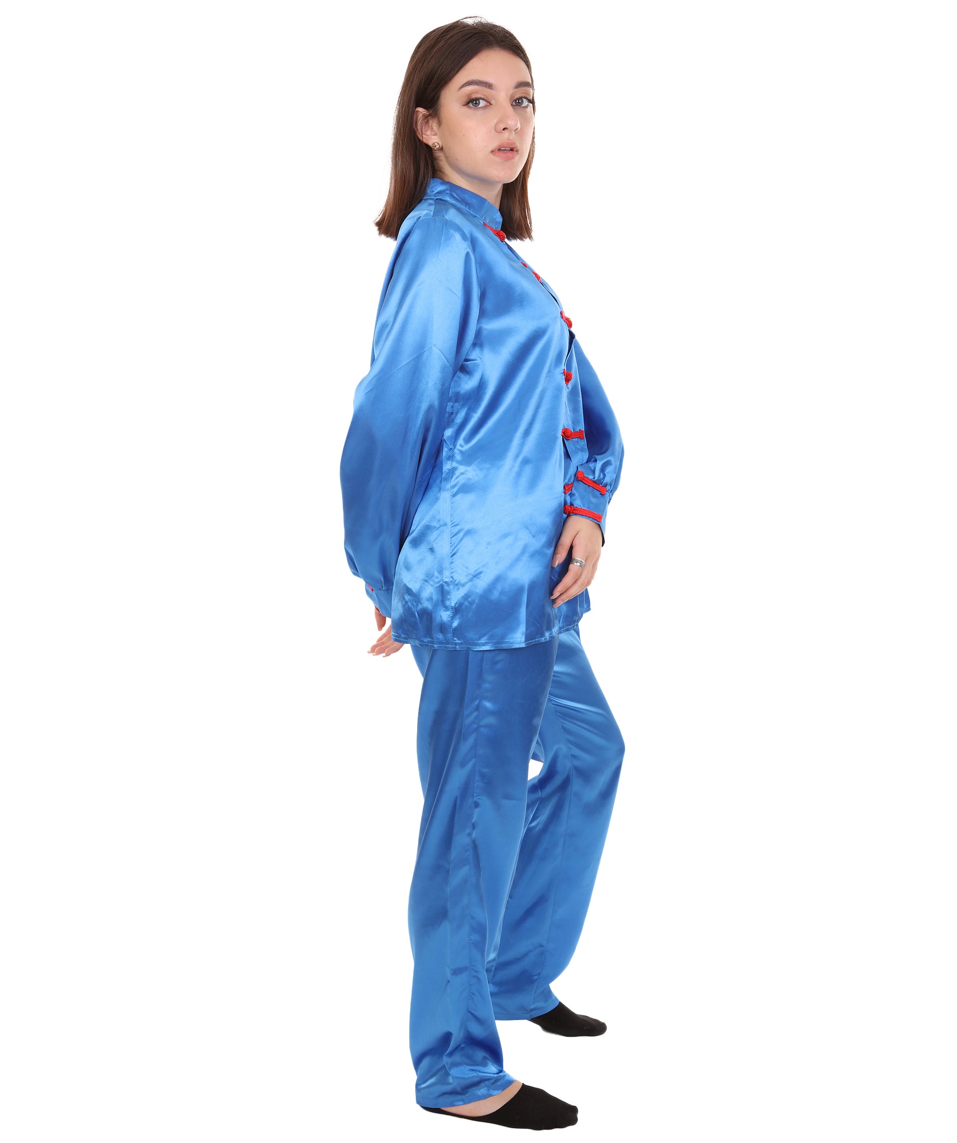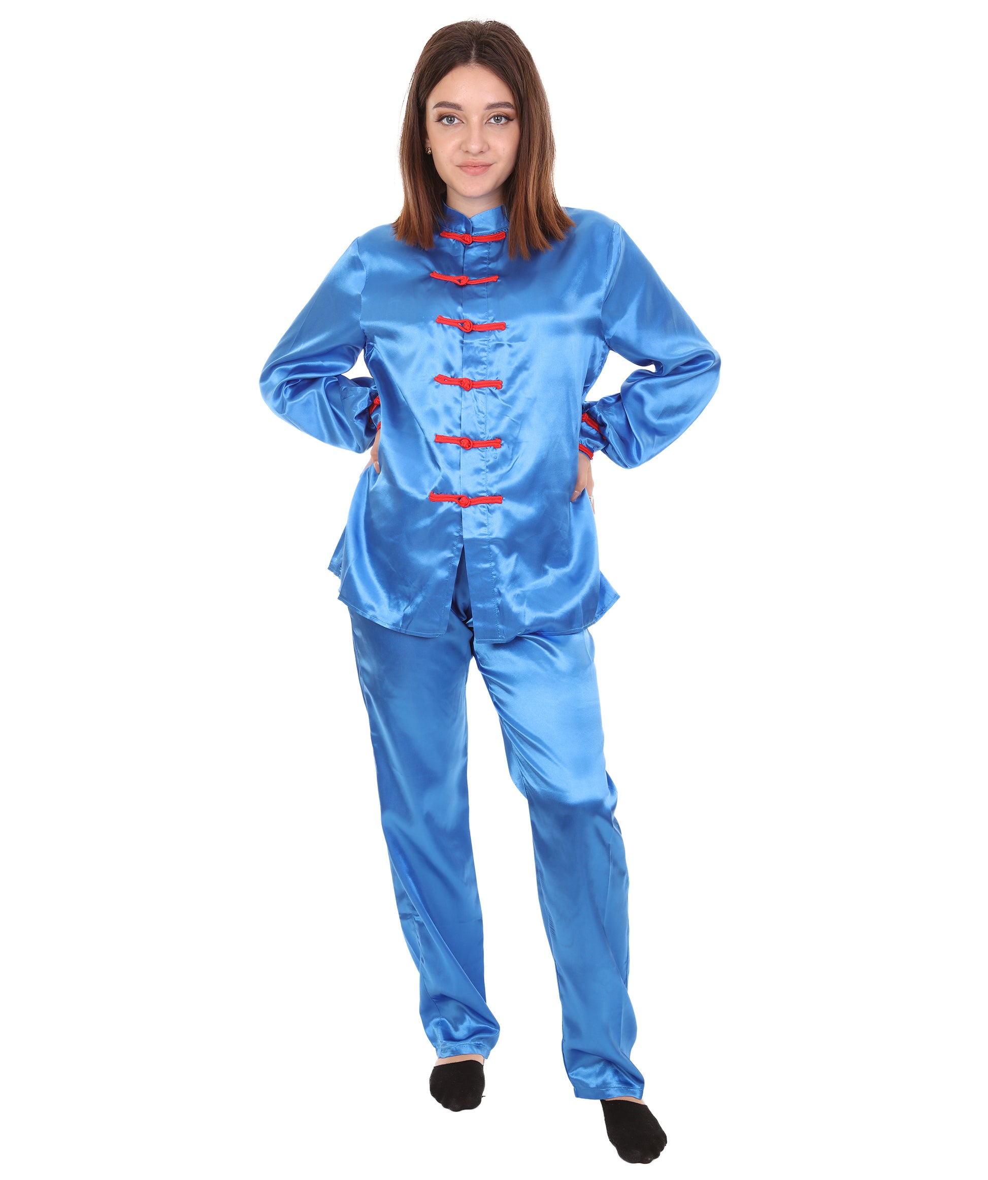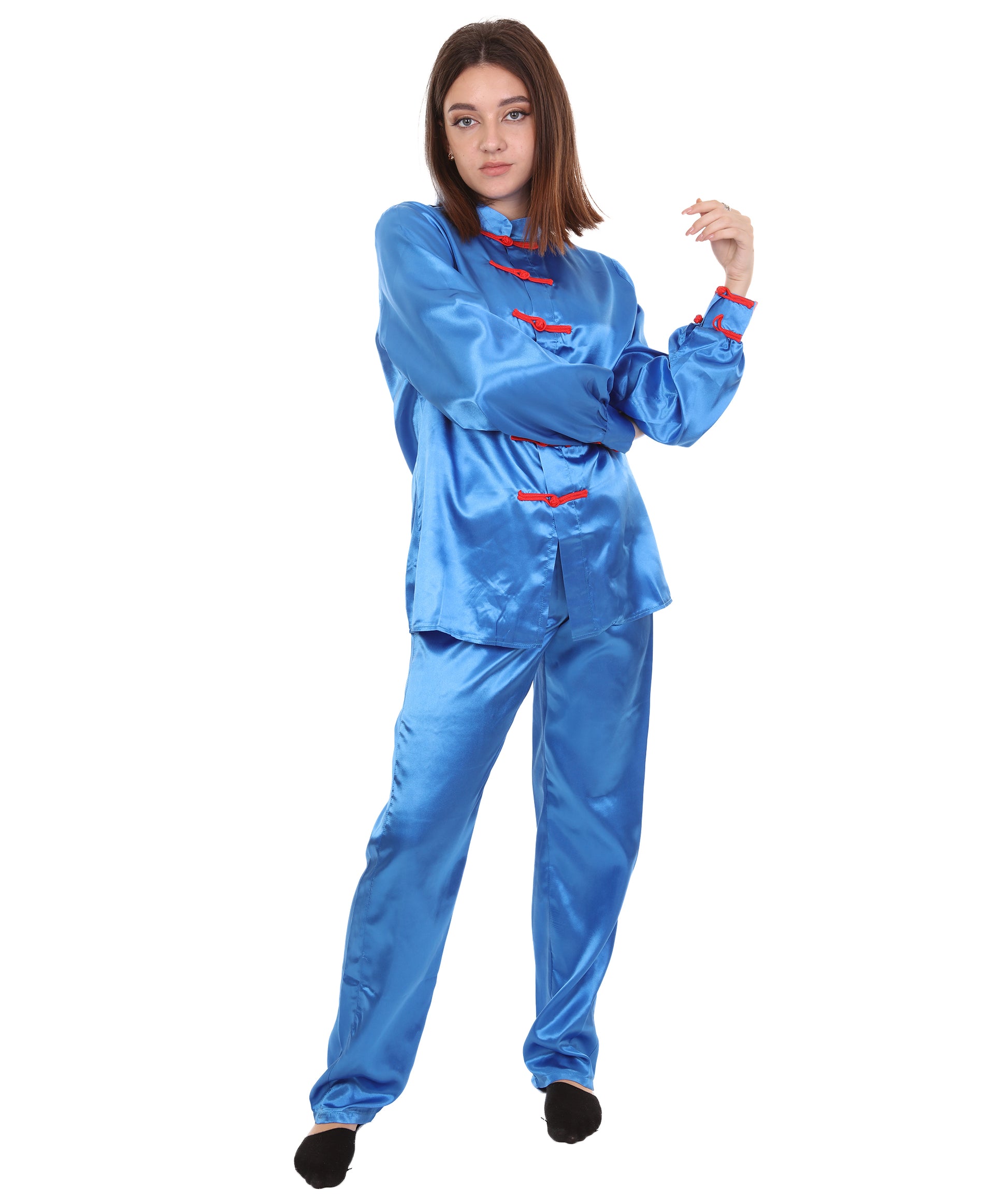 大人用ウィメンズ JCO-270_1 中国の伝統的なカンフー ブルーサテン 制服 コスプレ衣装
