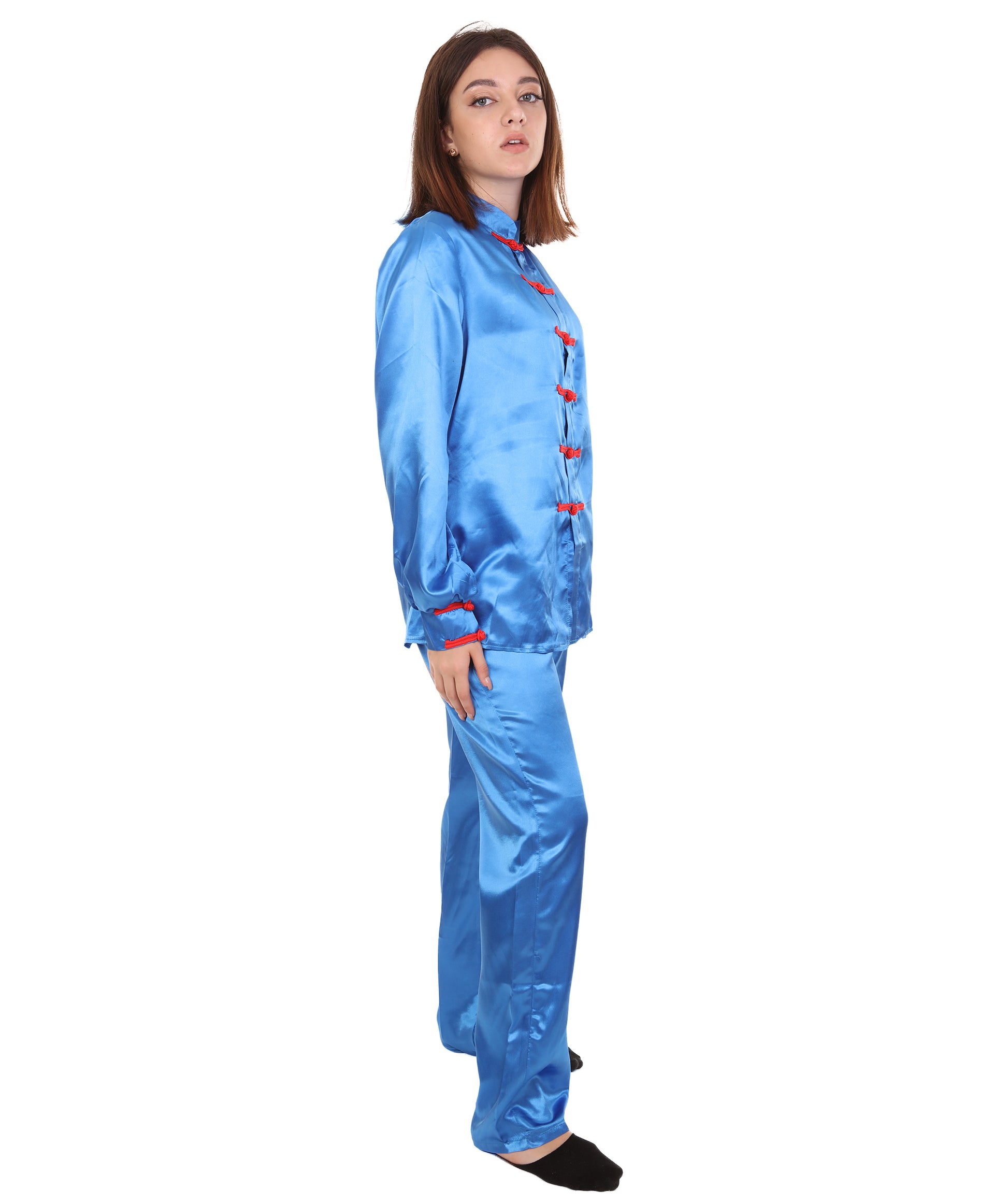 Chinese Traditional Kung Fu Blue Satin Uniform Costume Ladies |