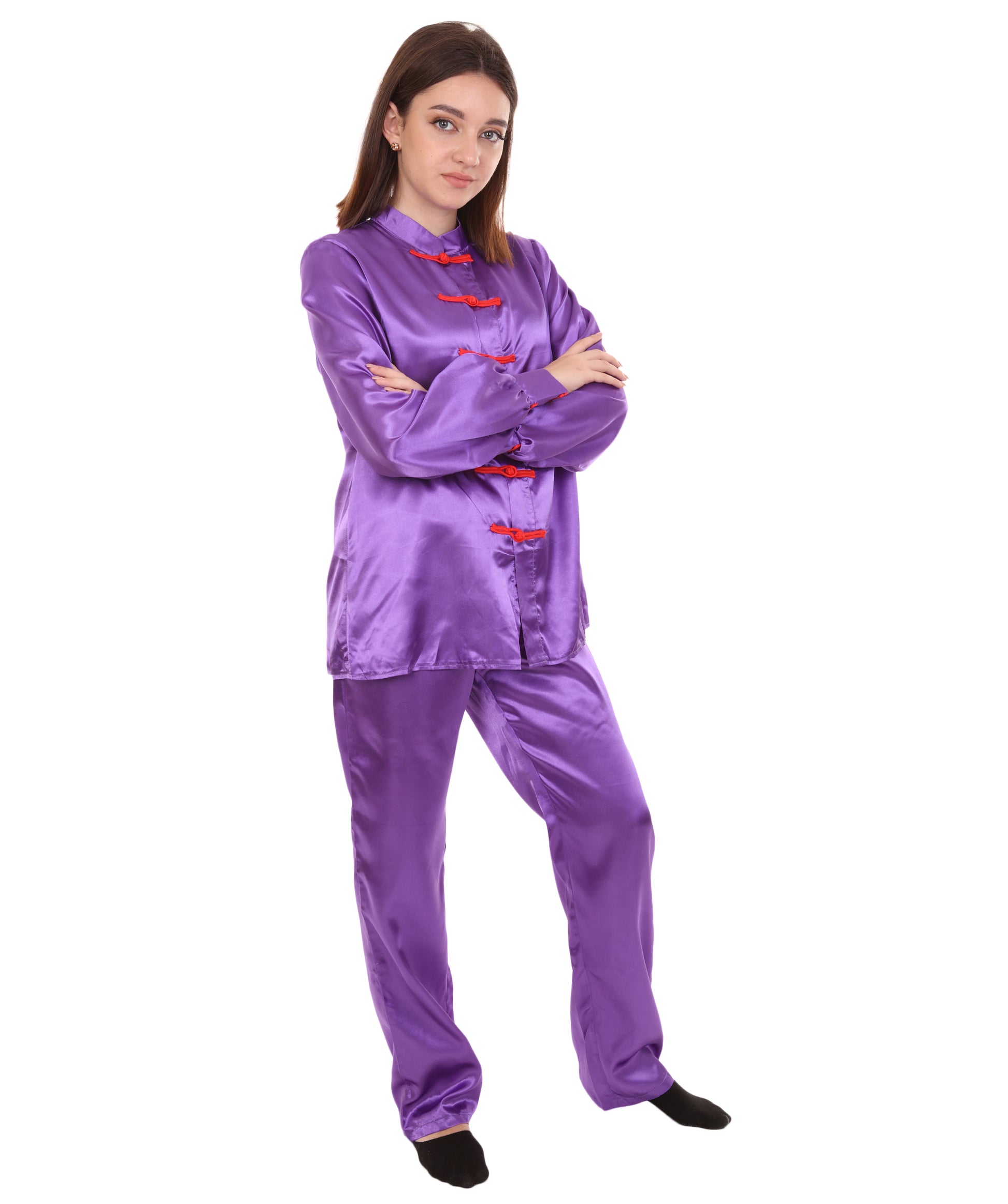 Chinese Traditional Kung Fu Dk Purple Satin Uniform Costume Ladies |
