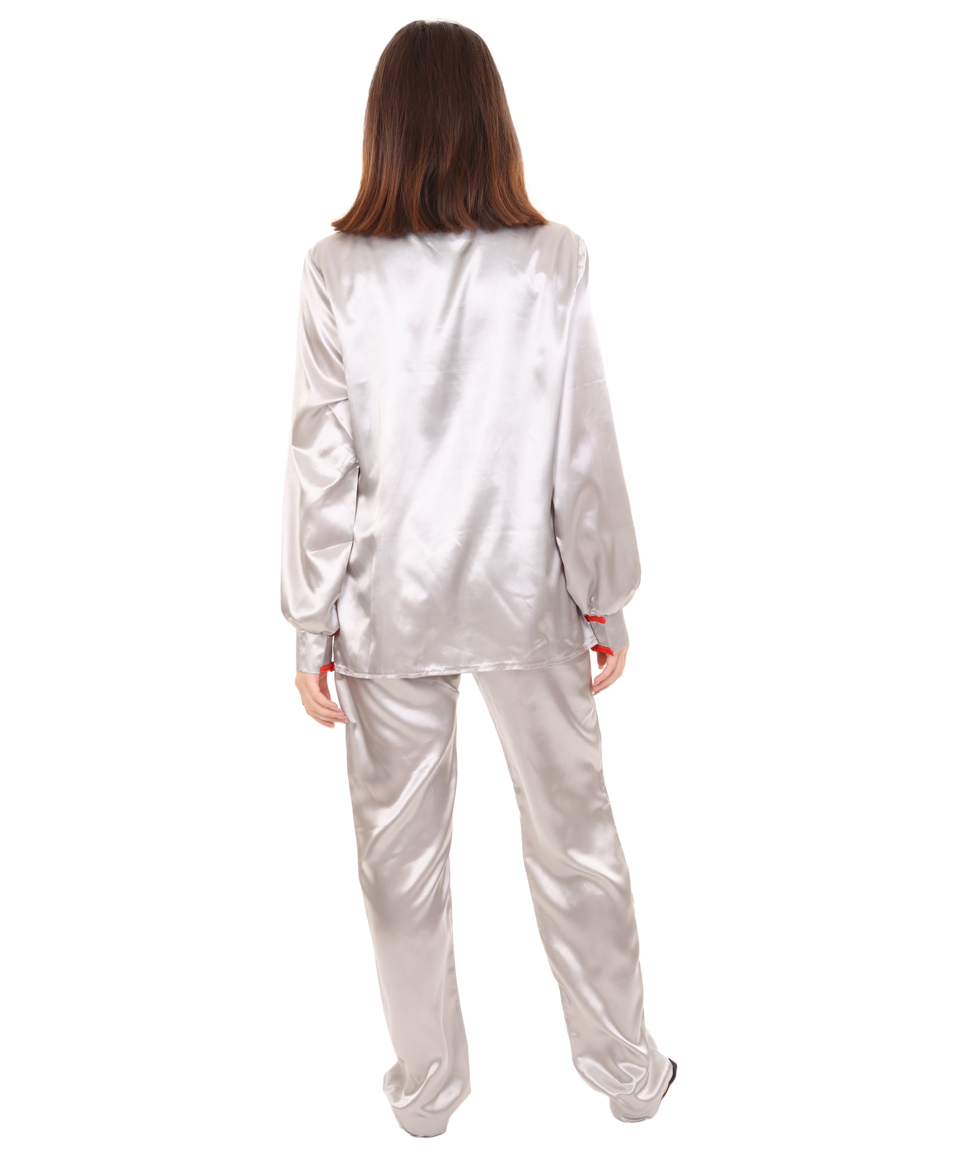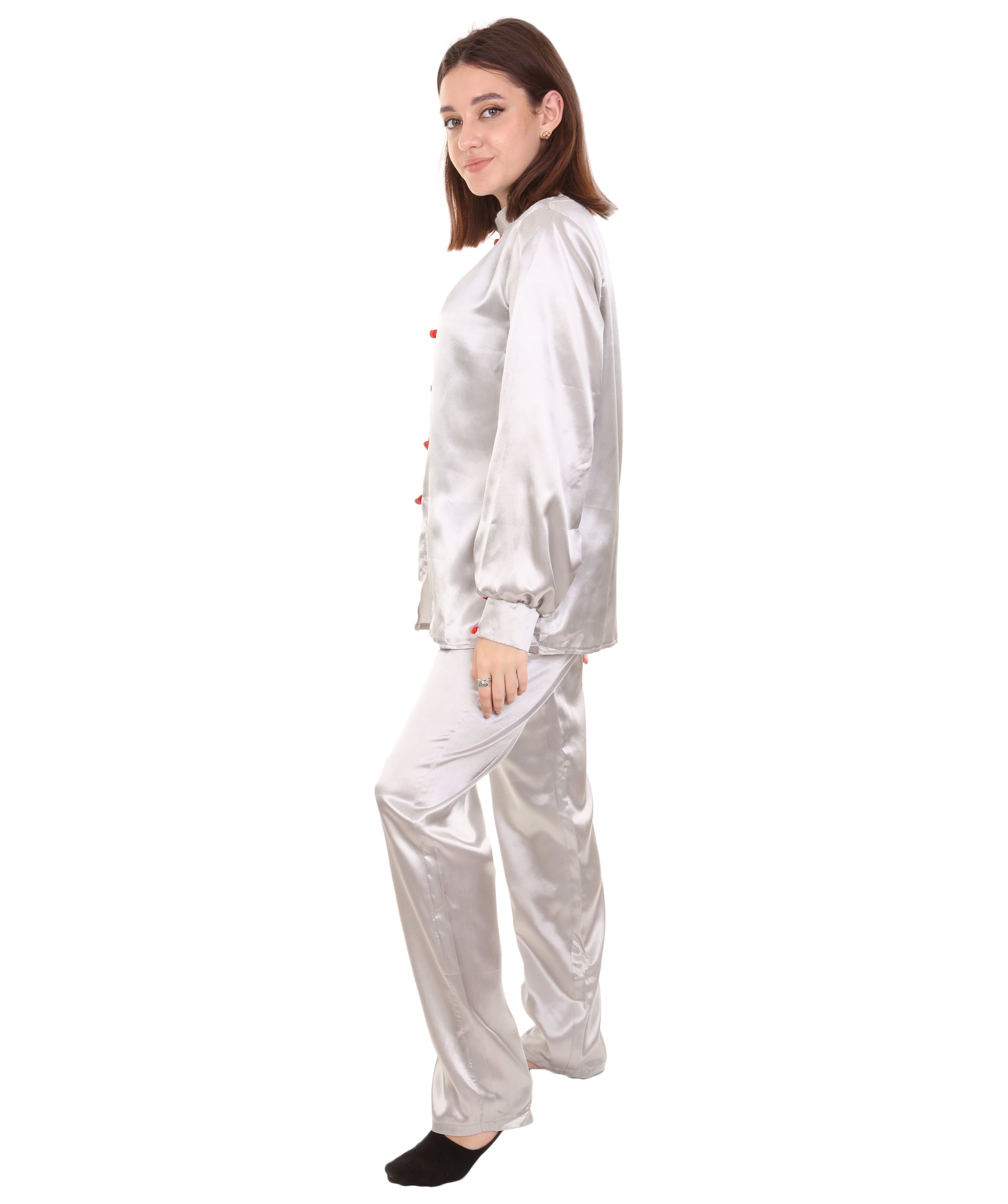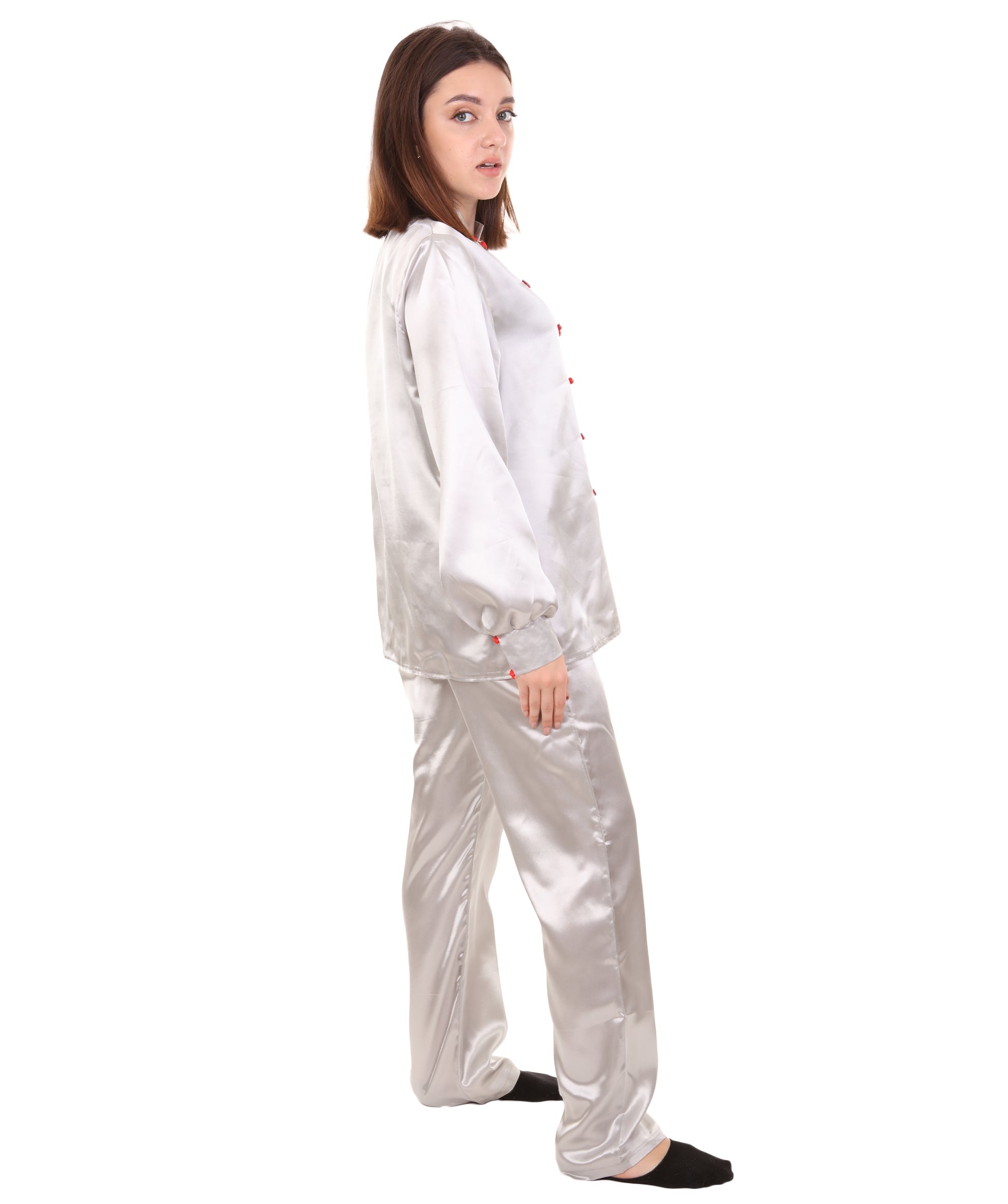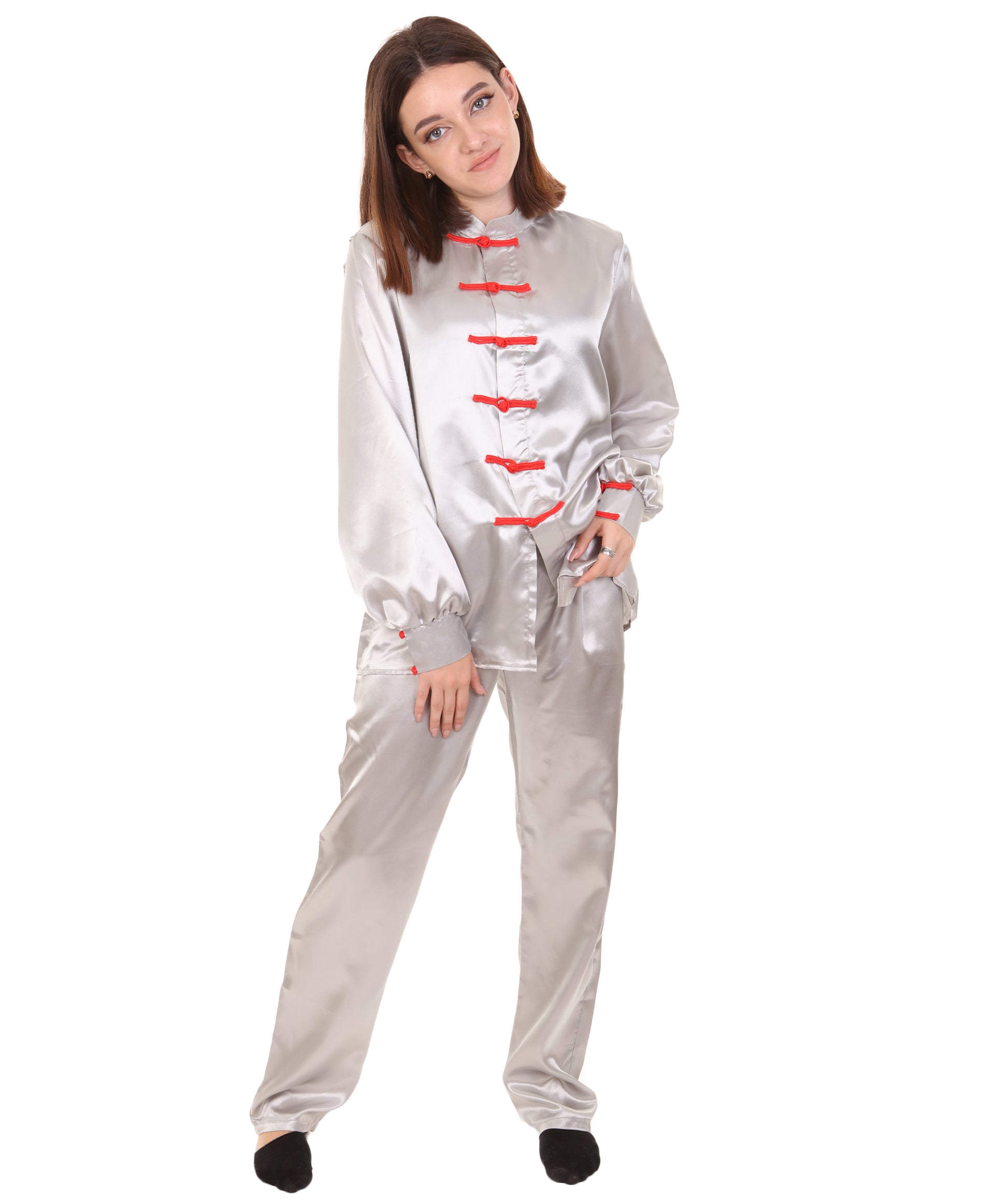 大人用ウィメンズ JCO-270_16 中国の伝統的なカンフー シルバーサテン 制服 コスプレ衣装