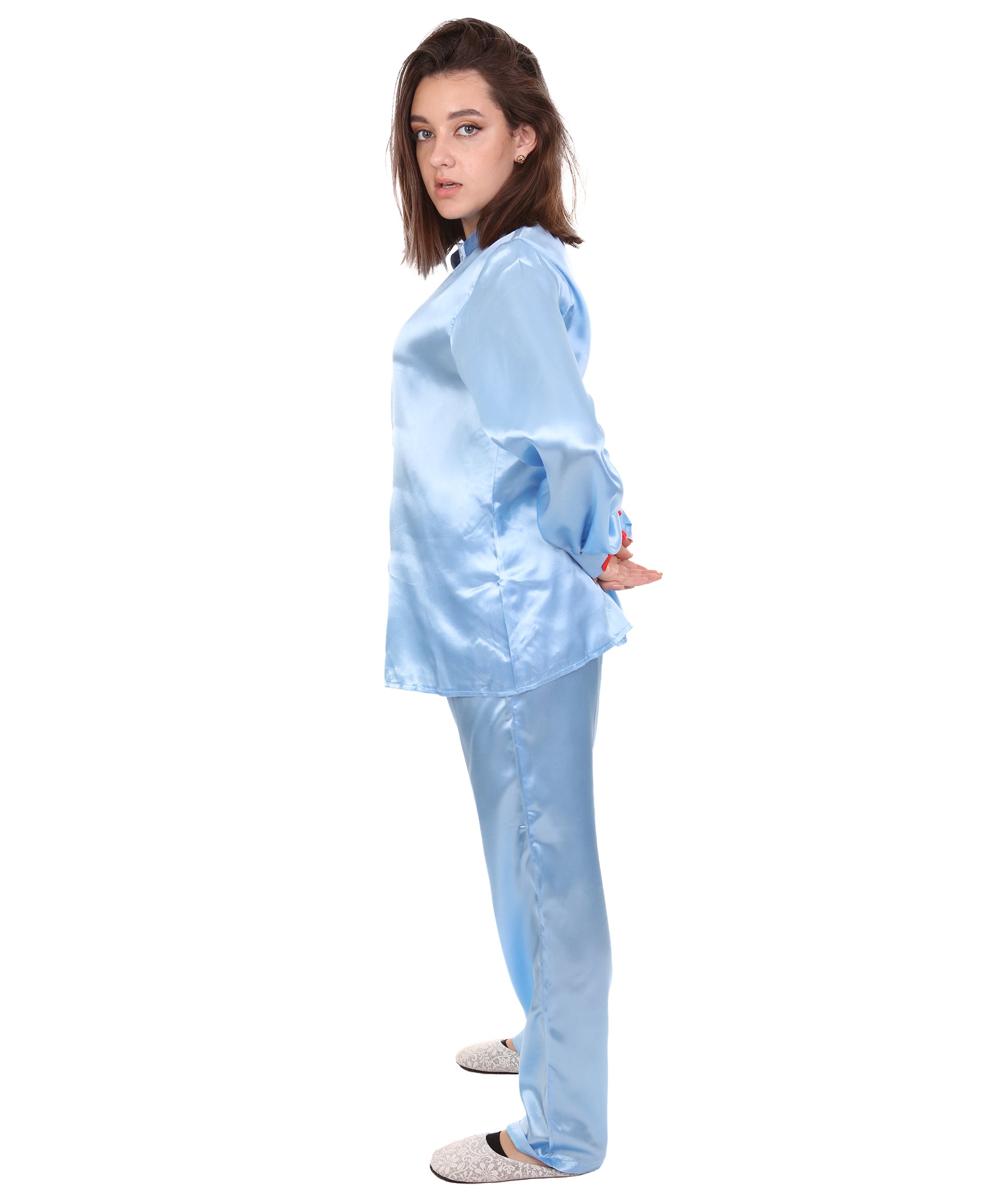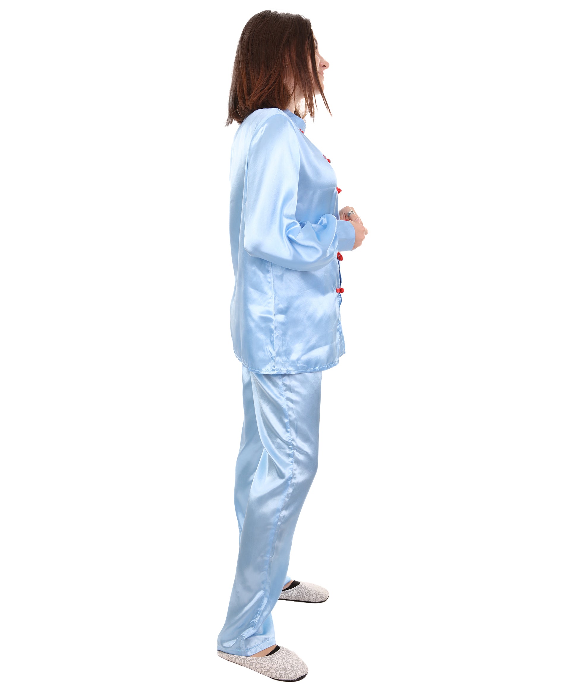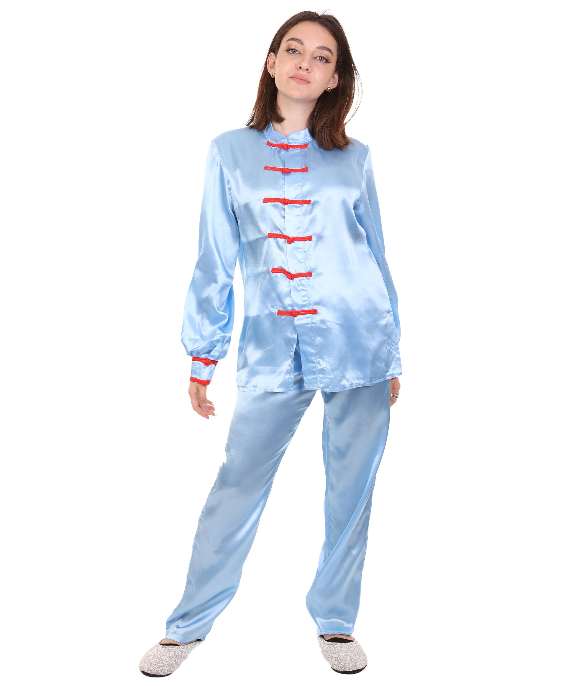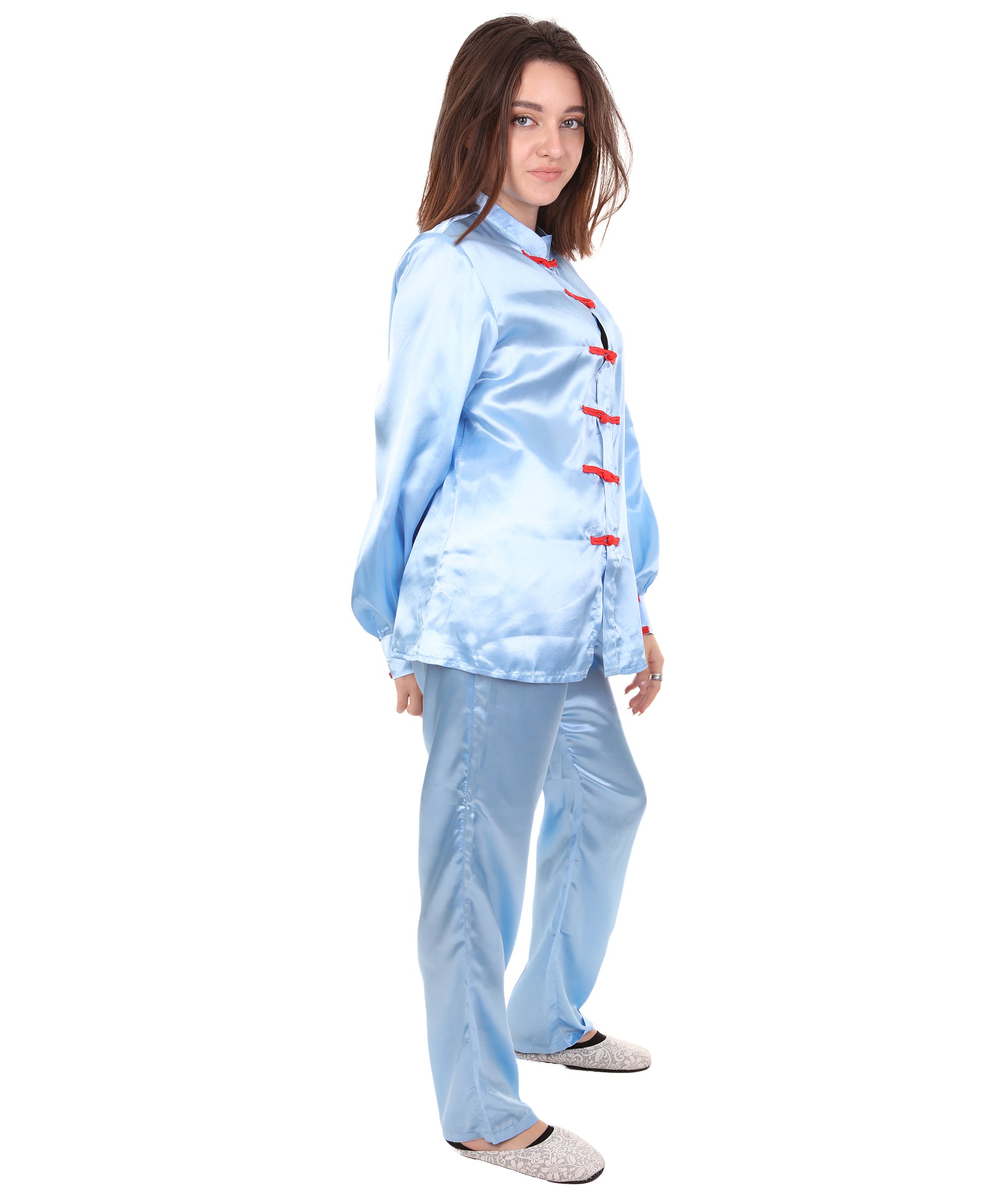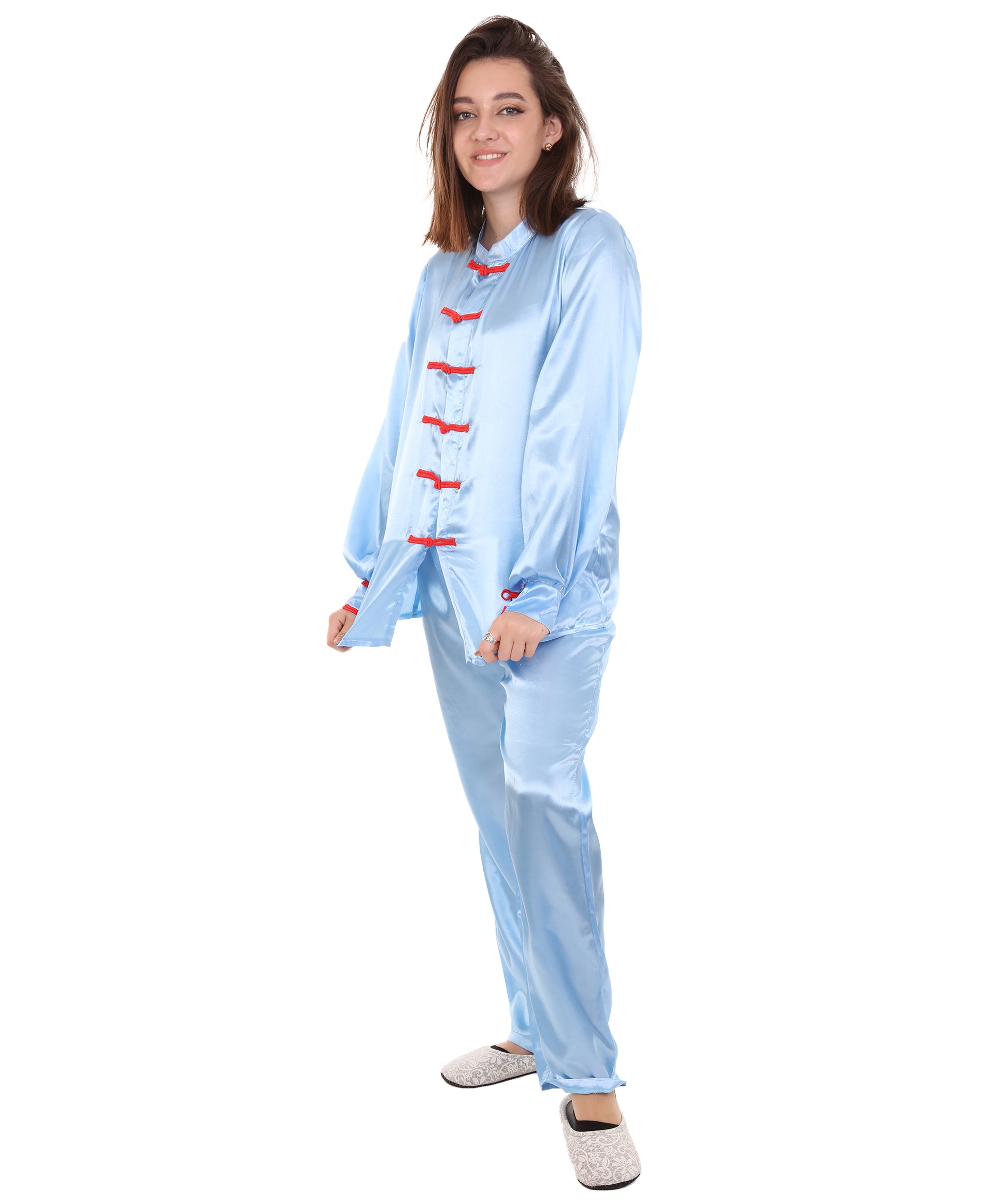 大人用ウィメンズ JCO-270_2 中国の伝統的なカンフー ライトブルーサテン 制服 コスプレ衣装